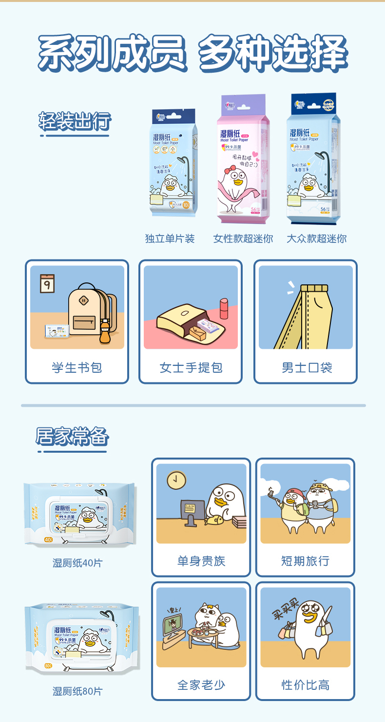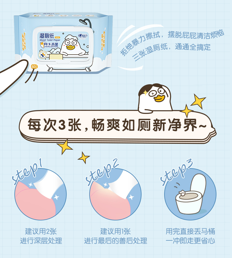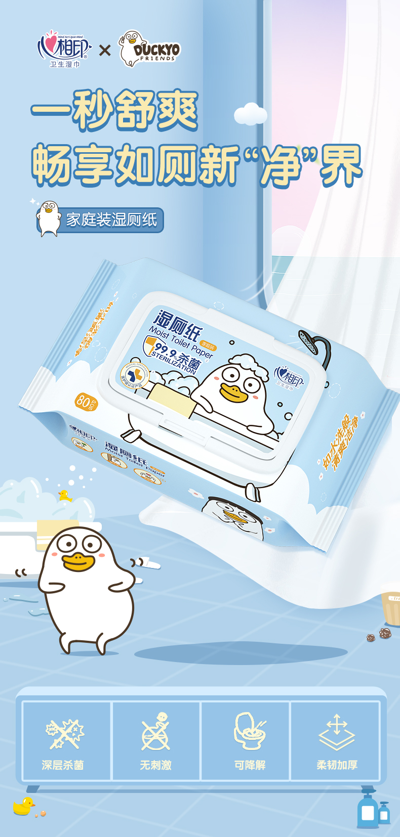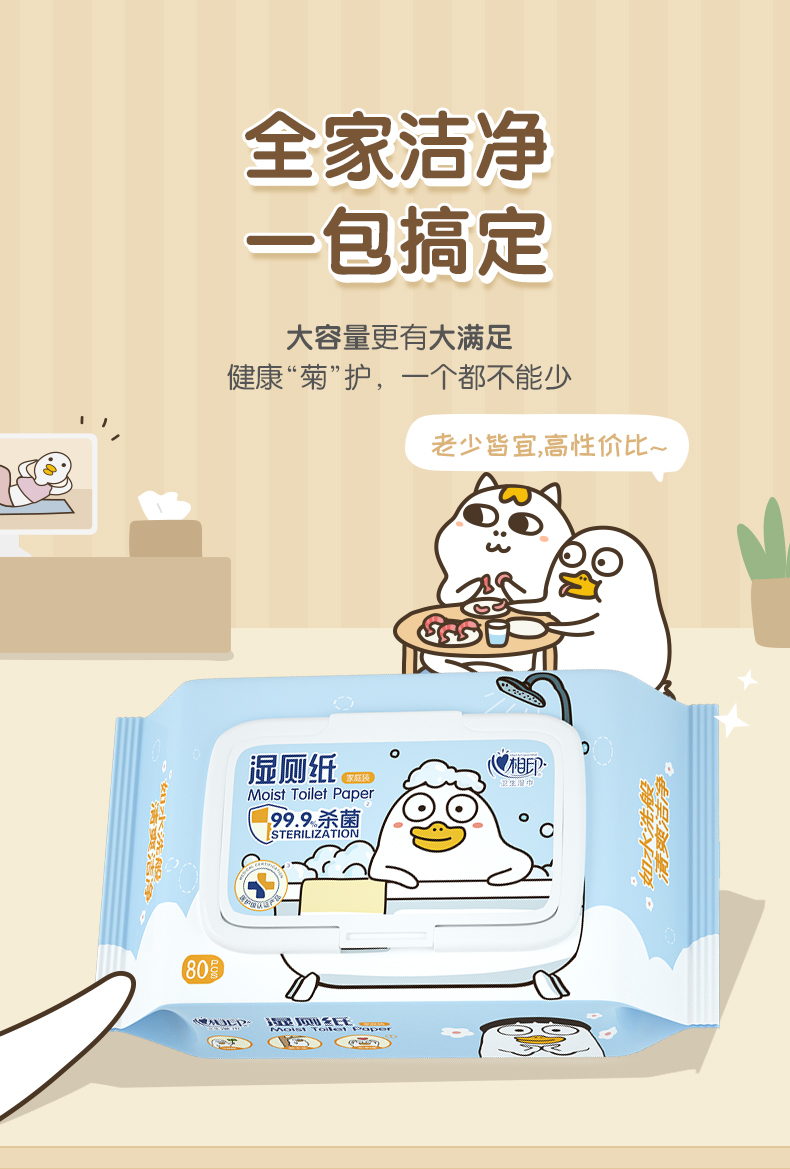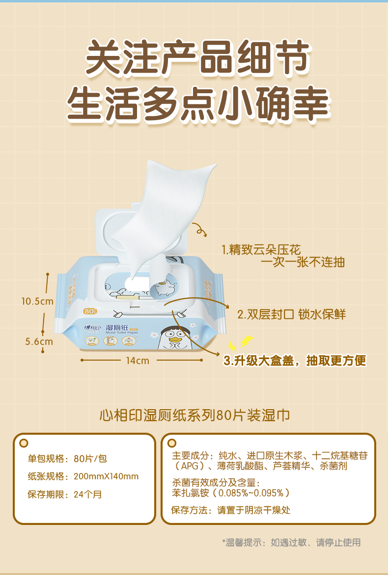 【日化洗护】心相印湿厕纸系列80片装湿巾5包组合装XCY080+P2 QSH