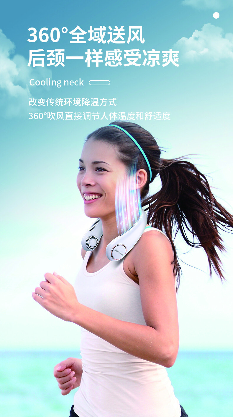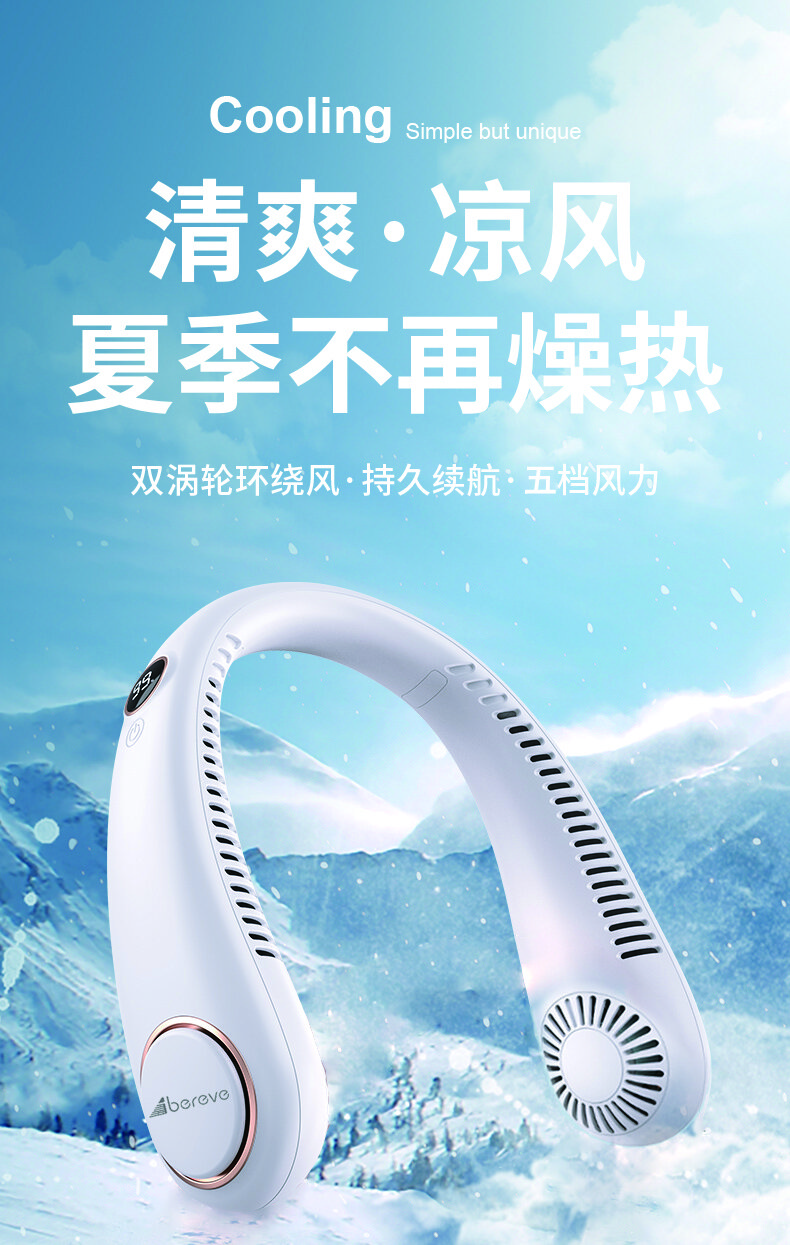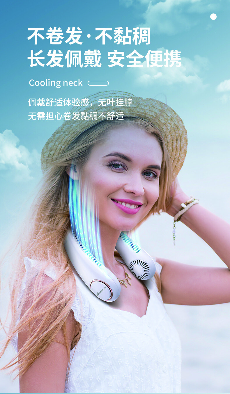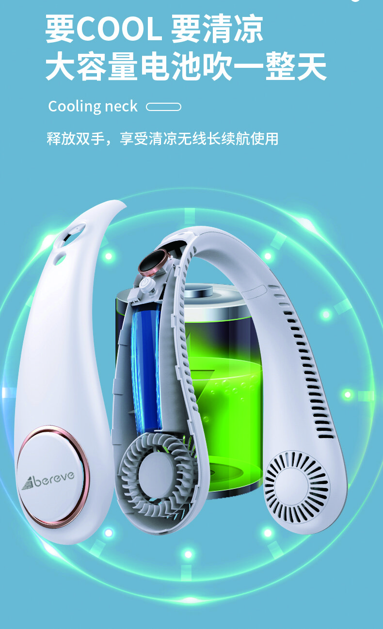【小家电】Abereve 携式迷你随身挂颈挂脖子静音无叶户外学生大风力电扇ABL-BZ72 HF
