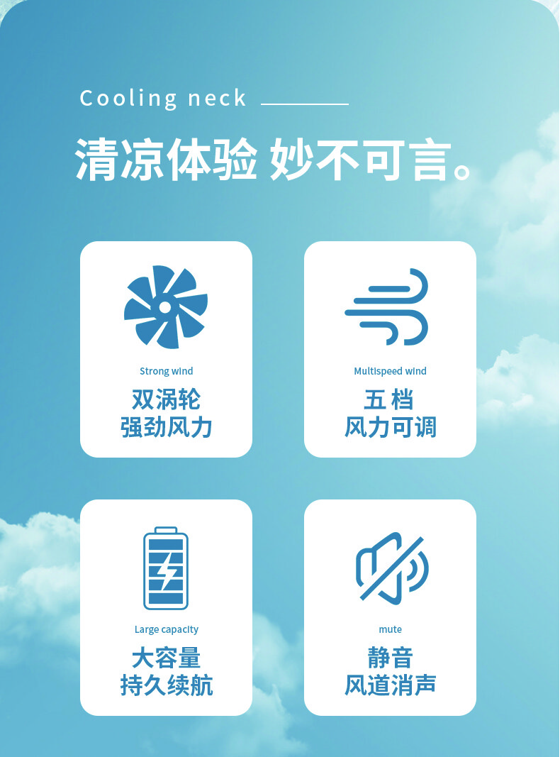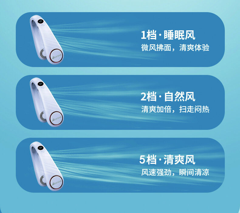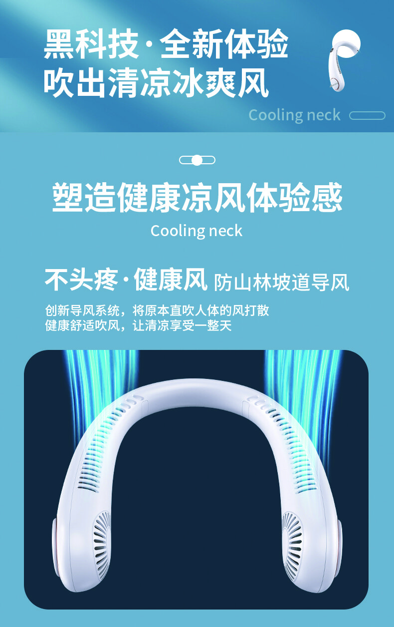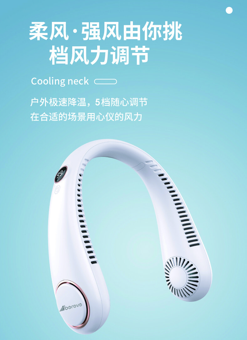 【小家电】Abereve 携式迷你随身挂颈挂脖子静音无叶户外学生大风力电扇ABL-BZ72 HF