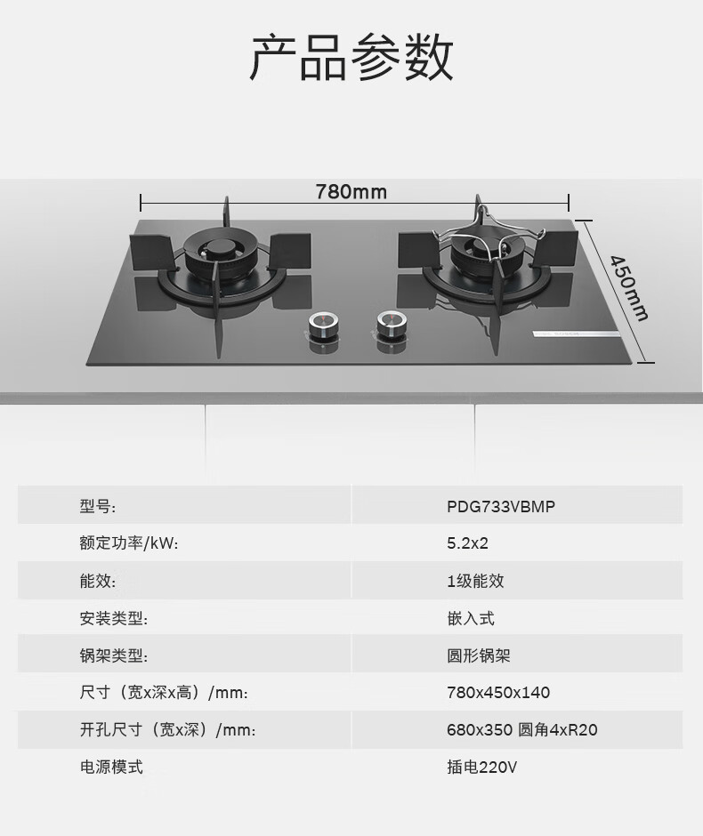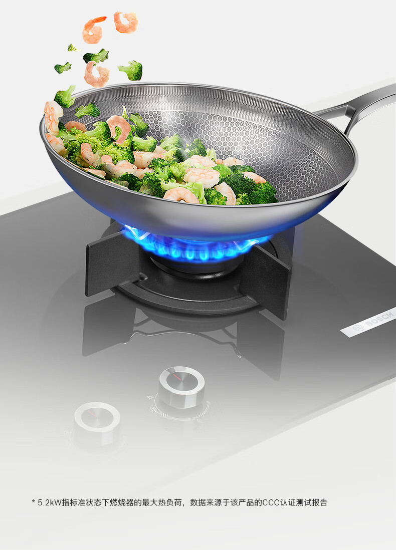 博世(BOSCH)4系 5.2kW家用大火力燃气灶 秒速点火 易清洁灶头 安全熄火保护 一级能效 星际灰钢化玻璃面板 天然气 PDG733VBMP