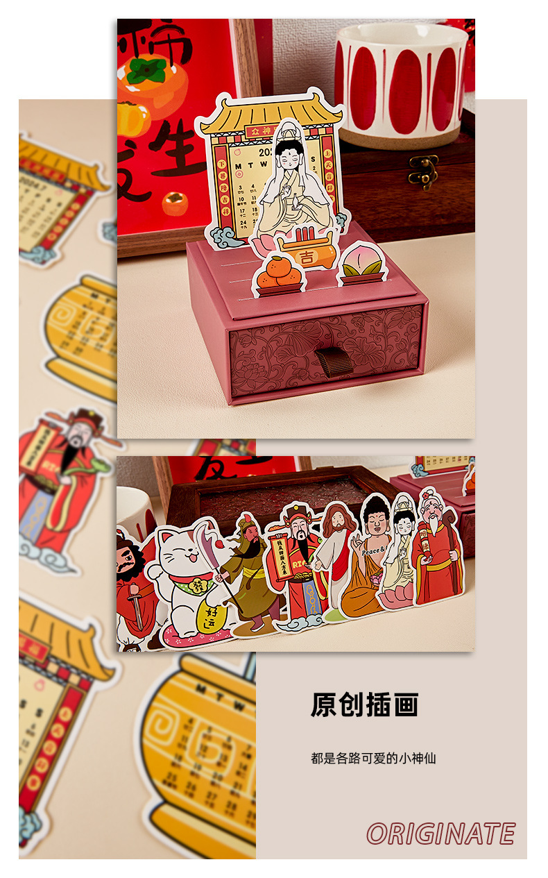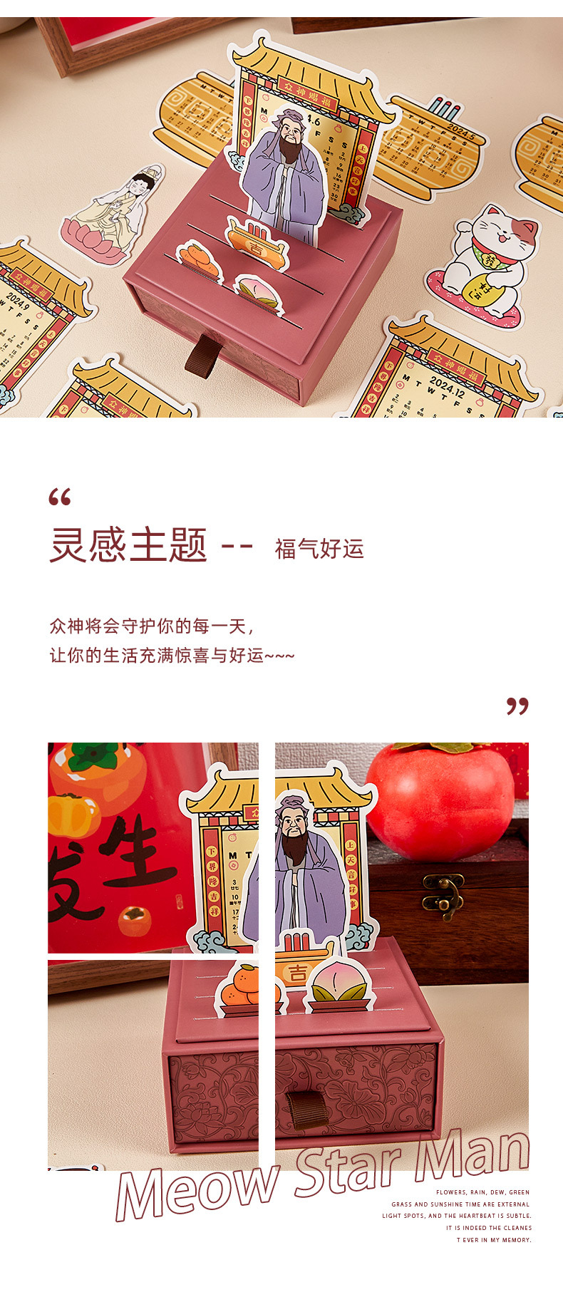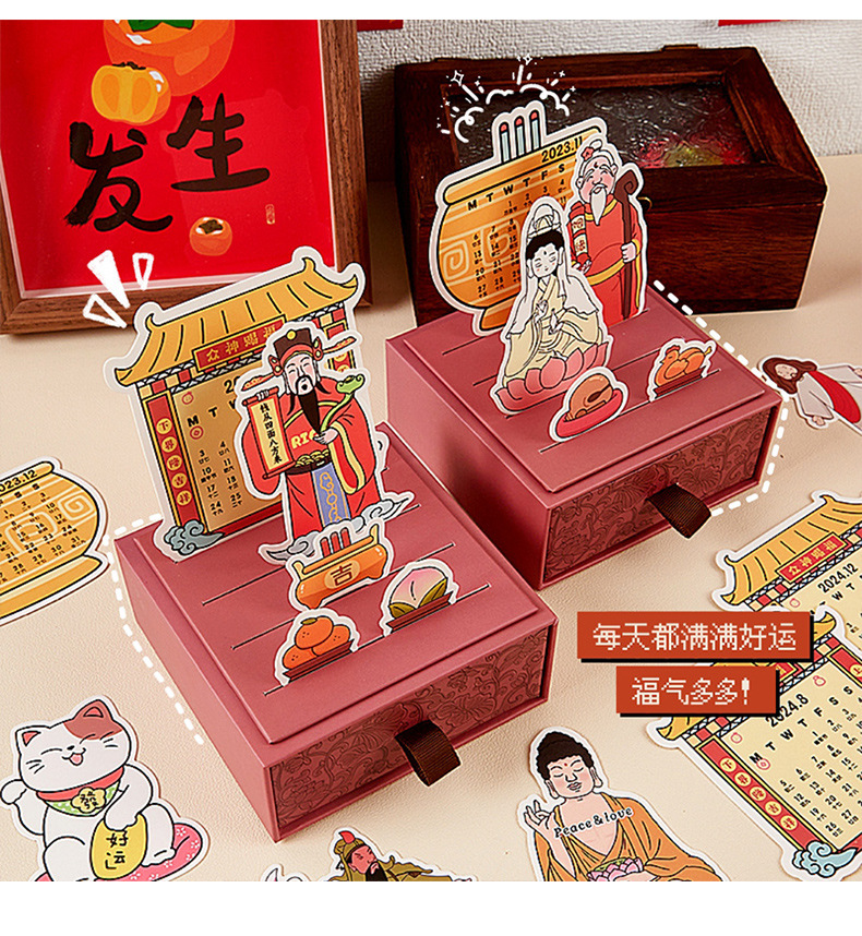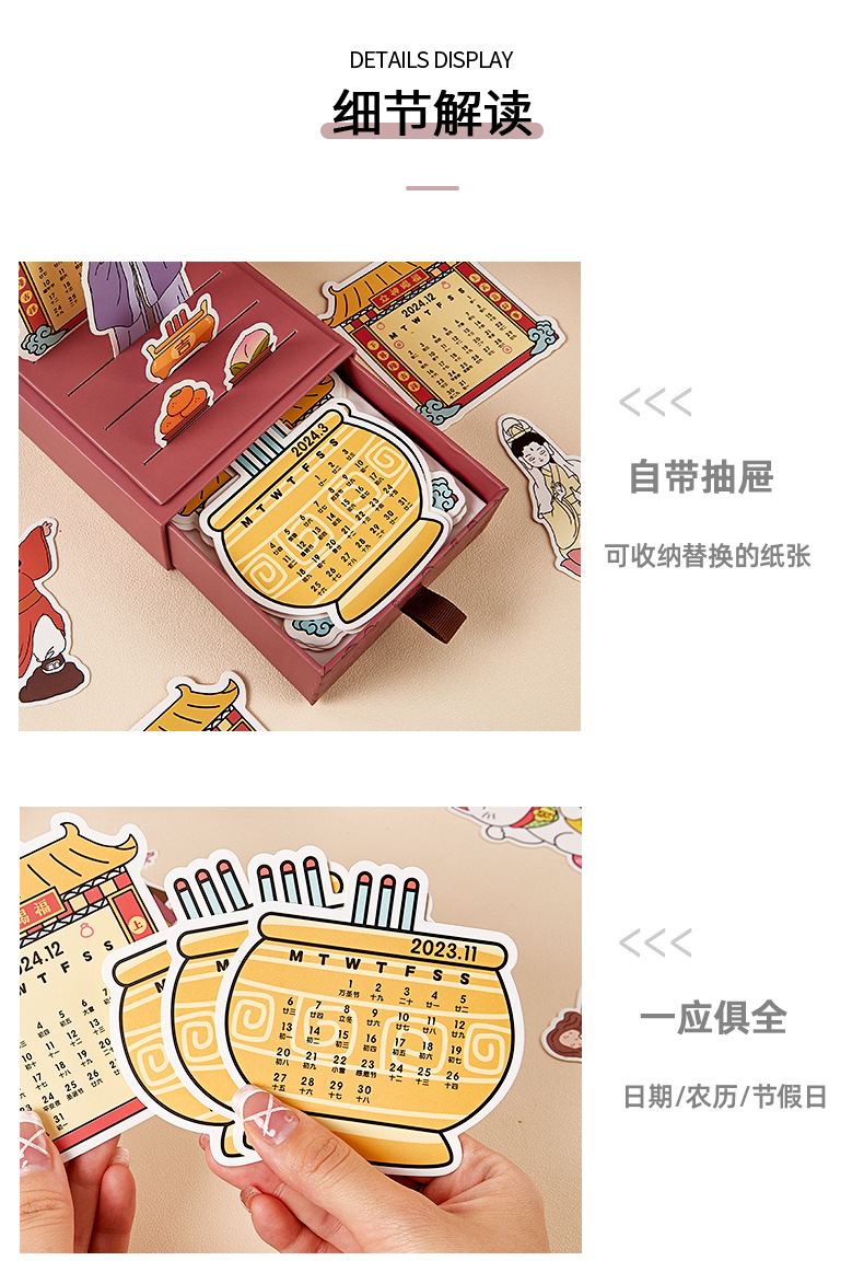 「2024赐福款!台历收纳盒」抽屉台历创意办公室桌面摆件抽屉日历居家日用颜值迷你台历整理