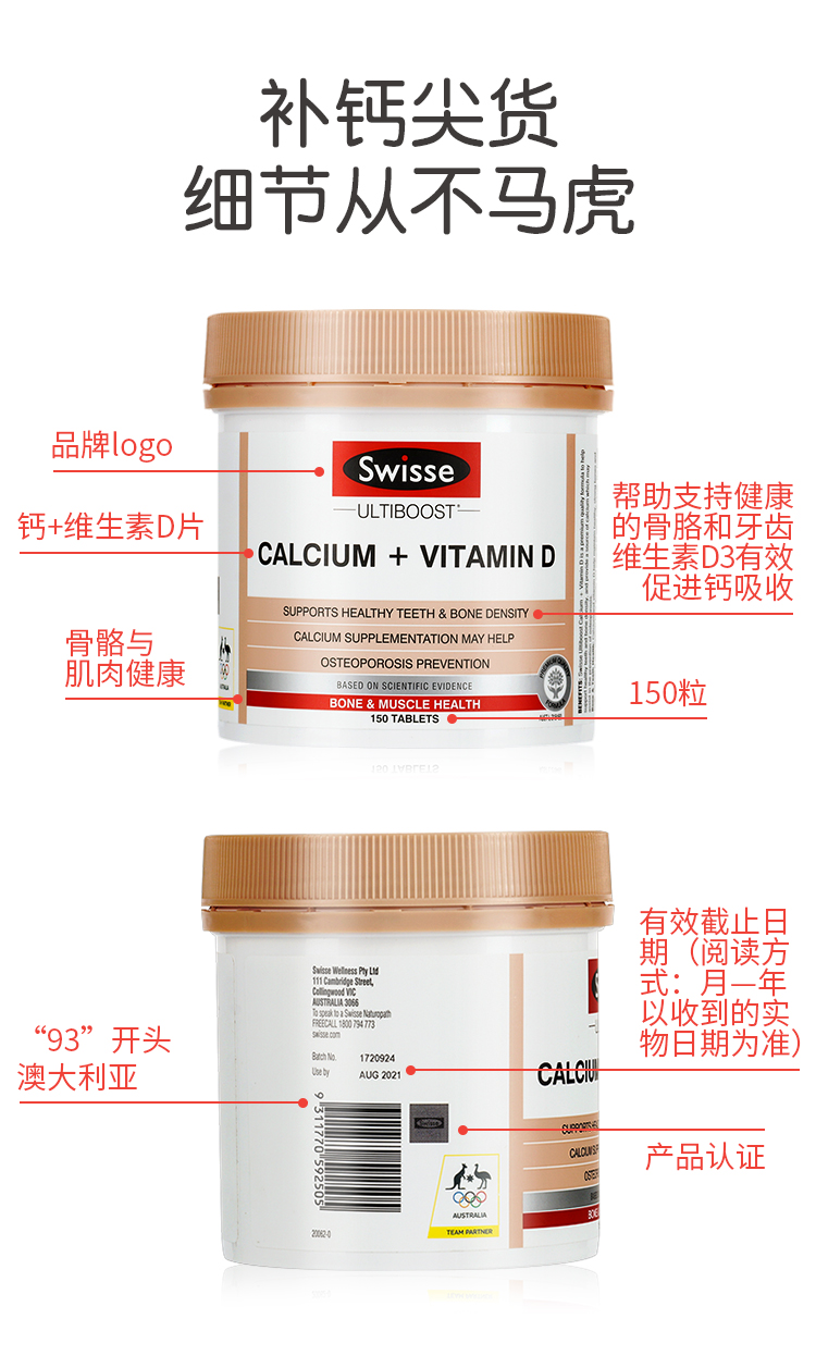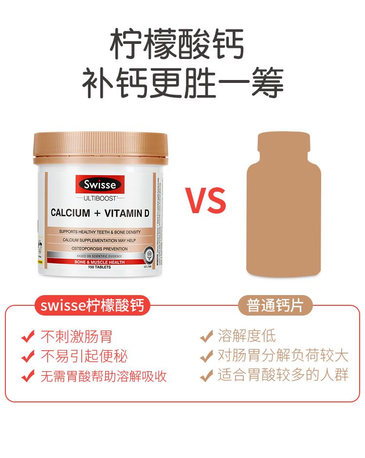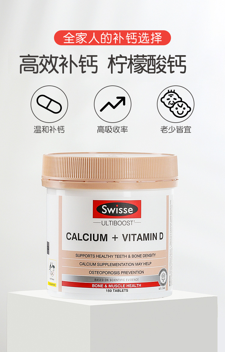 【新老包装随机发货】swisse斯维诗 钙片+维生素D柠檬酸钙 150粒【不足200元订单,默认顺丰快递到付】