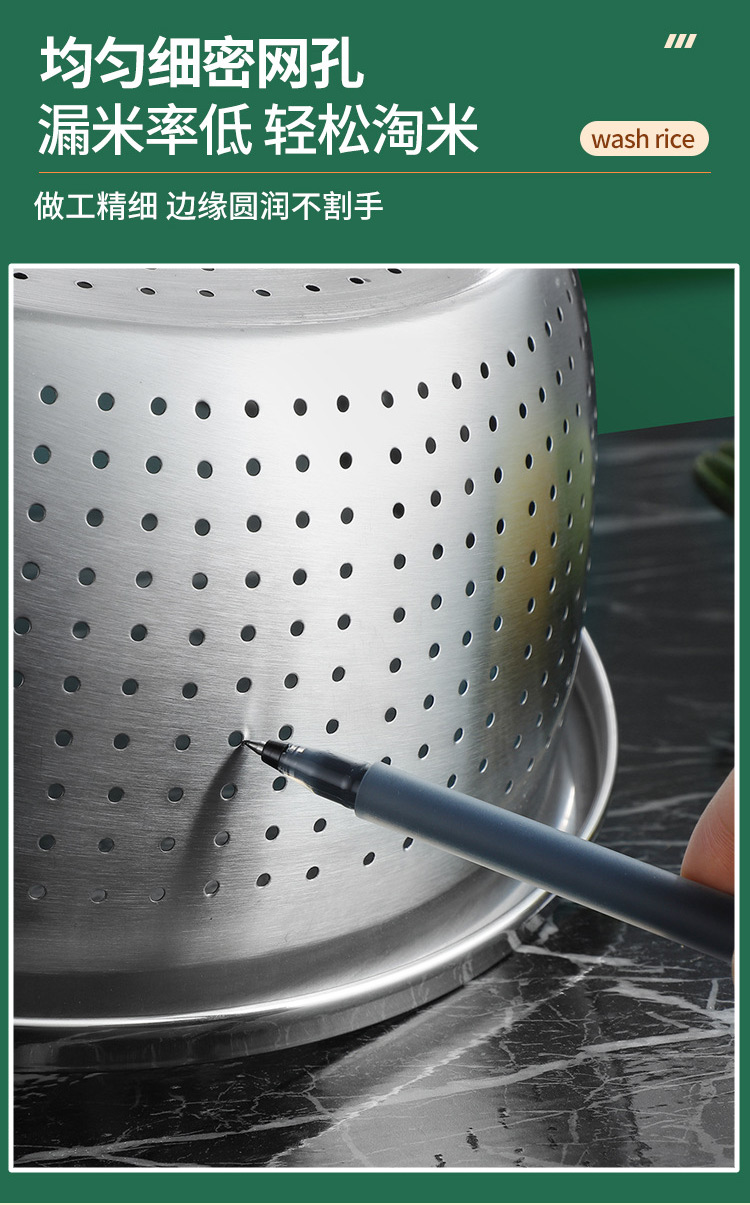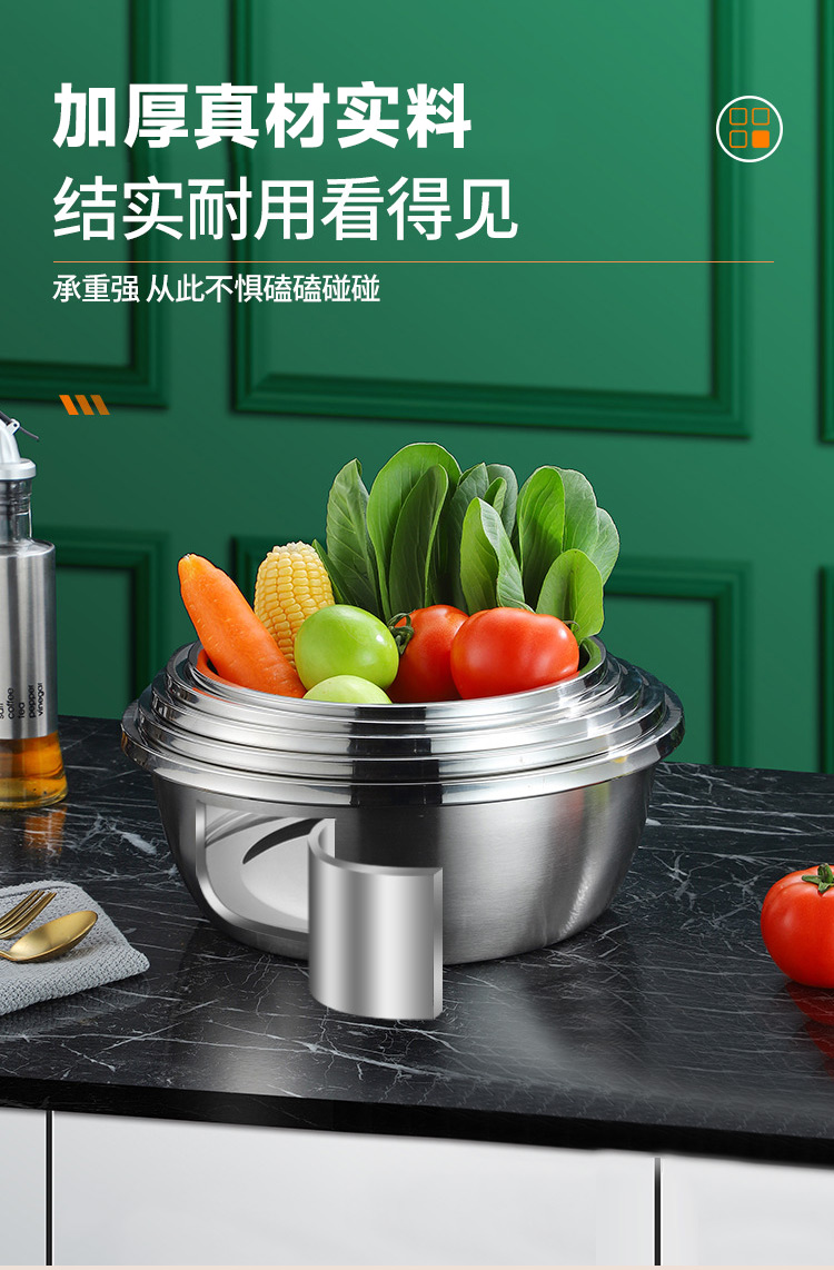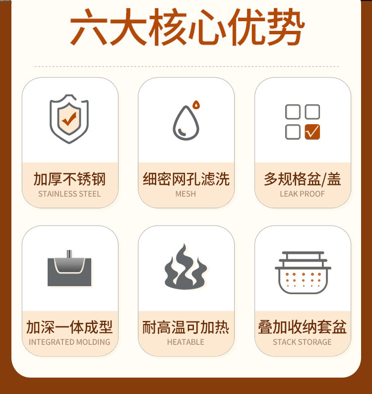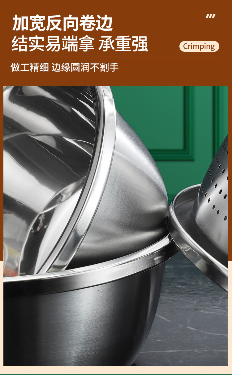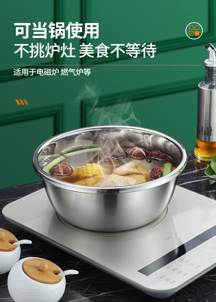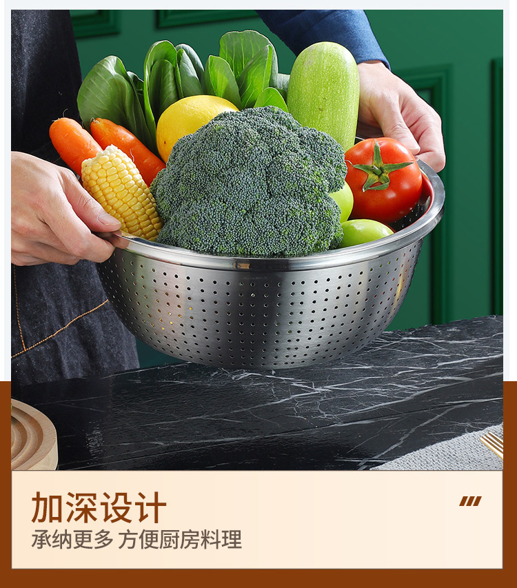 【精选】翰乐多功能不锈钢4盆1筛五件套 耐高温可加热 加深加厚 做工精细