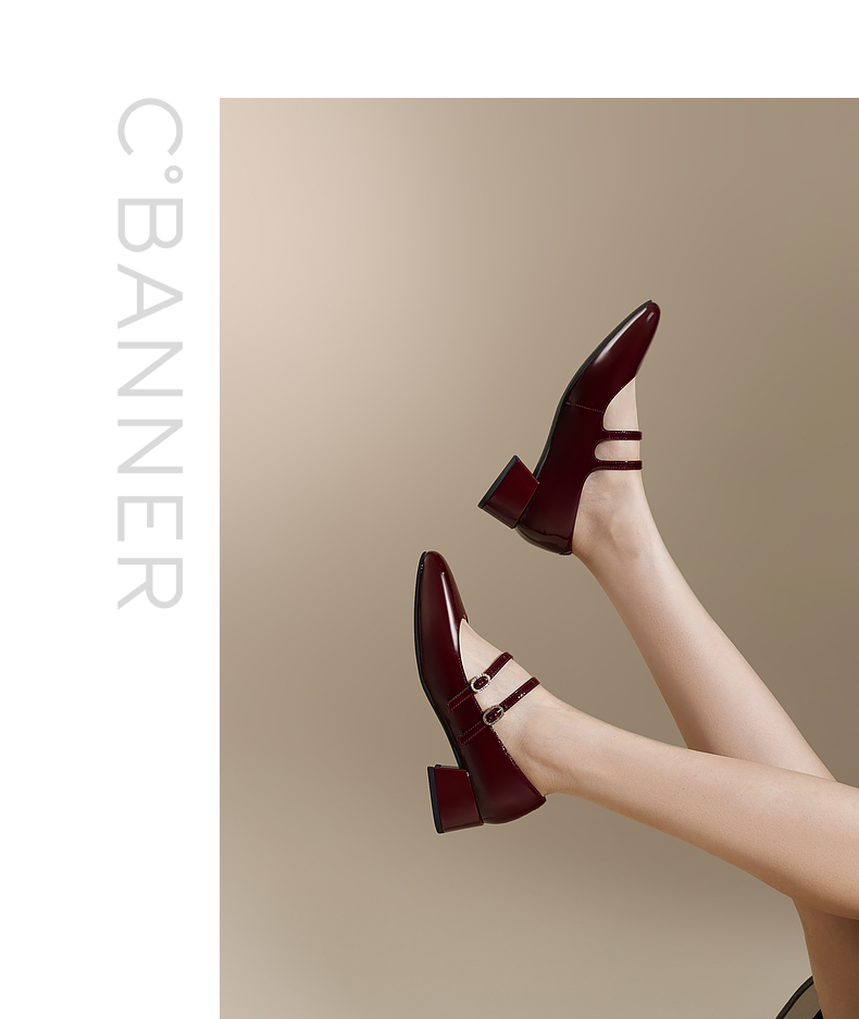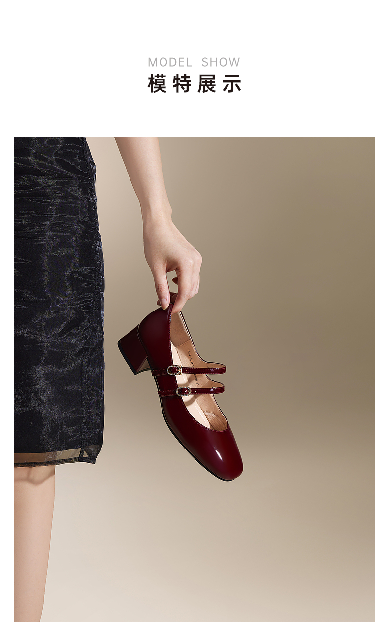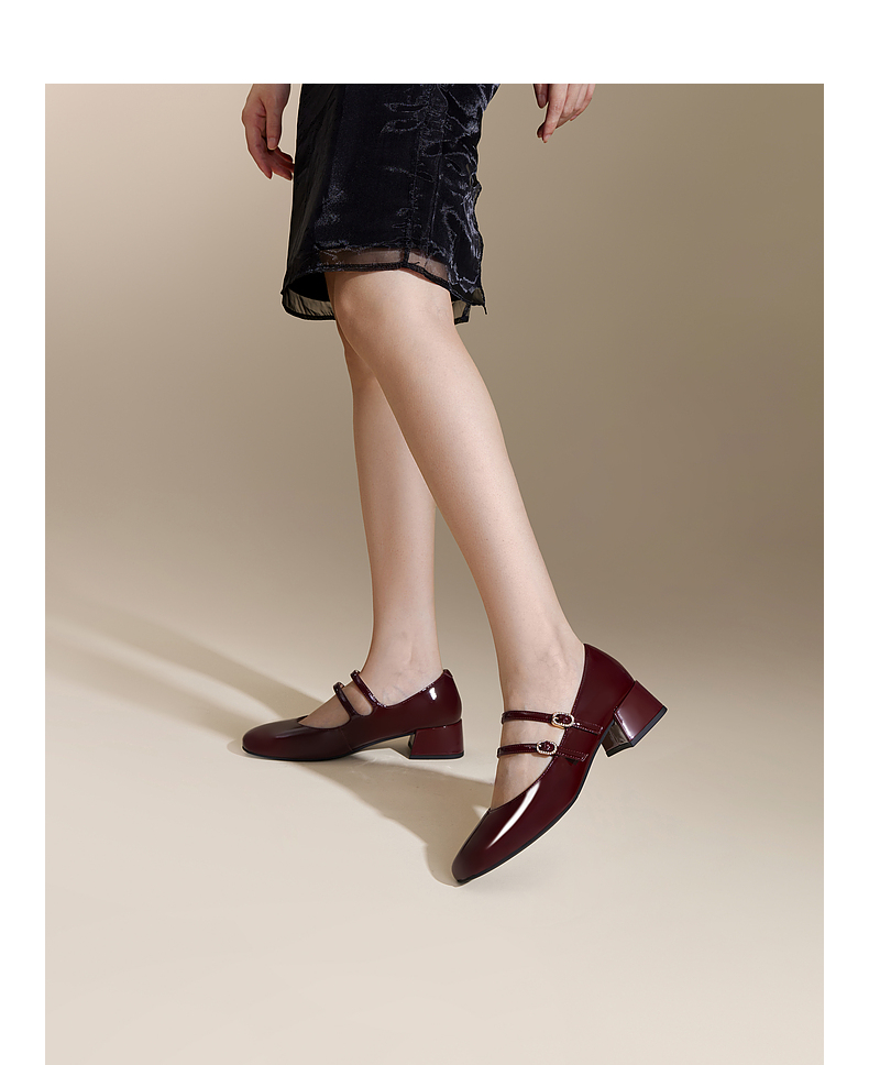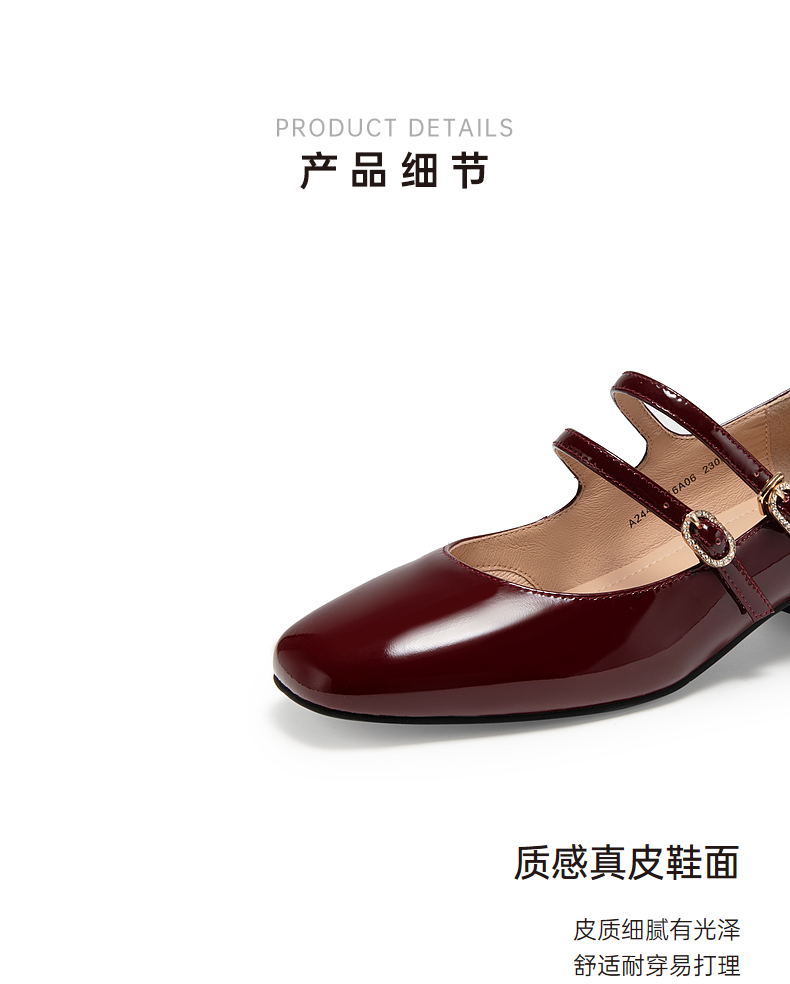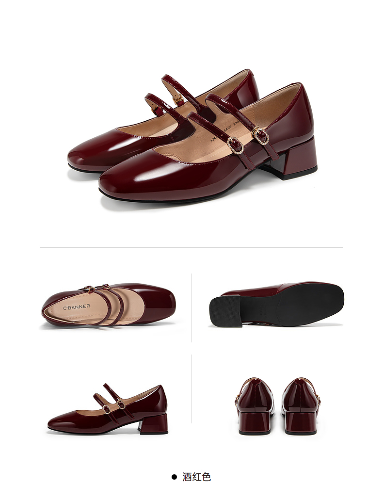 千百度粗中跟时尚玛丽珍鞋女款秋季漆皮小香风真皮单鞋A24430116