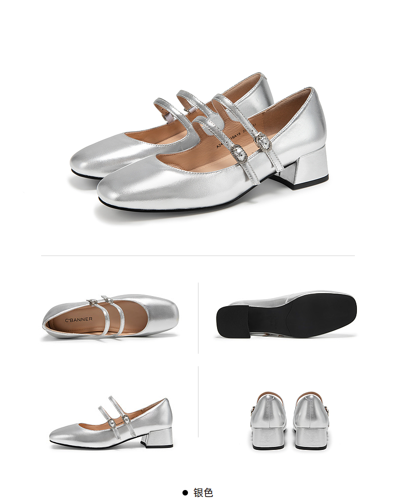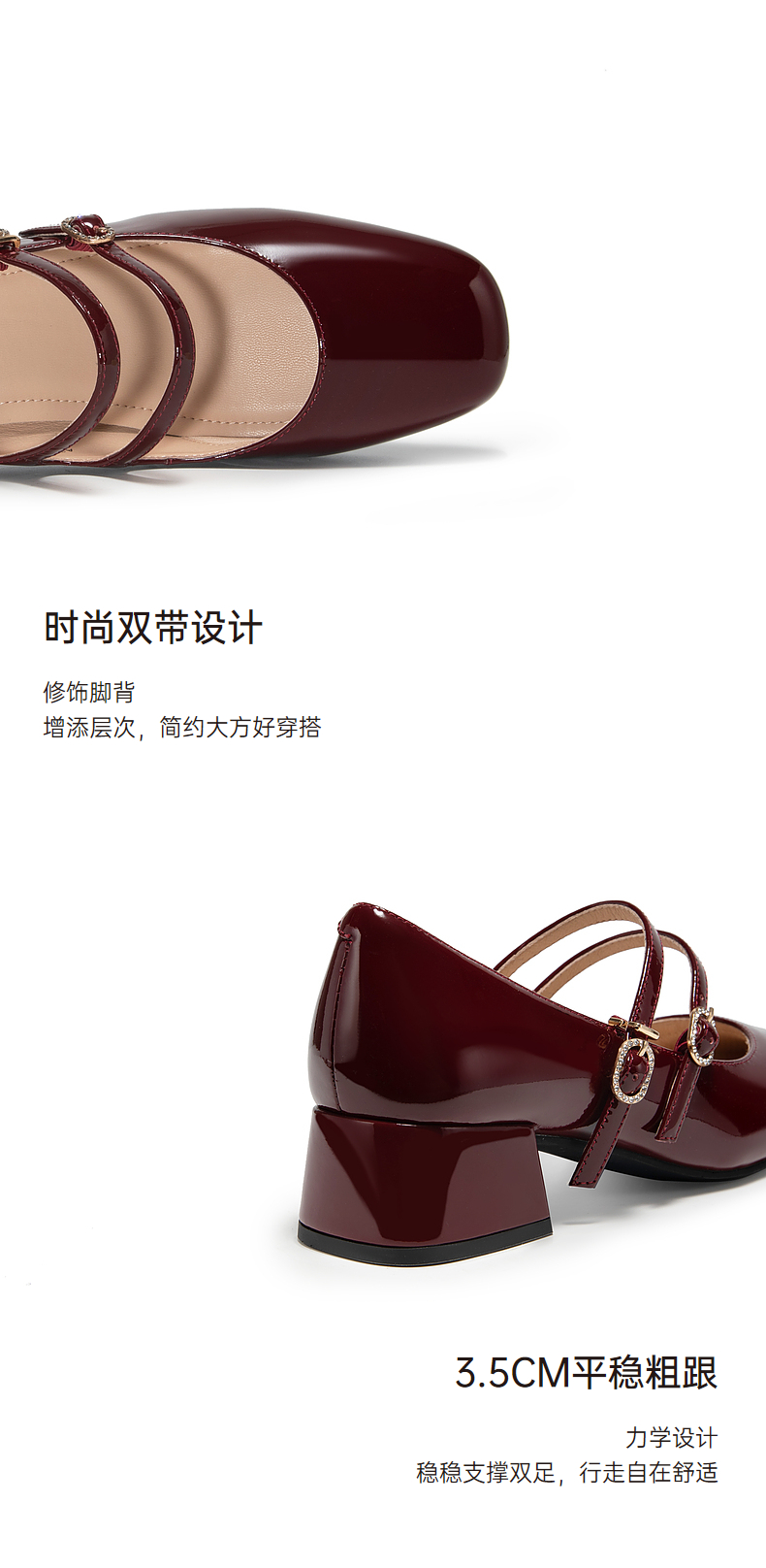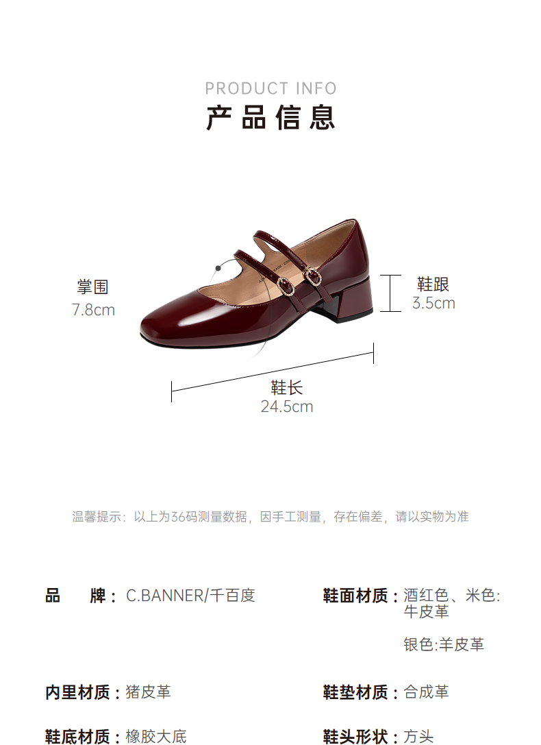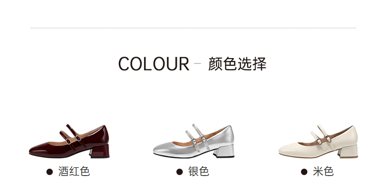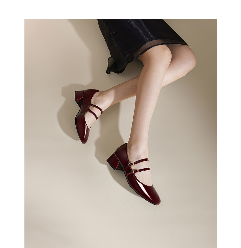 千百度粗中跟时尚玛丽珍鞋女款秋季漆皮小香风真皮单鞋A24430116