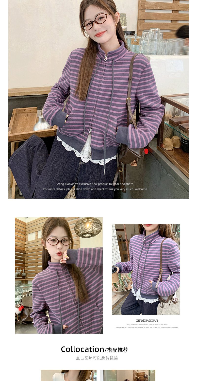 <曾小咸推荐>现货秒杀 !微信超特价!条纹立领外套 日常209.99 立减100 秒杀109.99!!
