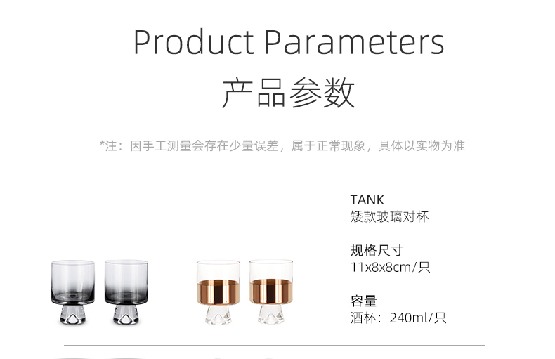 【Tom Dixon】TANK铜圈装饰球底玻璃杯套装(2件装)(食品接触用)