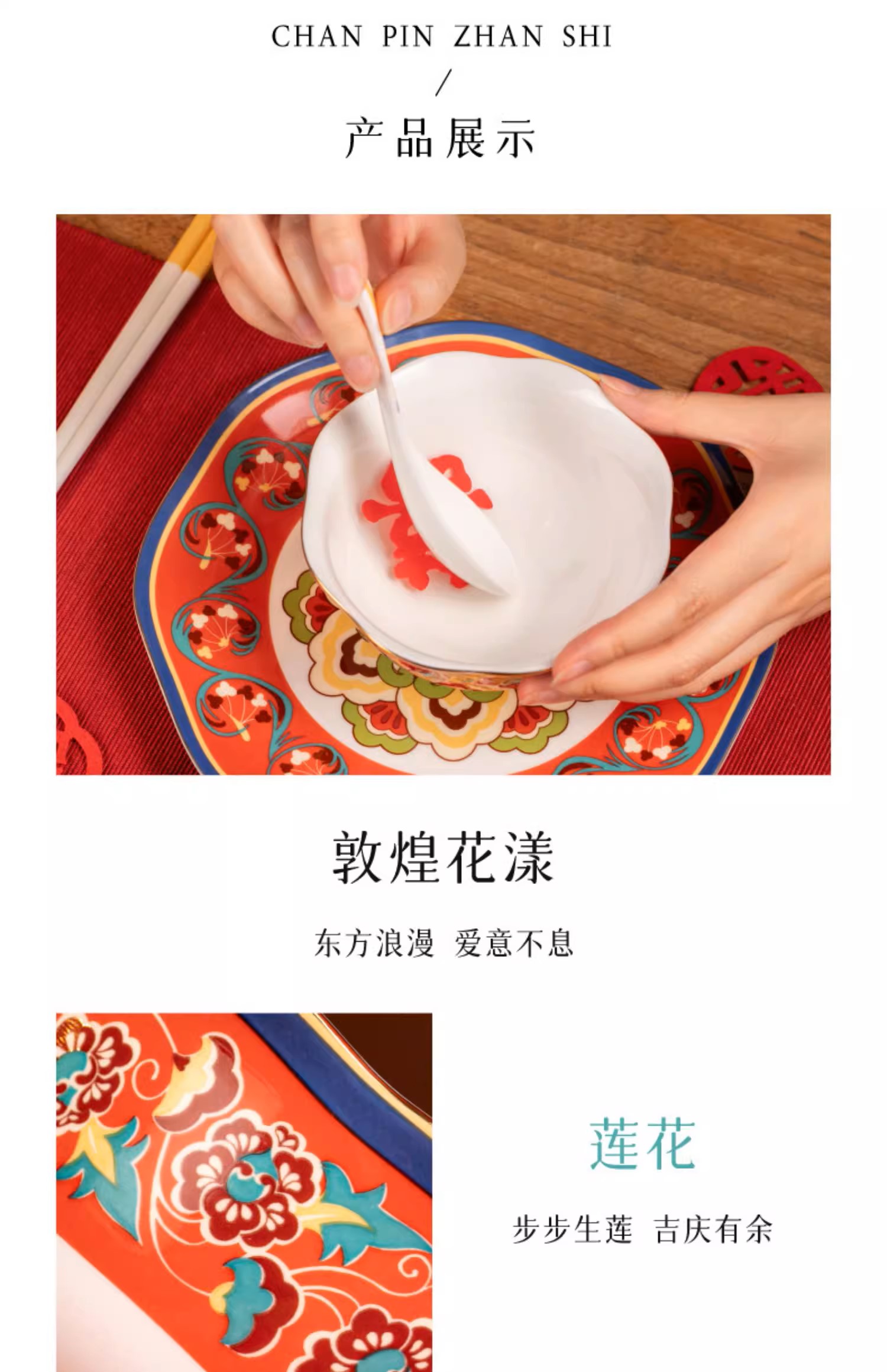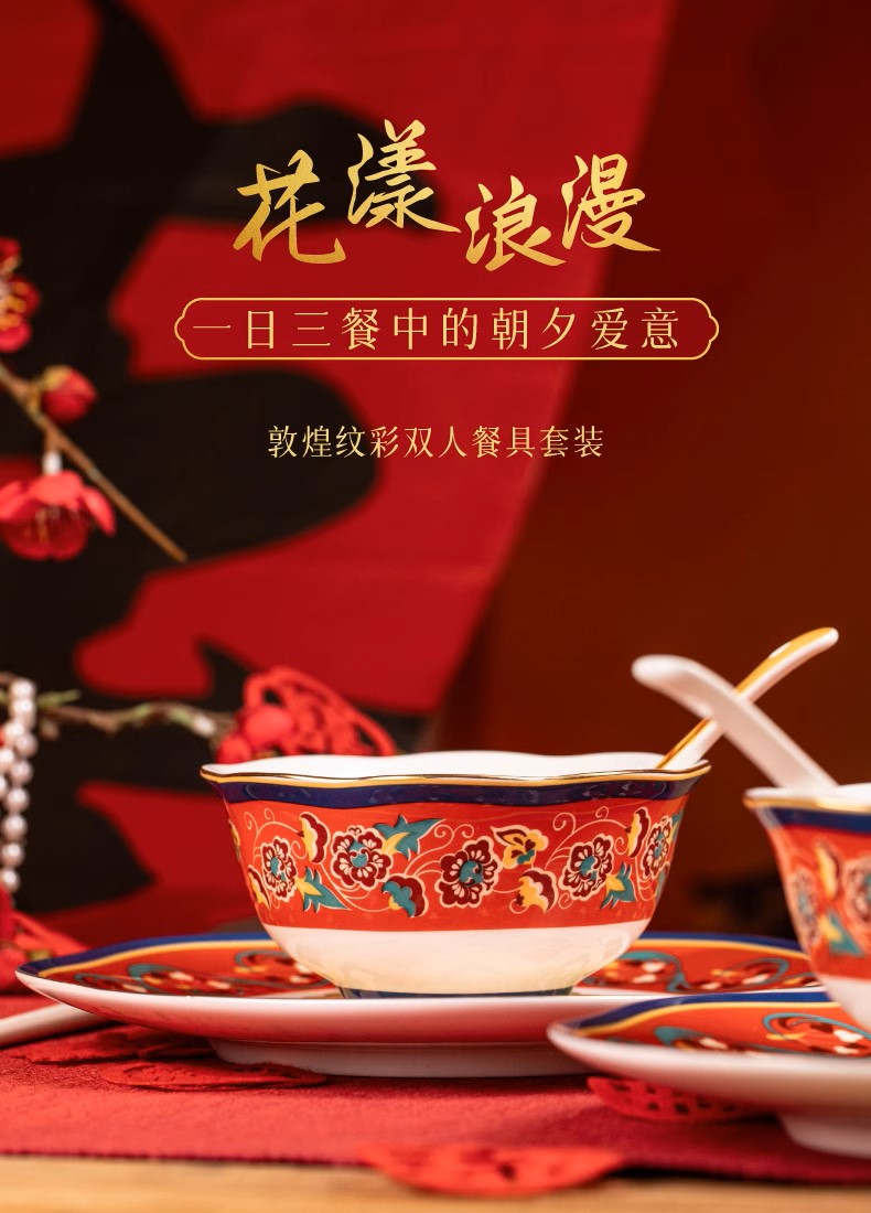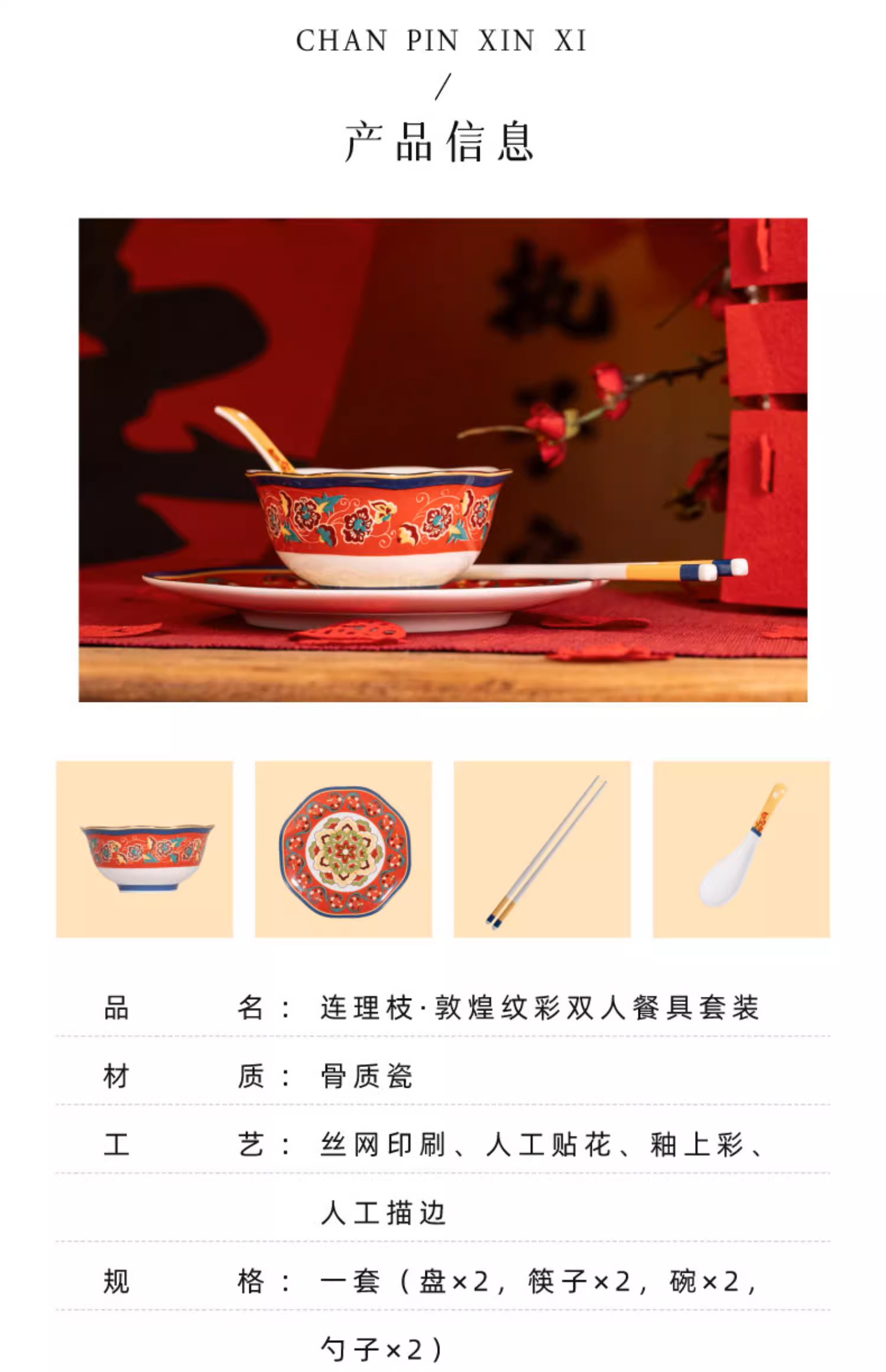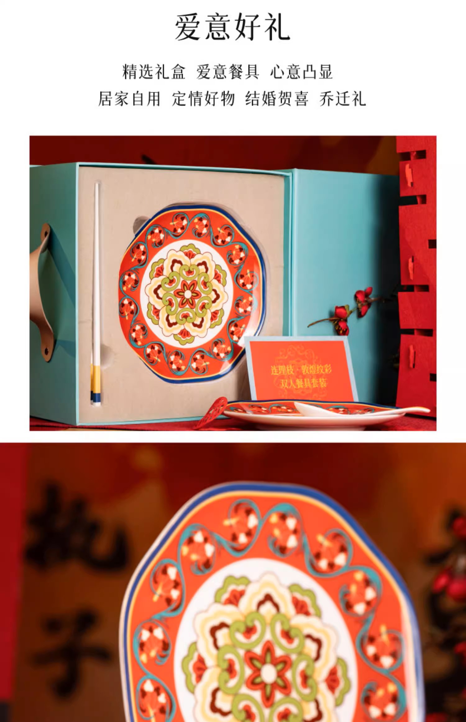 敦煌研究院 敦煌纹彩双人餐具套装 结婚礼物送新人订婚礼品伴手礼