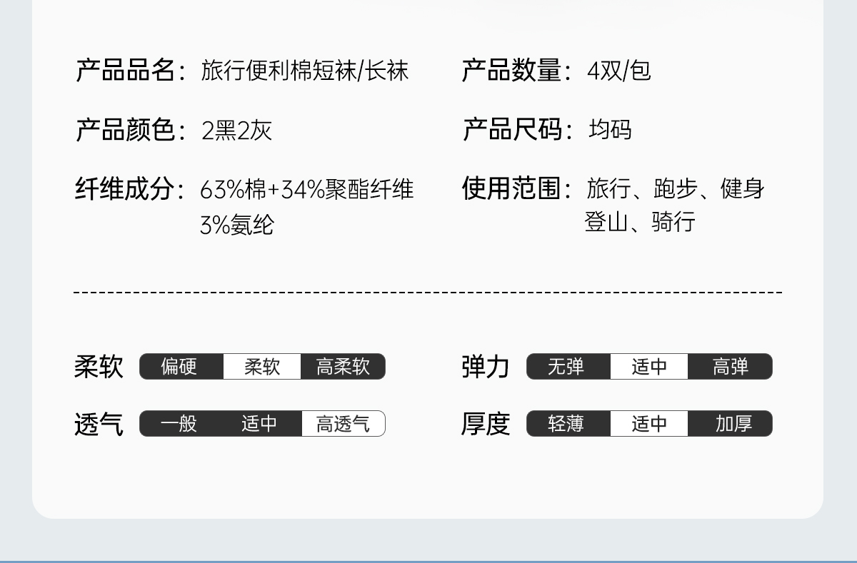 Freego「5A抗菌」一次性长袜 | 短袜 男女通用款 4双装