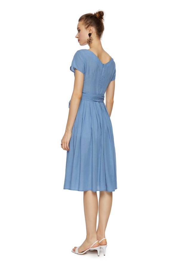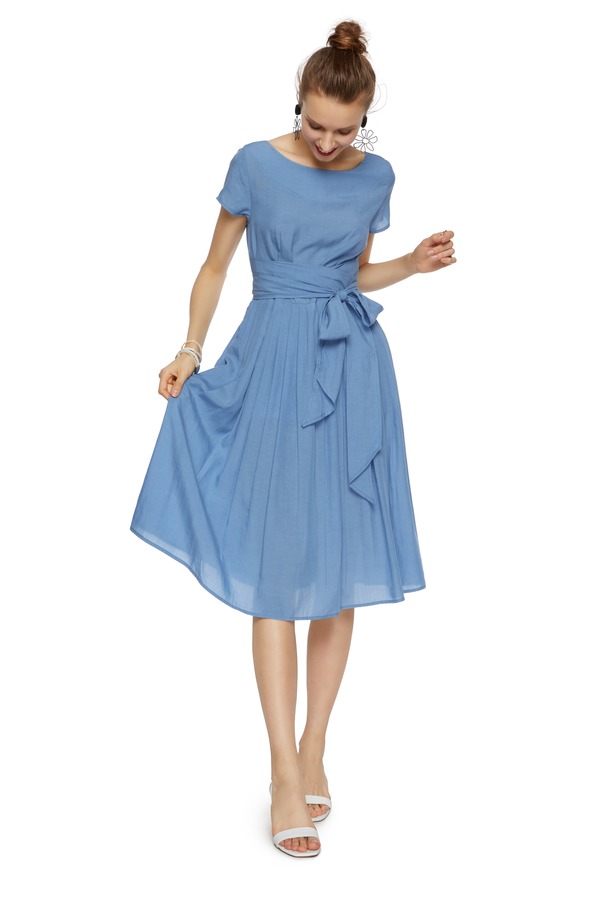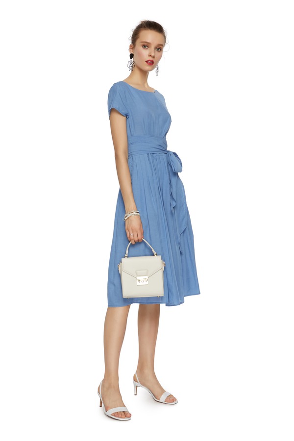 SUMMER & SAGE 蓝色束腰圆领连衣裙 7012