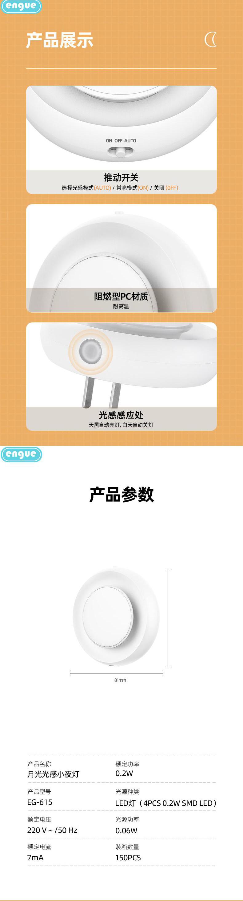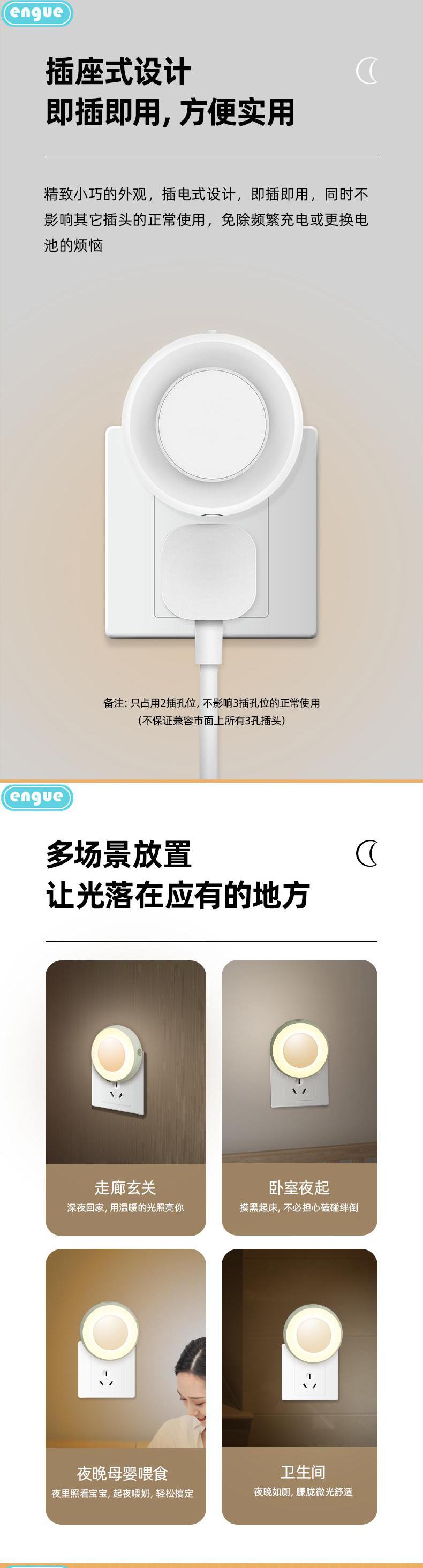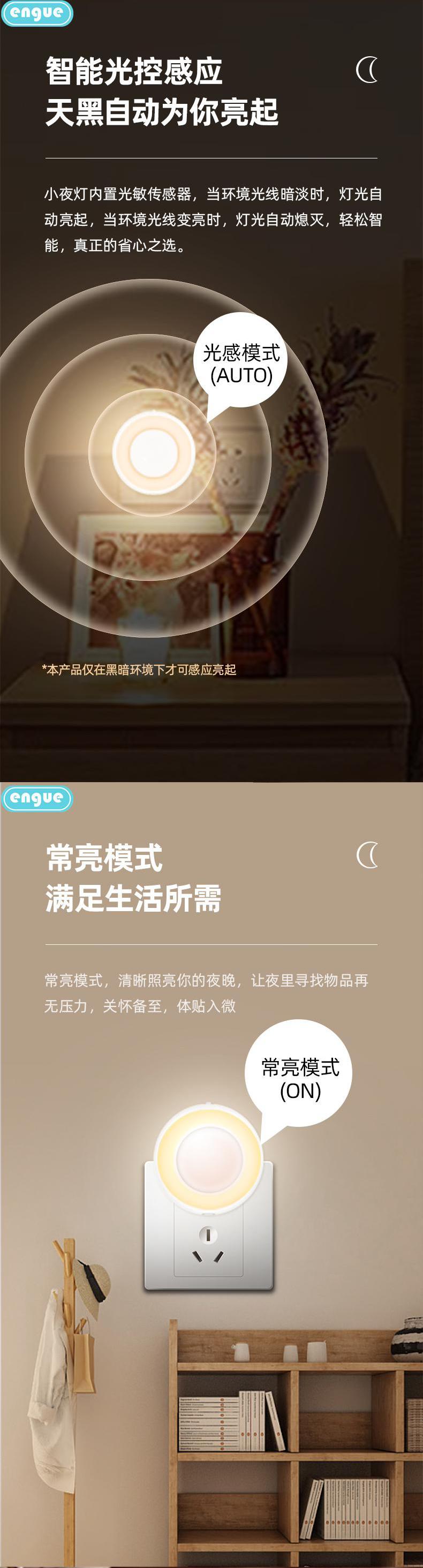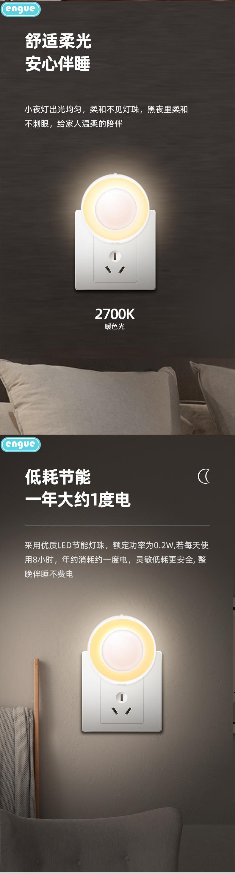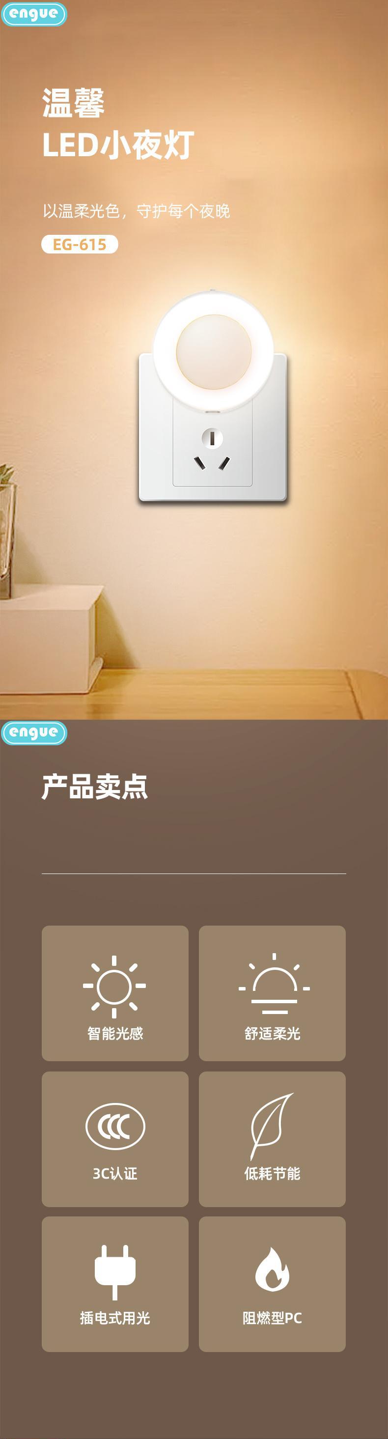 engue恩谷插电式温馨LED小夜灯EG-615节能柔光卧室过道起夜不刺眼