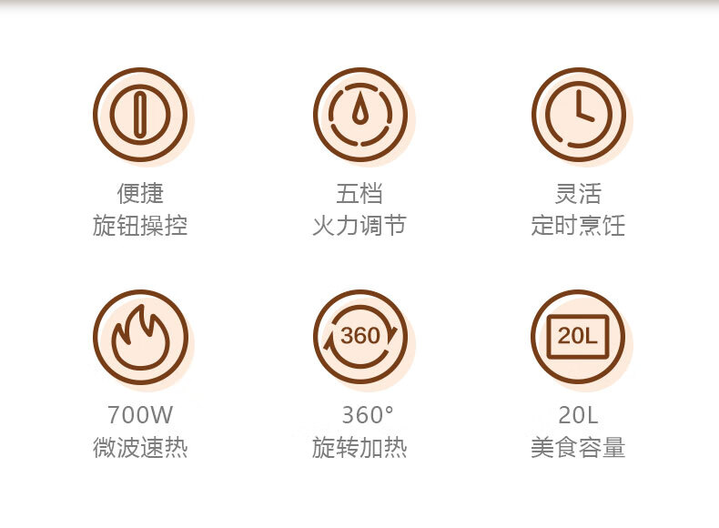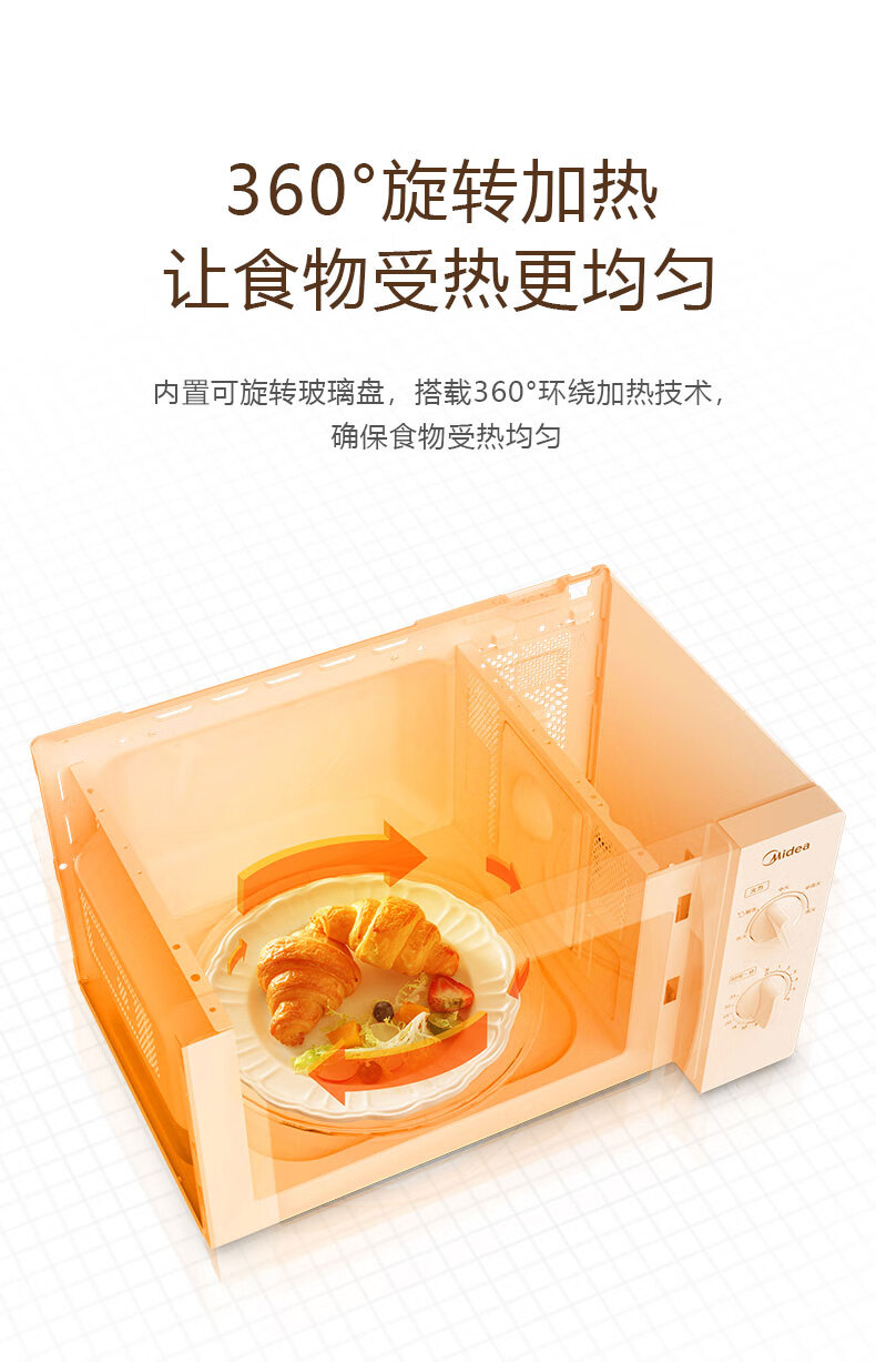 美的(Midea)快捷微波炉 家用小型 360°转盘加热 旋钮操控 易洁内胆(M1-L213B)1404743