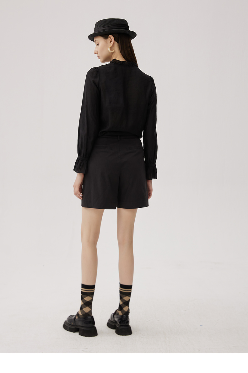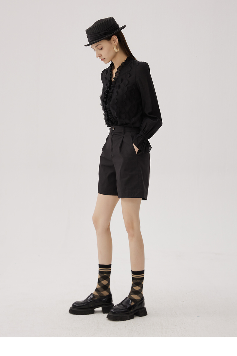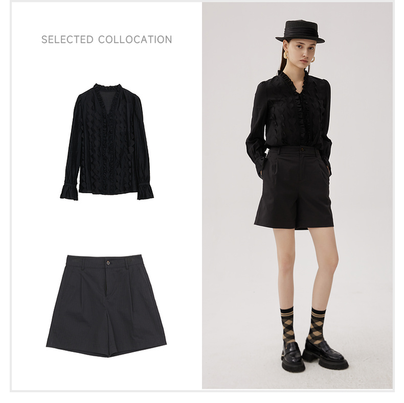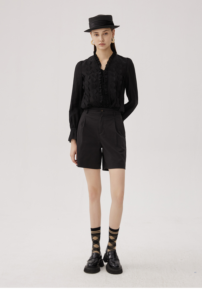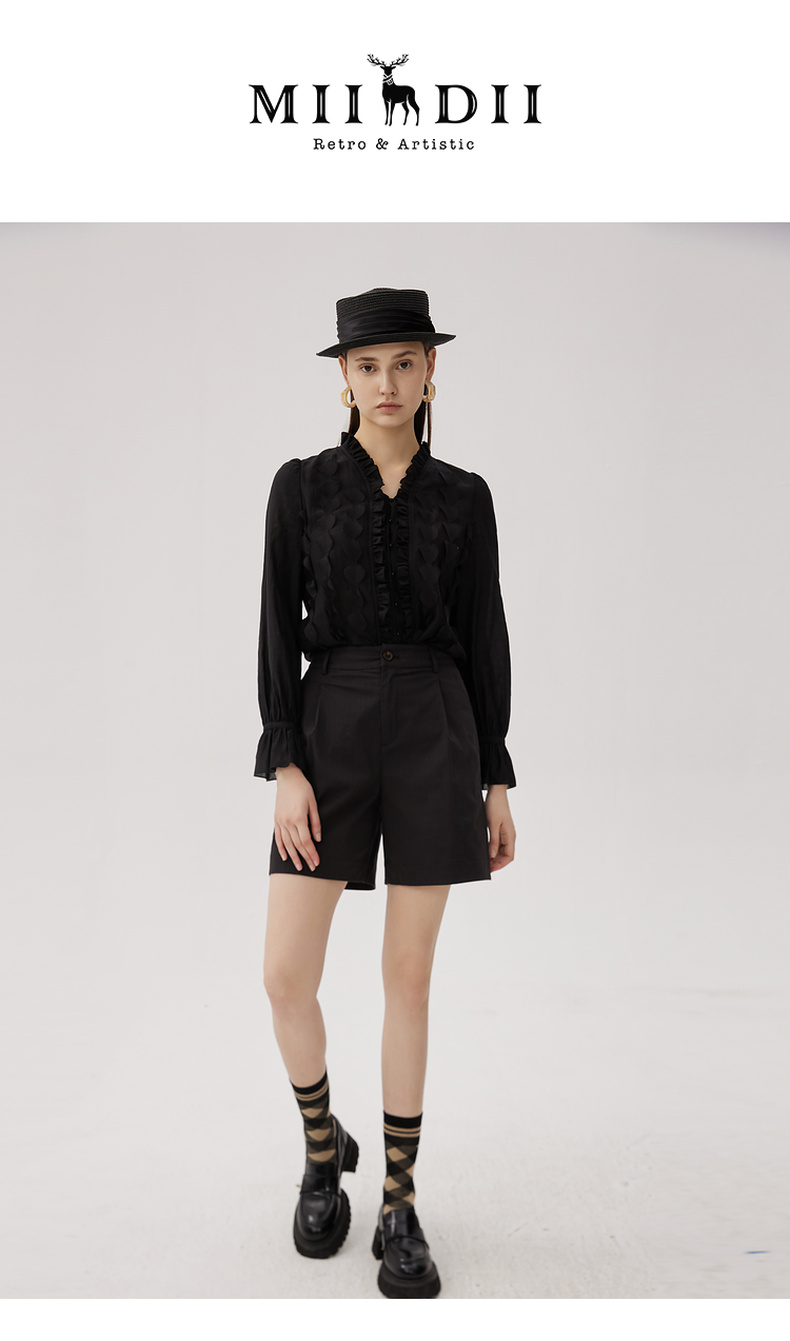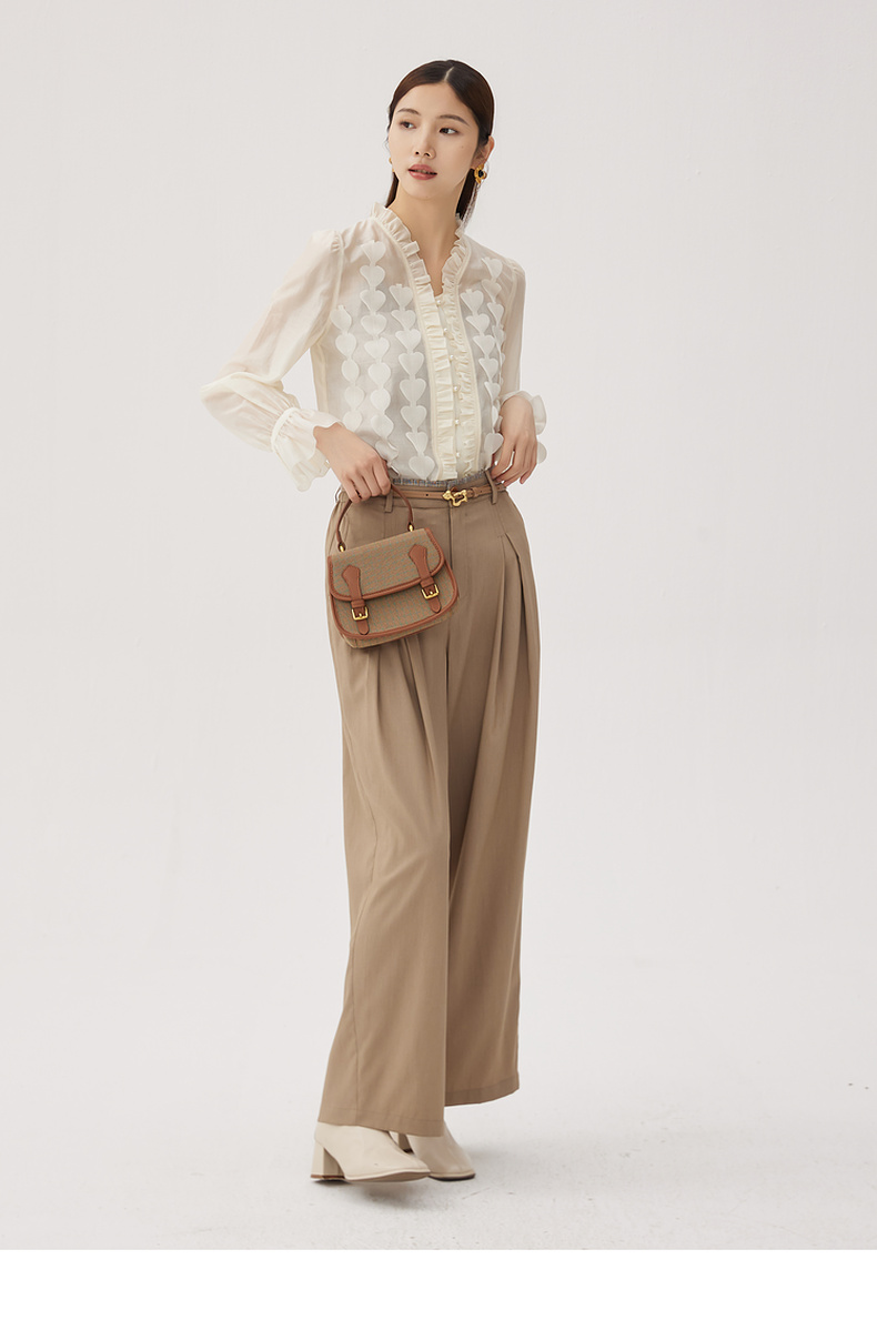 谜底衬衫长袖女2024秋新品优雅浪漫花边V领宽松刺绣衬衣243MC1104