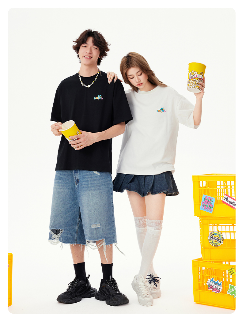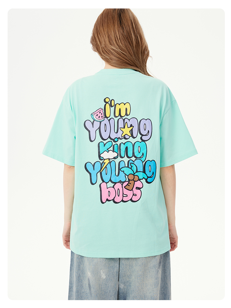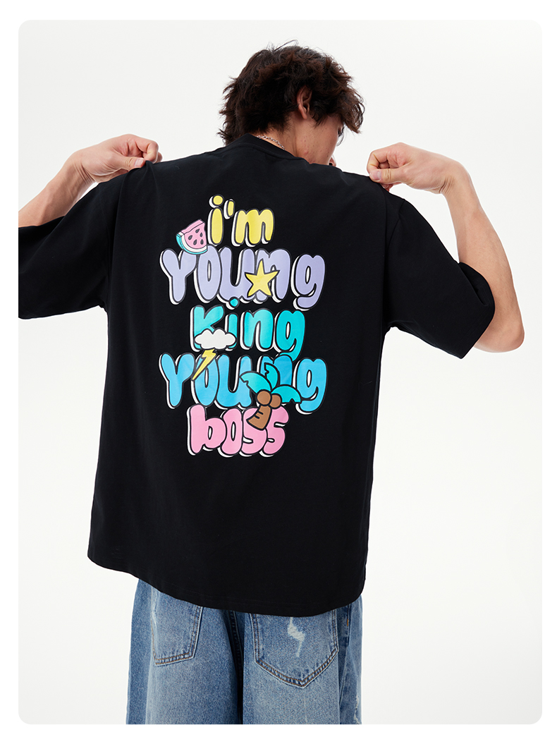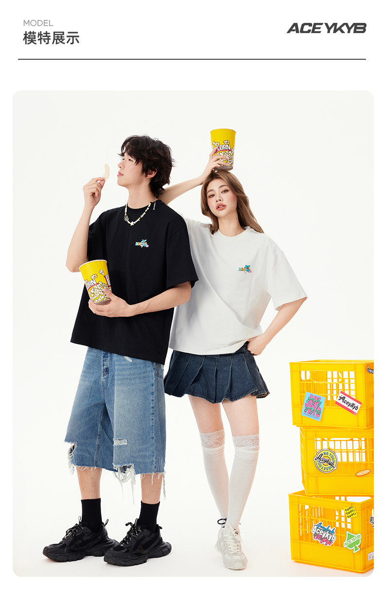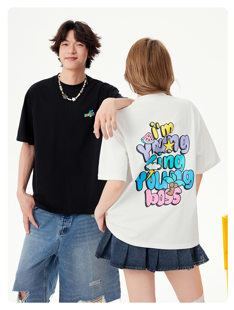 YKYB黄子韬短袖T恤情侣重磅舒适透气耐穿透气吸湿度假风涂鸦撞色活力上衣Y52NDT042