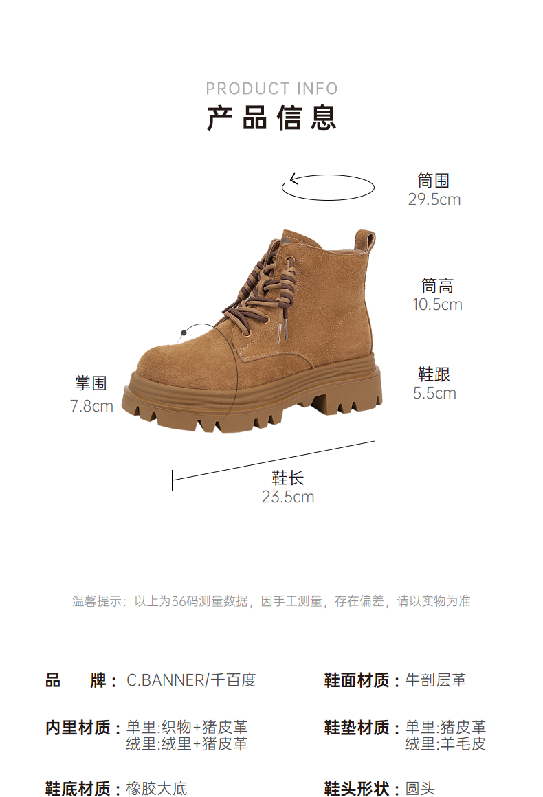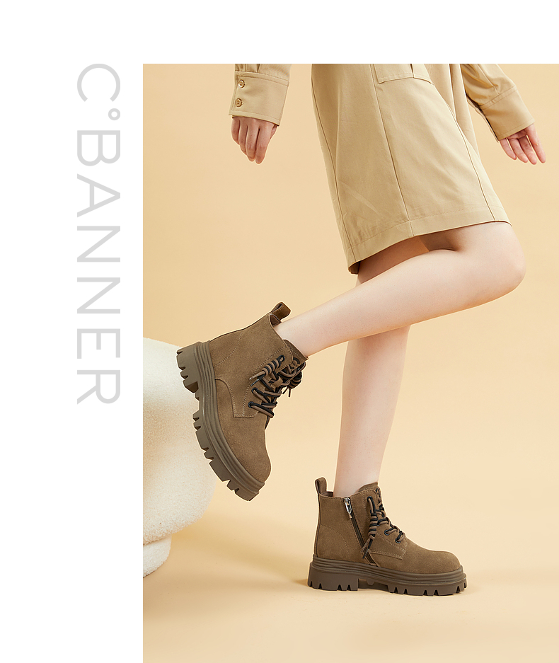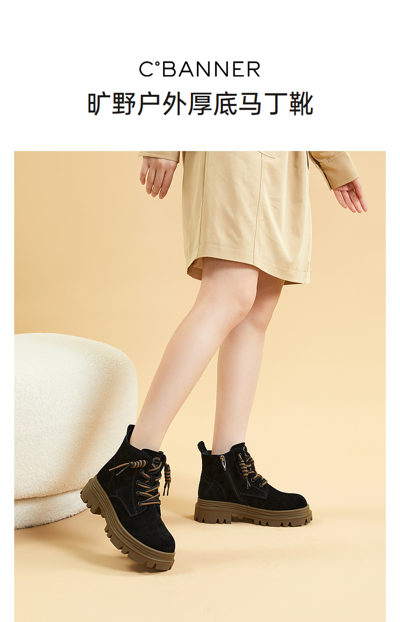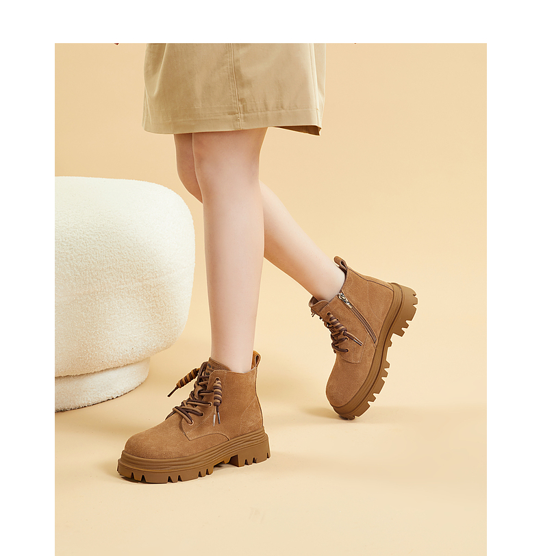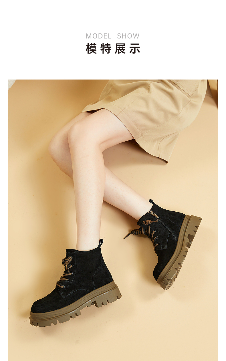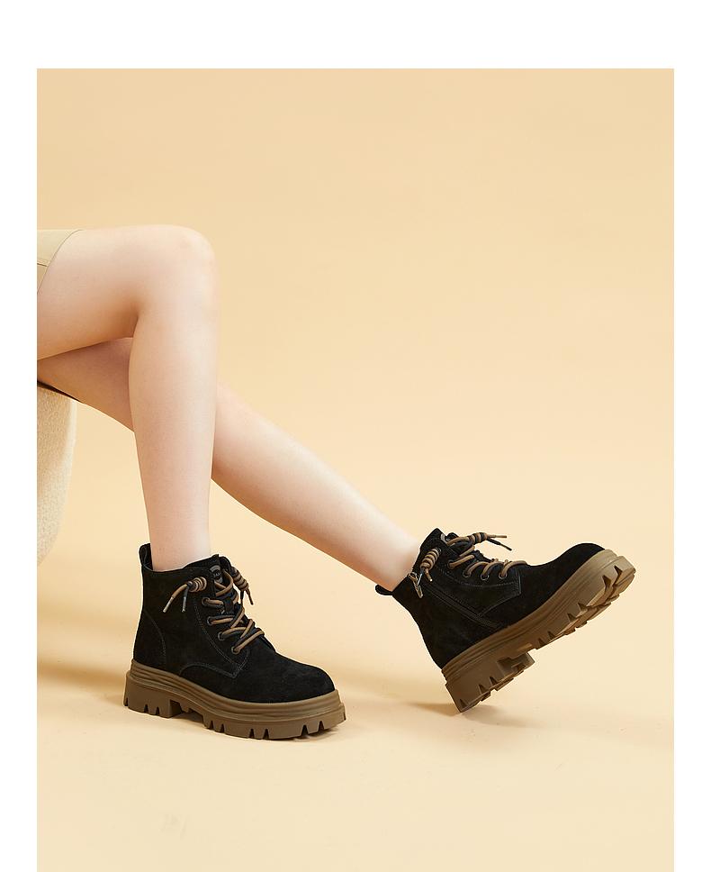千百度复古厚底马丁靴百搭冬季户外工装靴洋气小短靴女鞋保暖A23535723