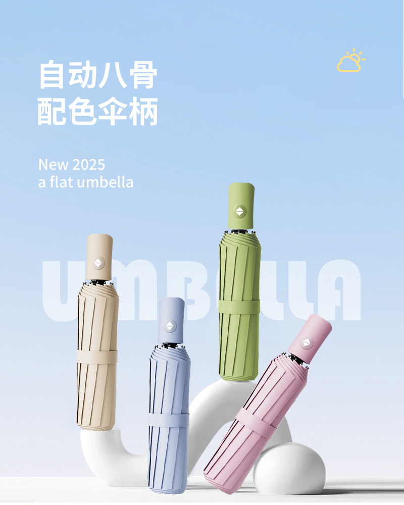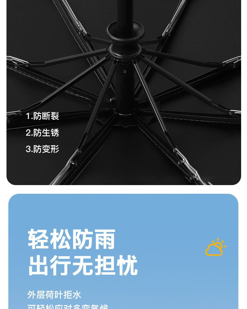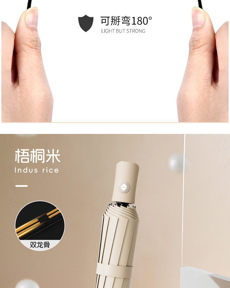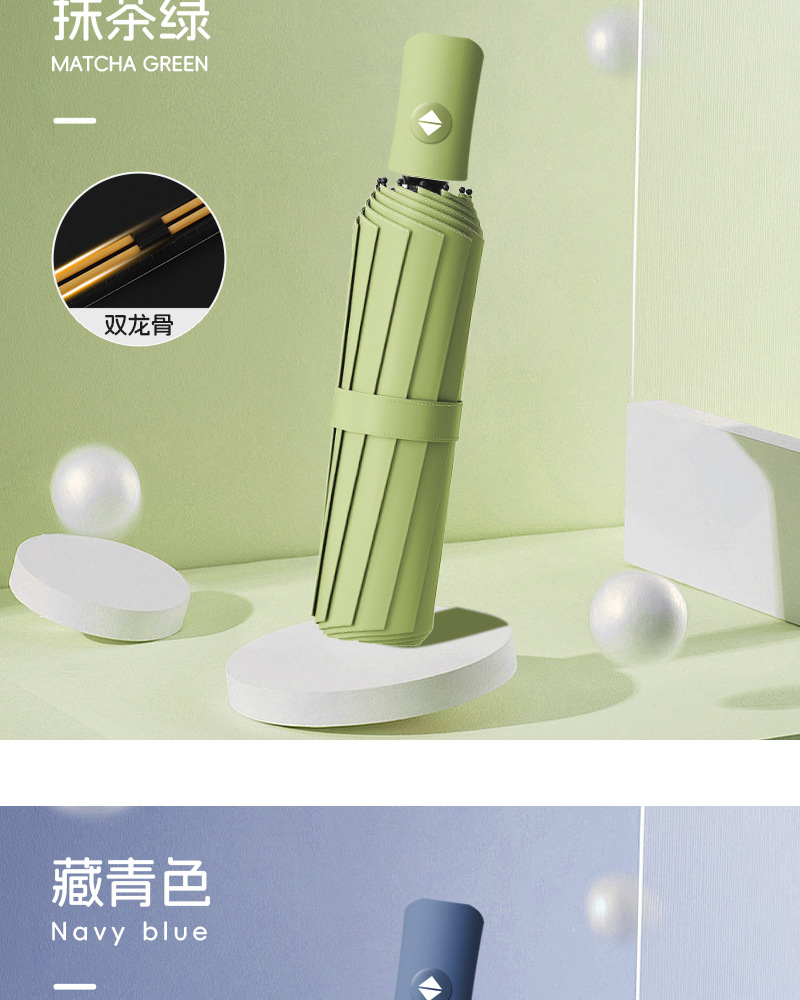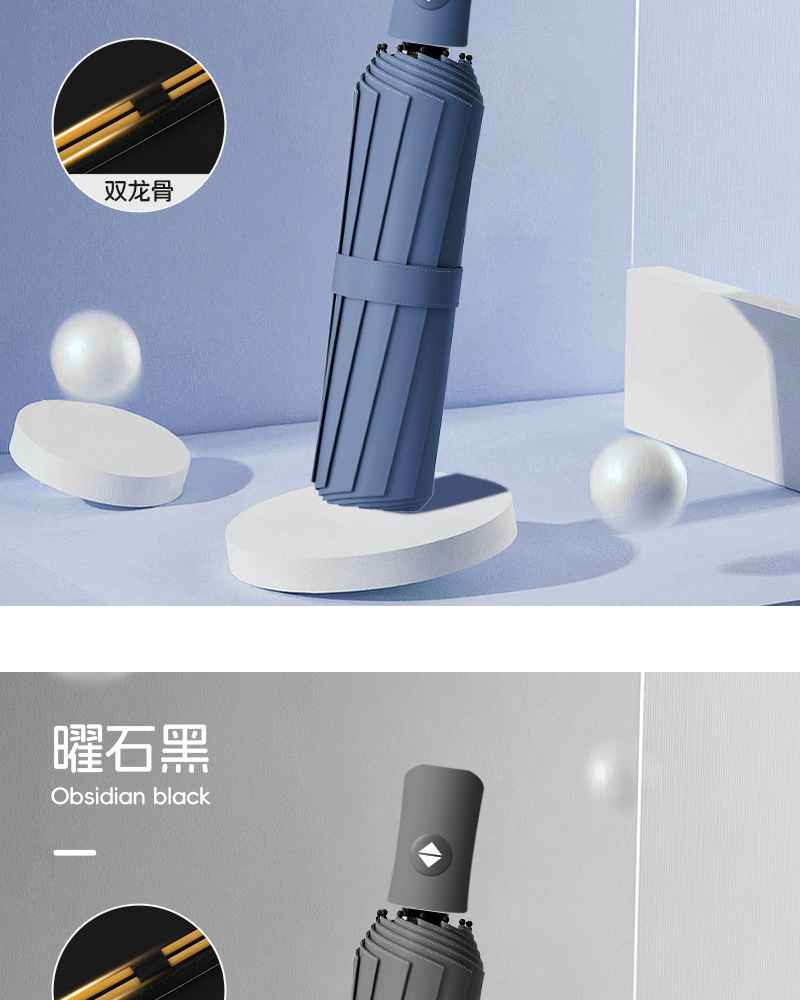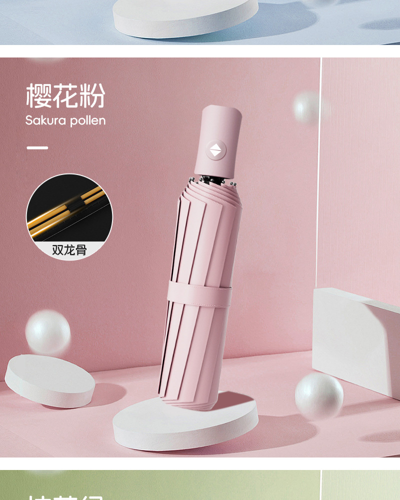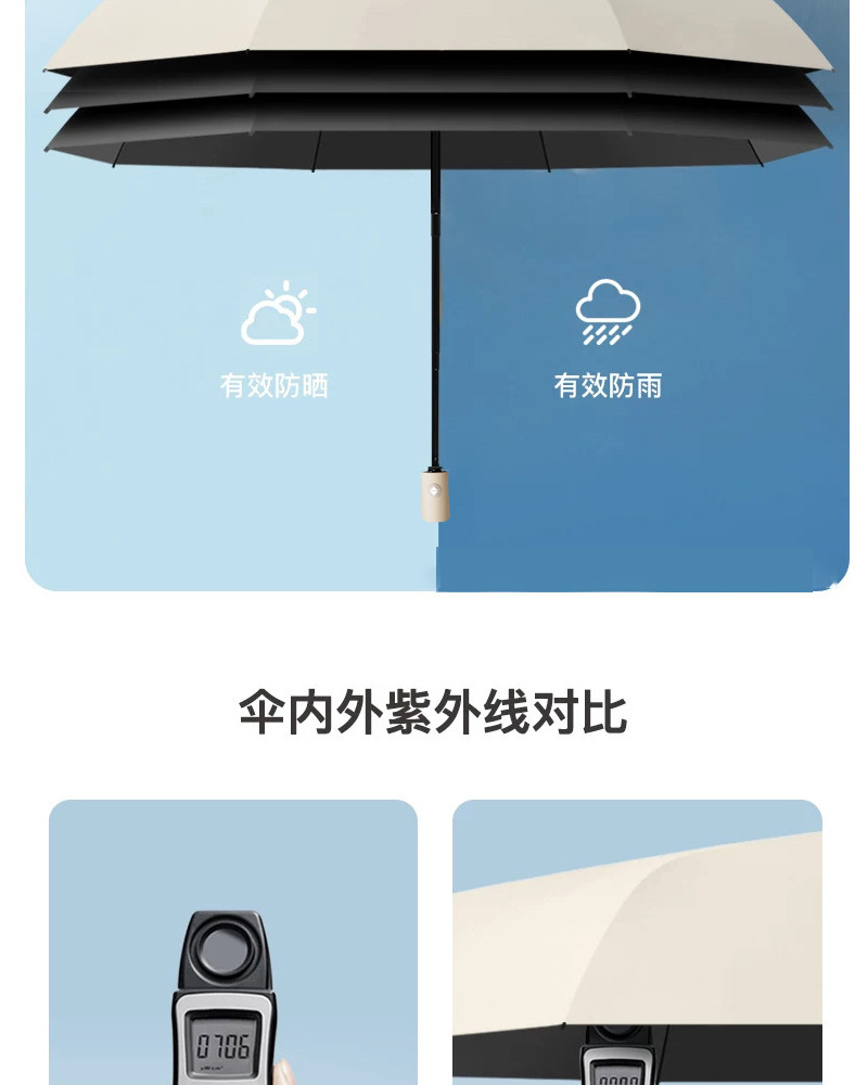 【出行无担忧❗️莫兰迪16骨黑胶雨伞】全自动折叠,轻便可收纳,晴雨两用太阳伞!女防紫外线遮阳伞高颜值三折伞雨伞L