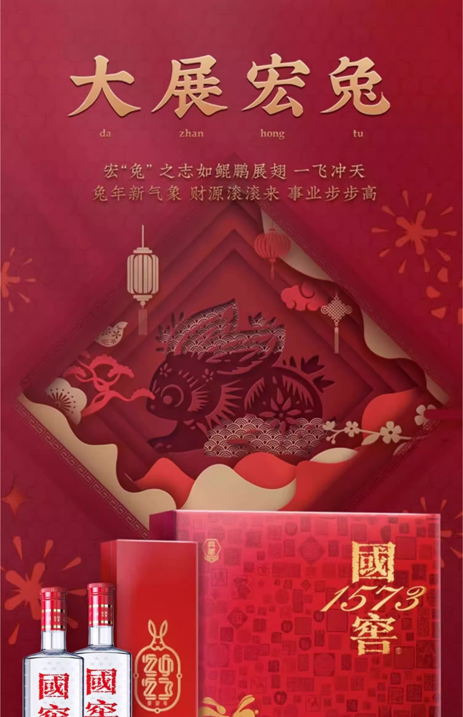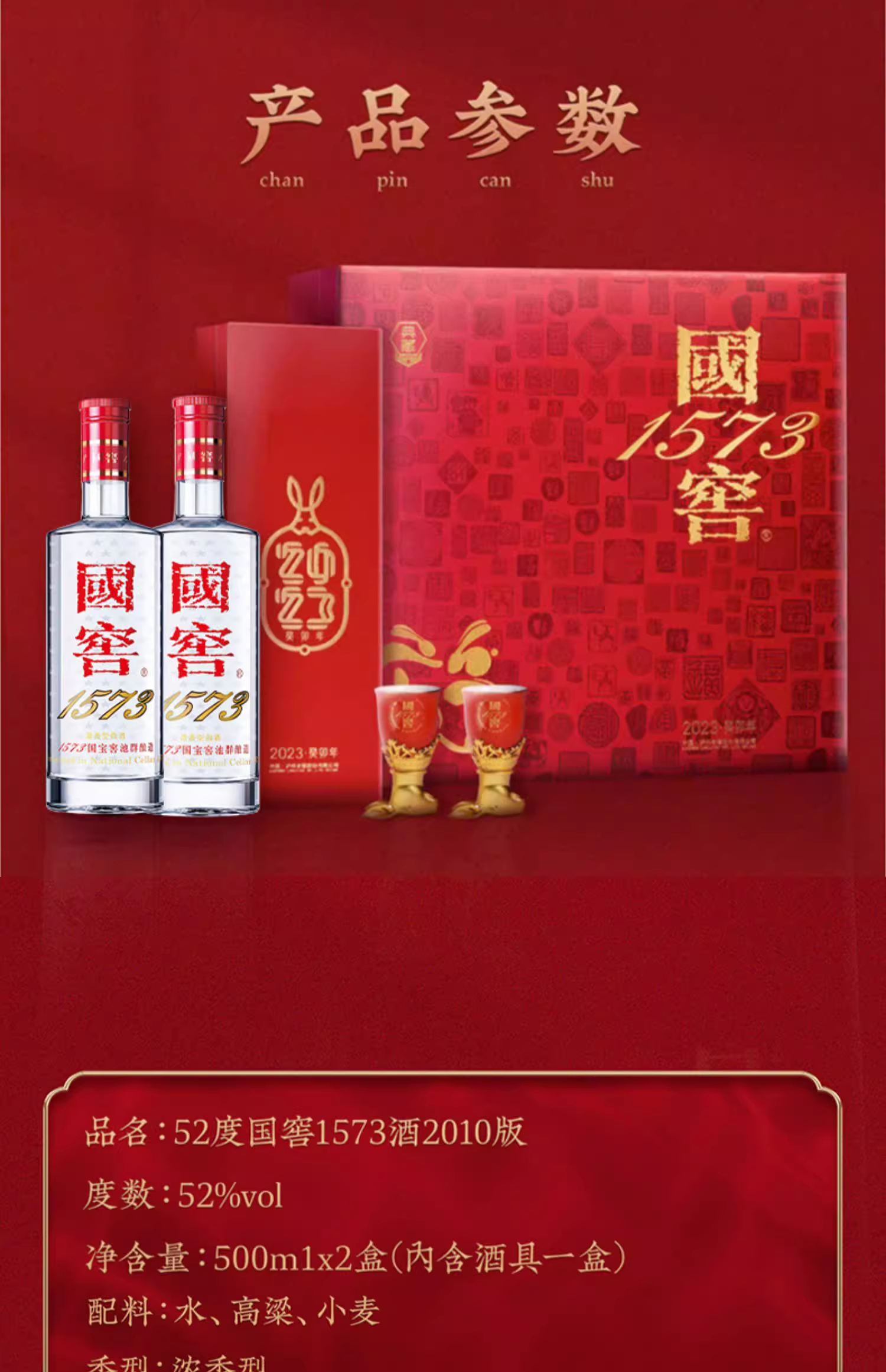 【酒厂直营】52度 国窖1573经典装 大展宏兔礼盒 500ml*2瓶 泸州老窖官方旗舰店