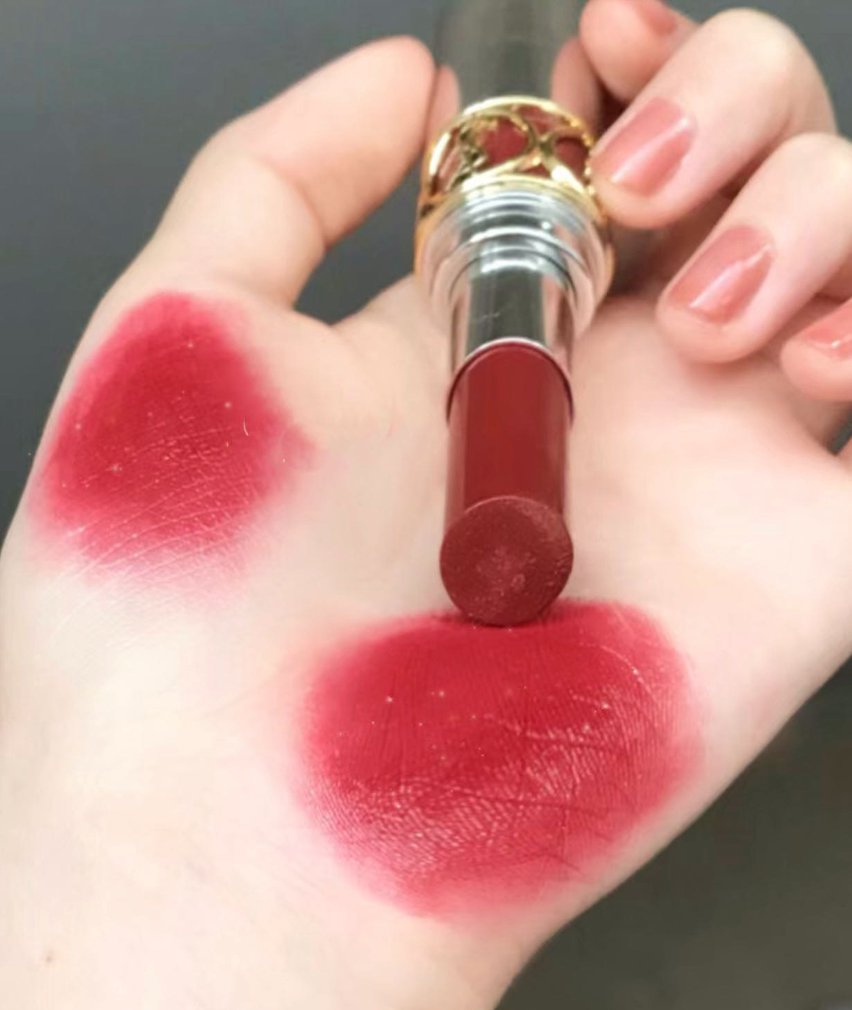 这支就是那种血色感!比水红色多了一点点棕