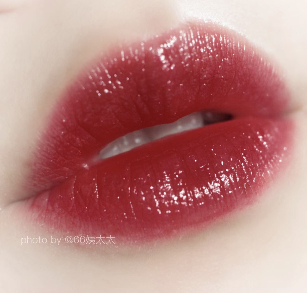 薄涂在嘴上亮晶晶的草莓硬糖似的