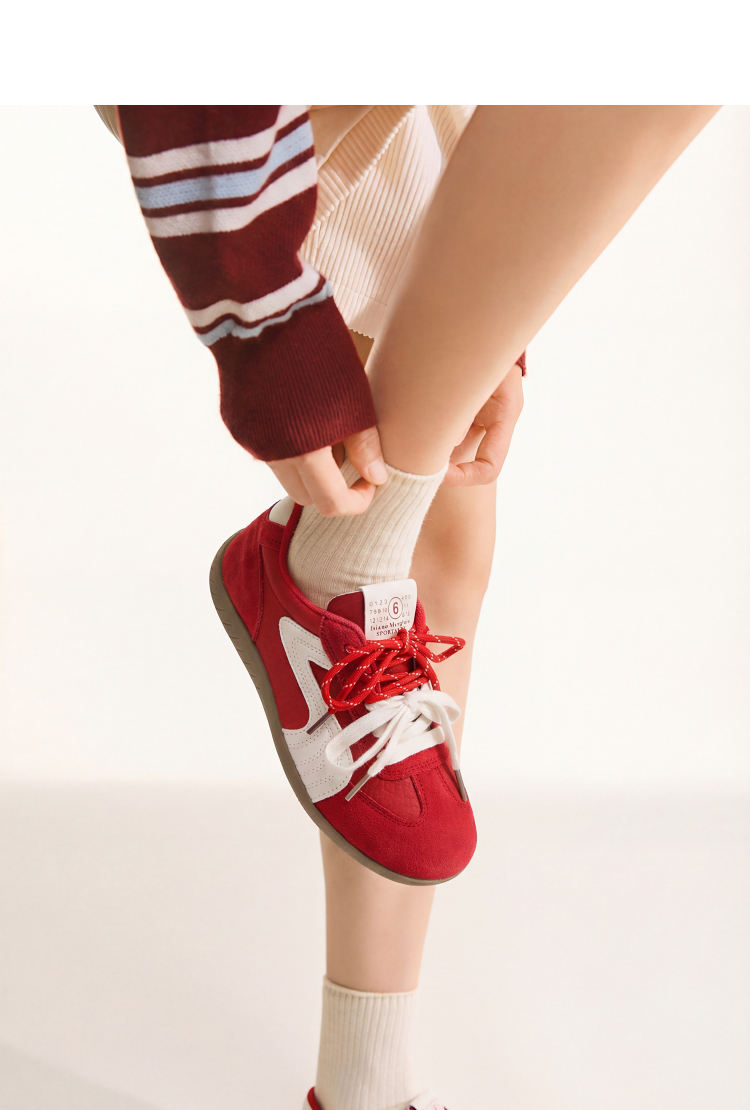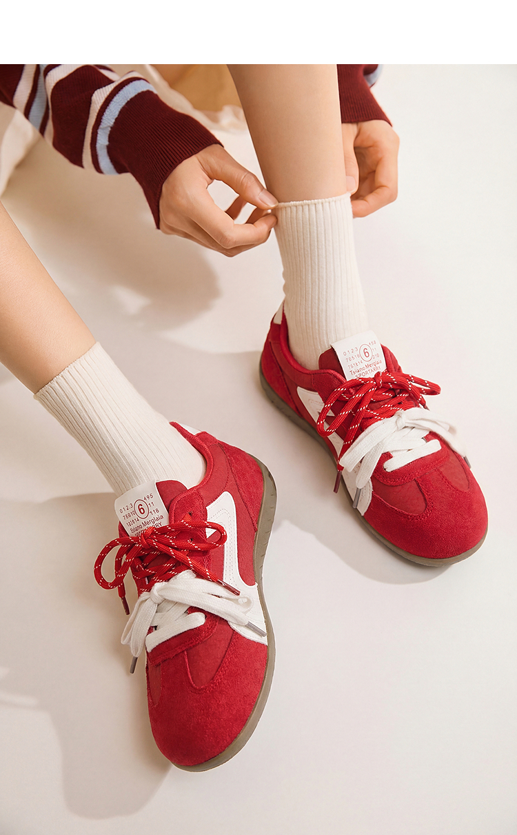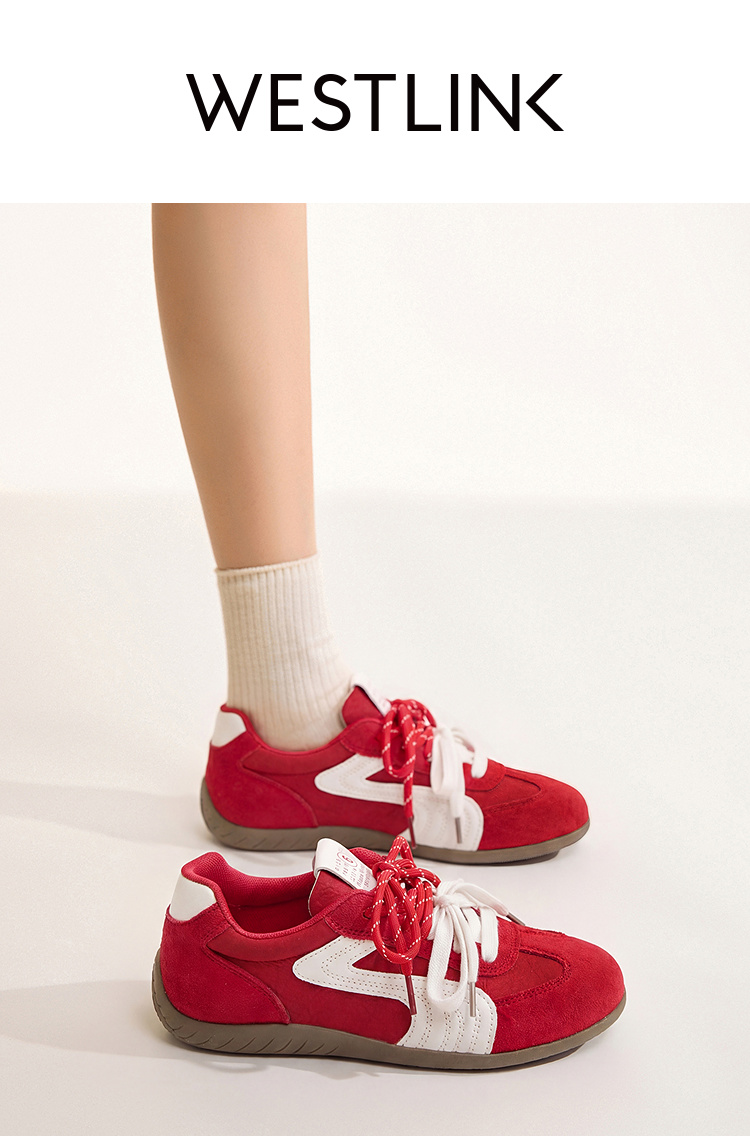 西遇红色德训鞋女2026春季新款百搭阿甘鞋本命年运动休闲轻便板鞋K0166252