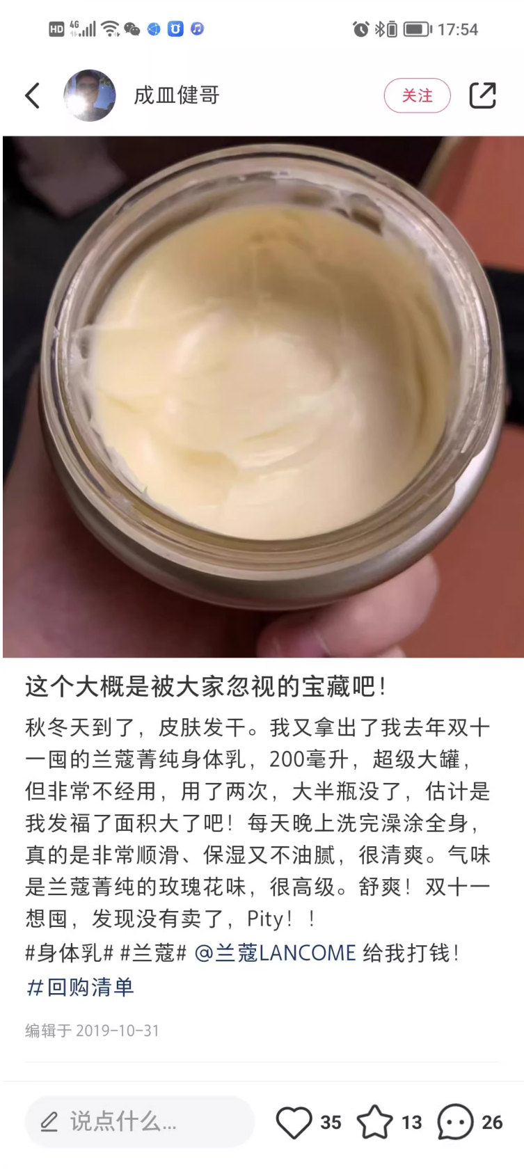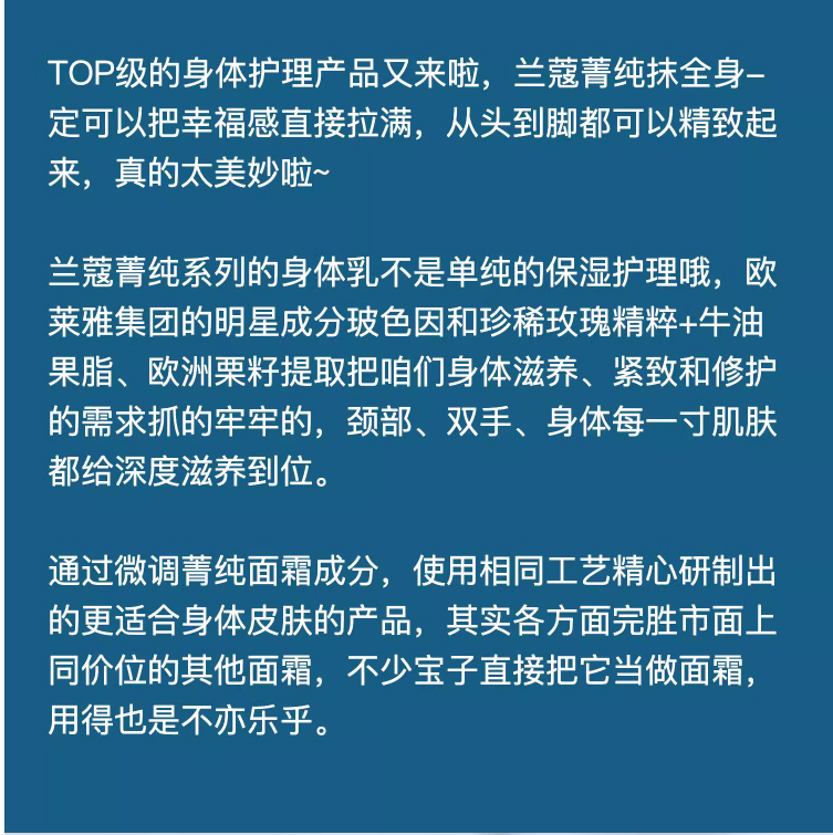【商品名称】Lancome兰蔻 菁纯滋养身体乳霜75ml
