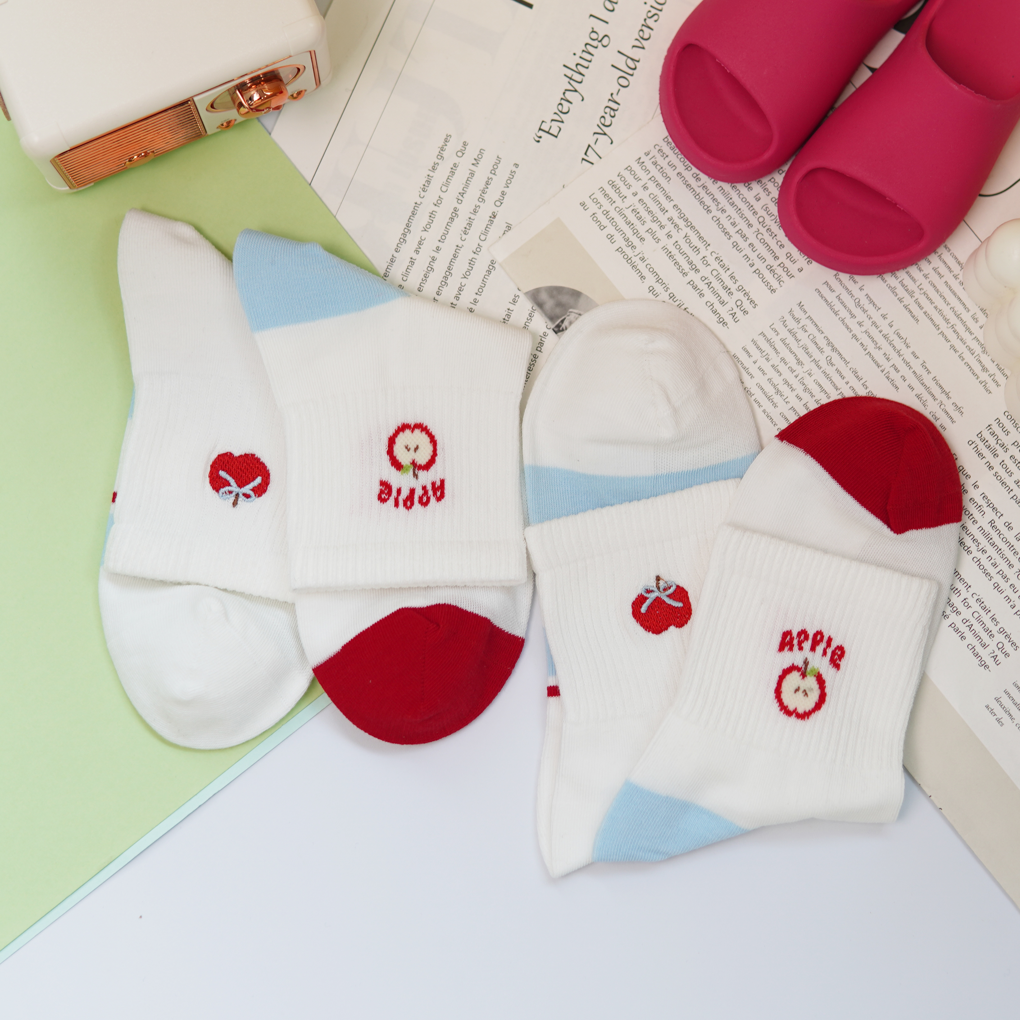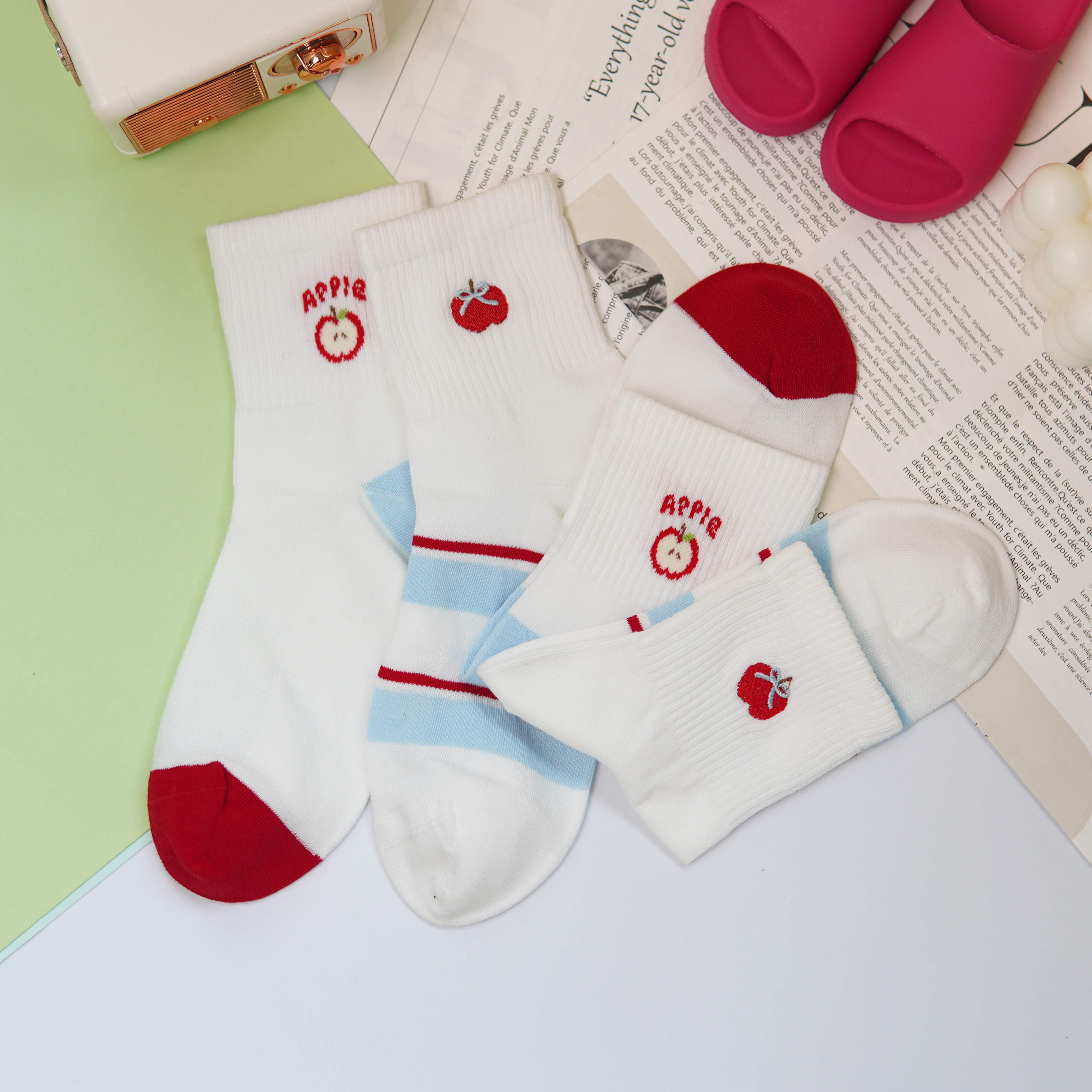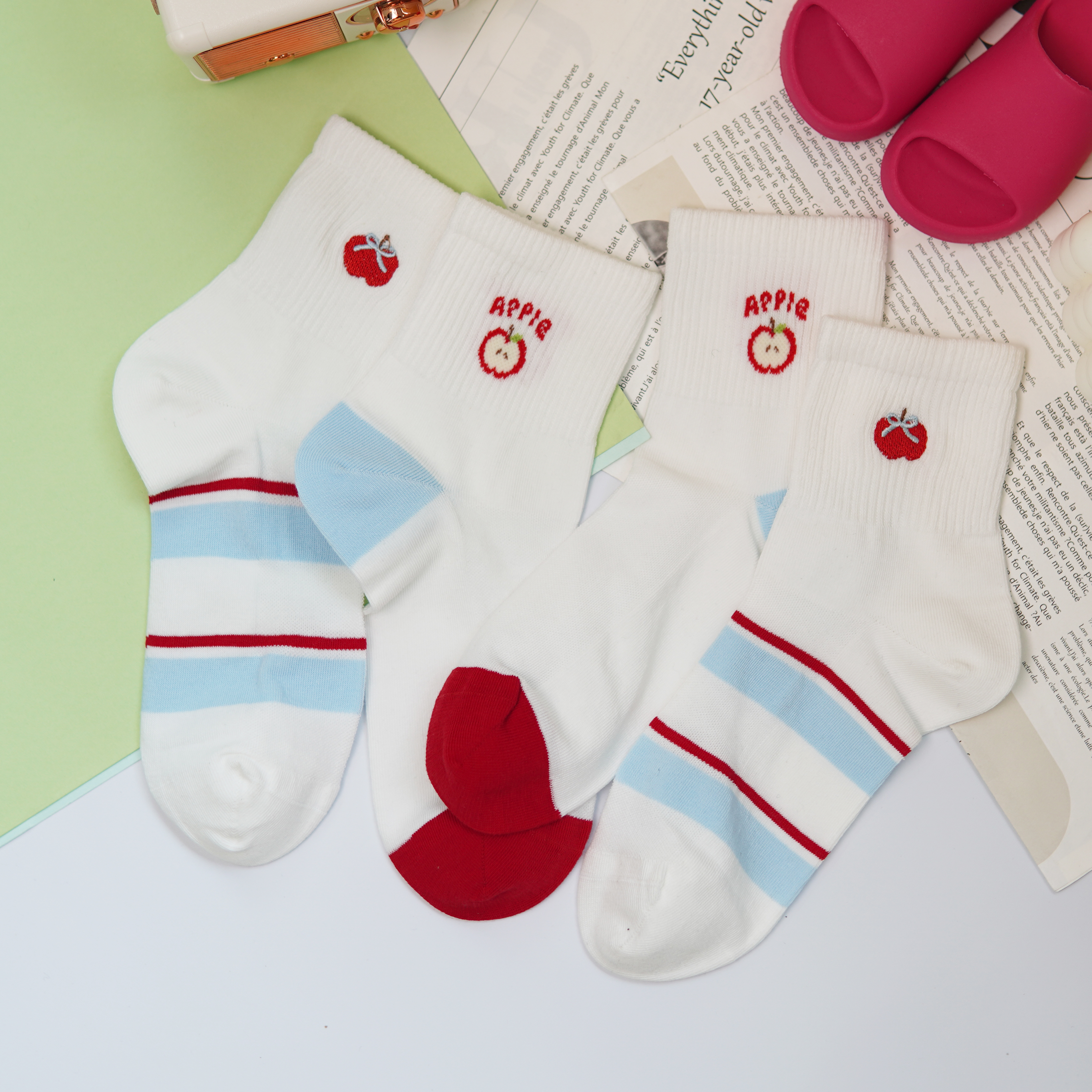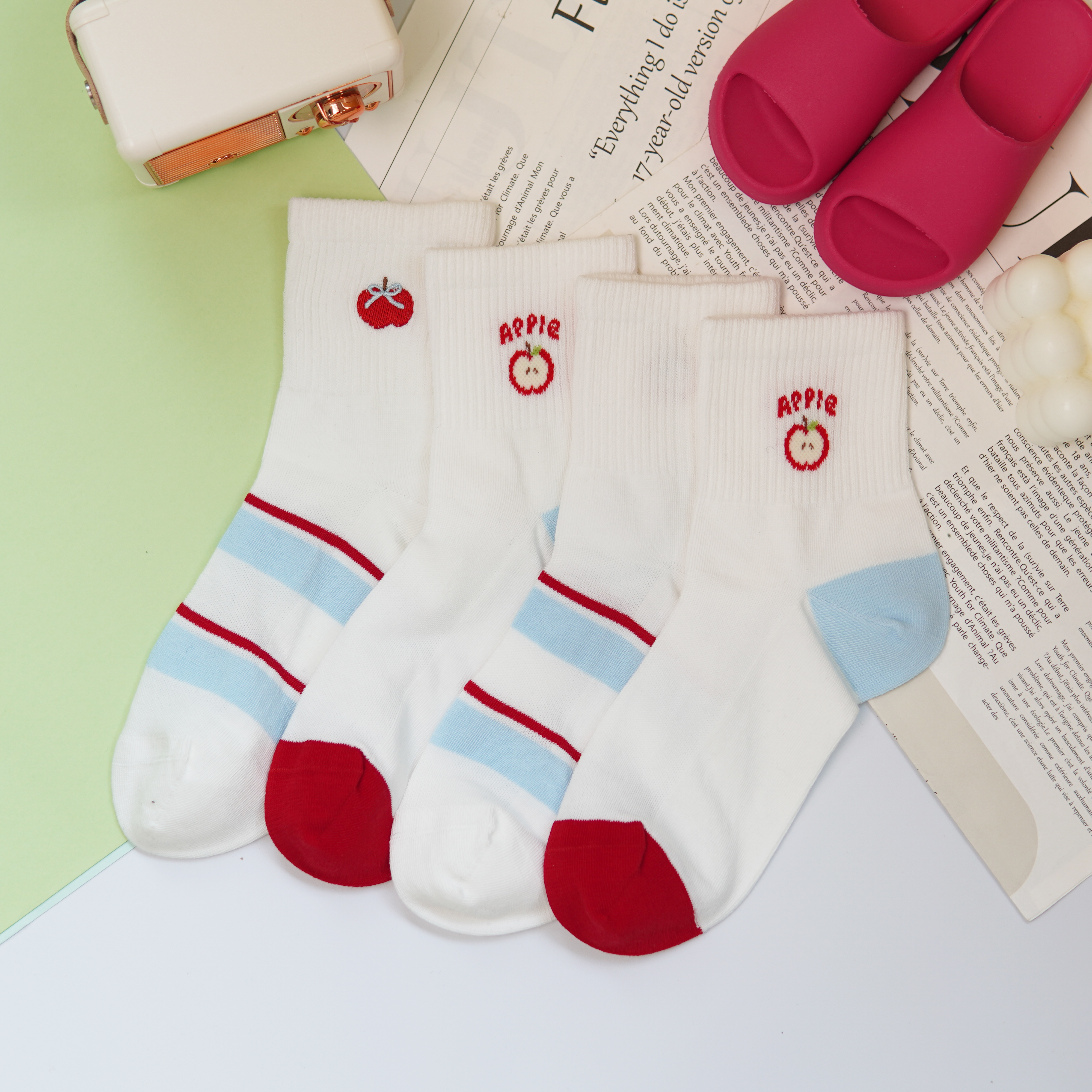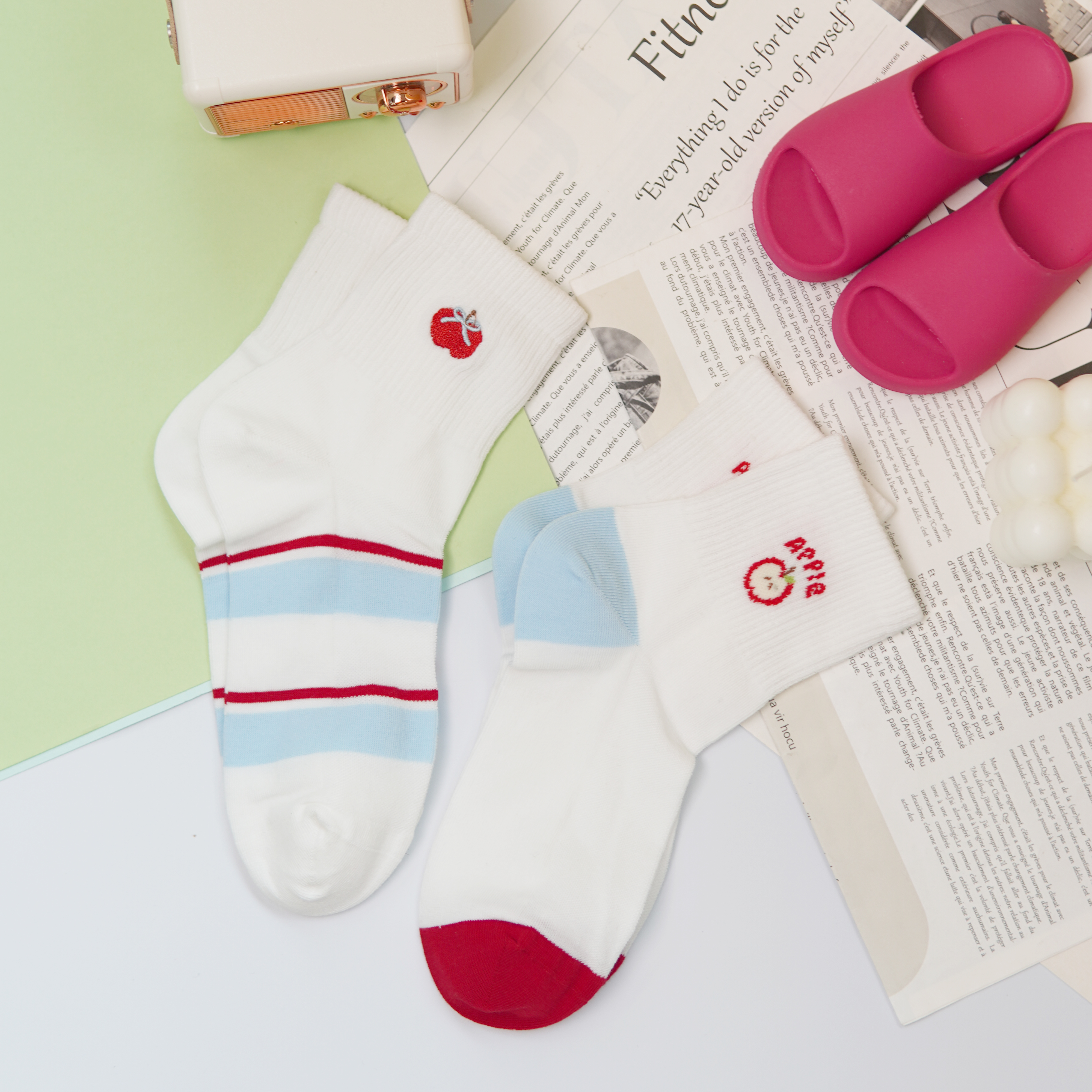 【2双装】【6双6折】女士春夏时尚袜子AB版网面中筒袜子舒适可爱女袜【2612212】