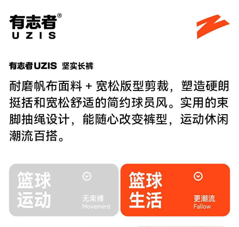 有志者UZIS篮球训练运动长裤男美式休闲直筒裤抽绳束脚工装裤坚实