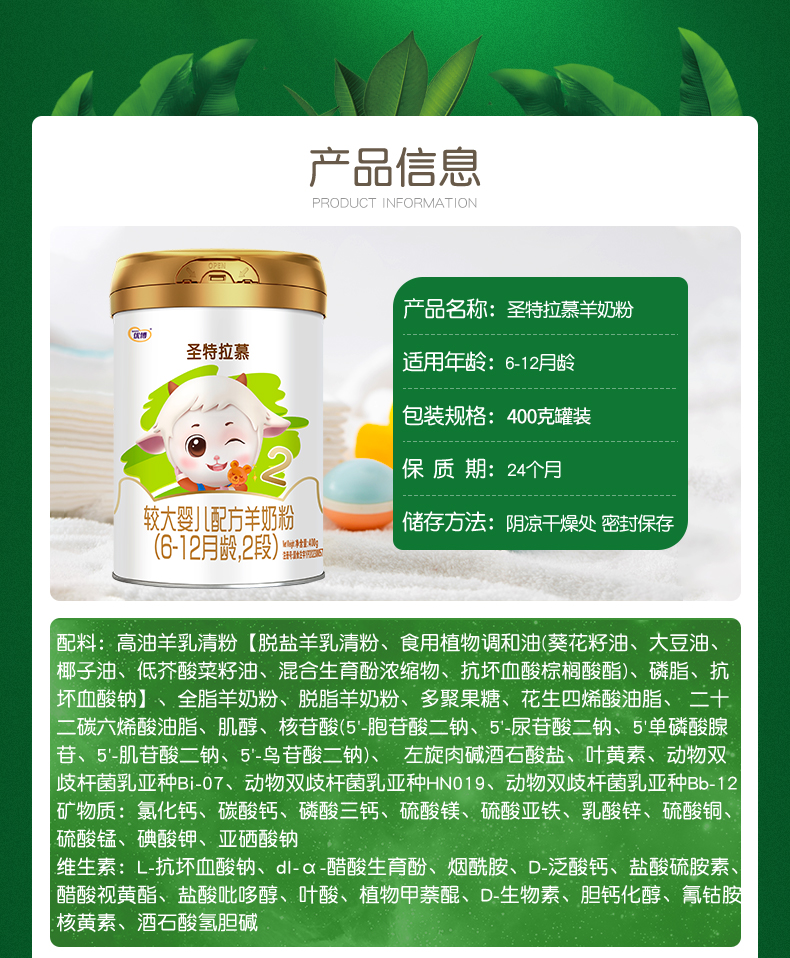 【360元新客礼包】圣特拉慕羊奶粉2段400g