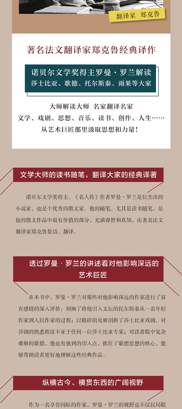 (长)诺贝尔文学奖得主罗曼·罗兰解读莎士比亚、歌德、托尔斯泰、雨果等大家,法文翻译家郑克鲁经典译作,大师解读大师,名家翻译名家:从艺术巨匠那里汲取思想和力量!