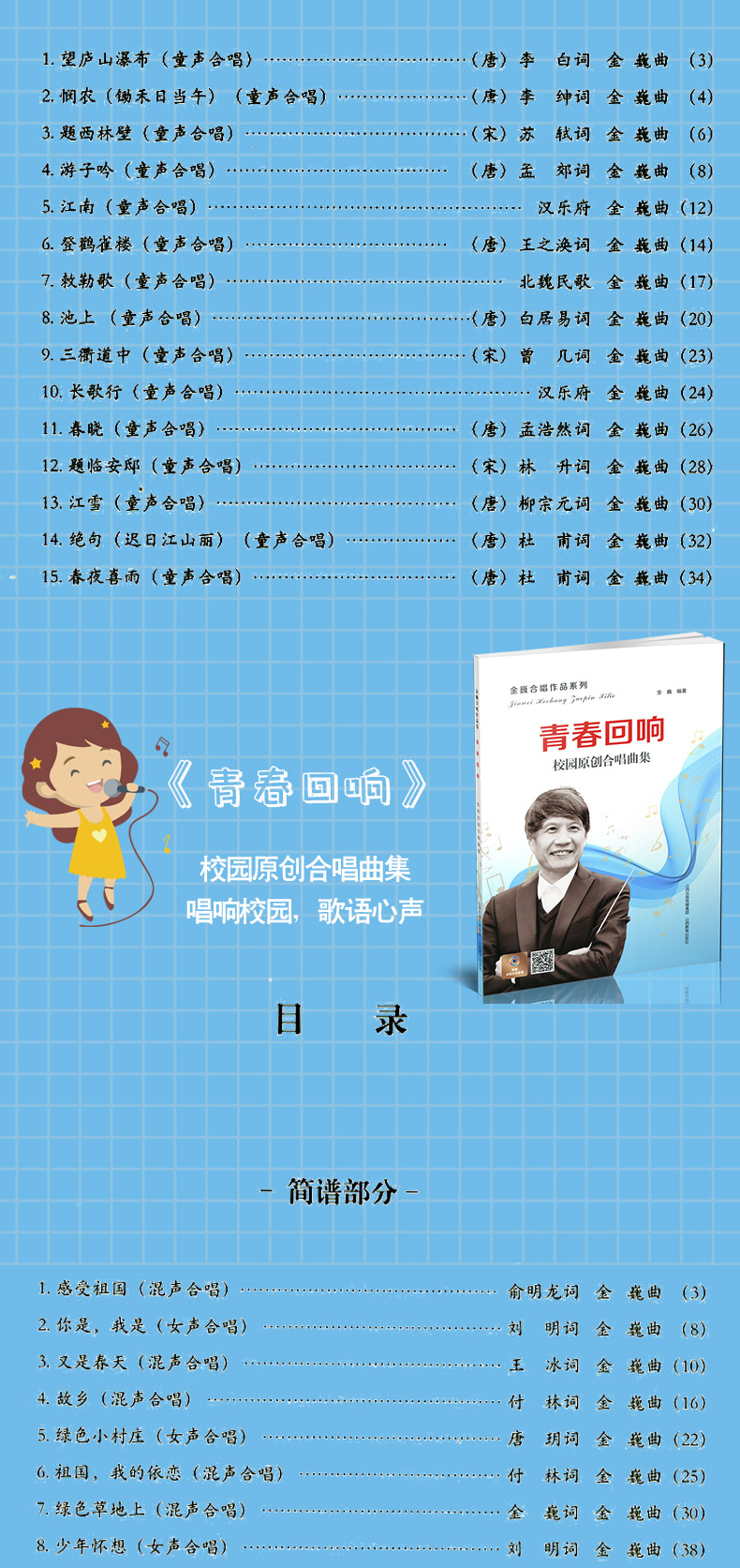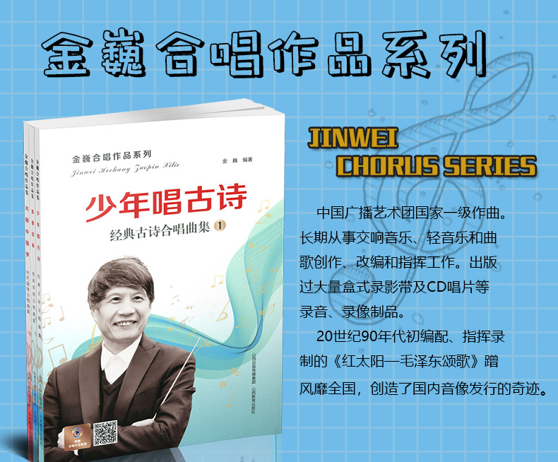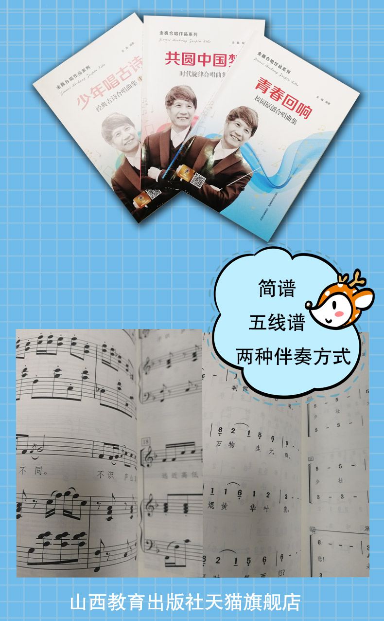 正版 包邮 三册套装 金巍合唱作品系列 青春回响 少年唱古诗 共圆中国梦 校园原创合唱曲集 经典古诗合唱曲集 时代旋律合唱曲集