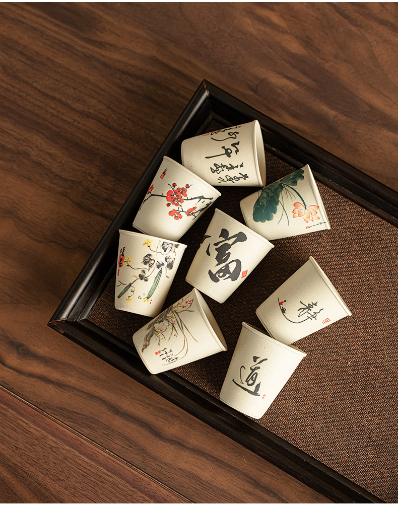 【捡漏价!复古雅韵,品茗之选】粗陶花鸟茶杯套装🎋传承千年茶道之美,8杯礼盒装,一见倾心! 主人杯品茗杯客杯 礼品套装