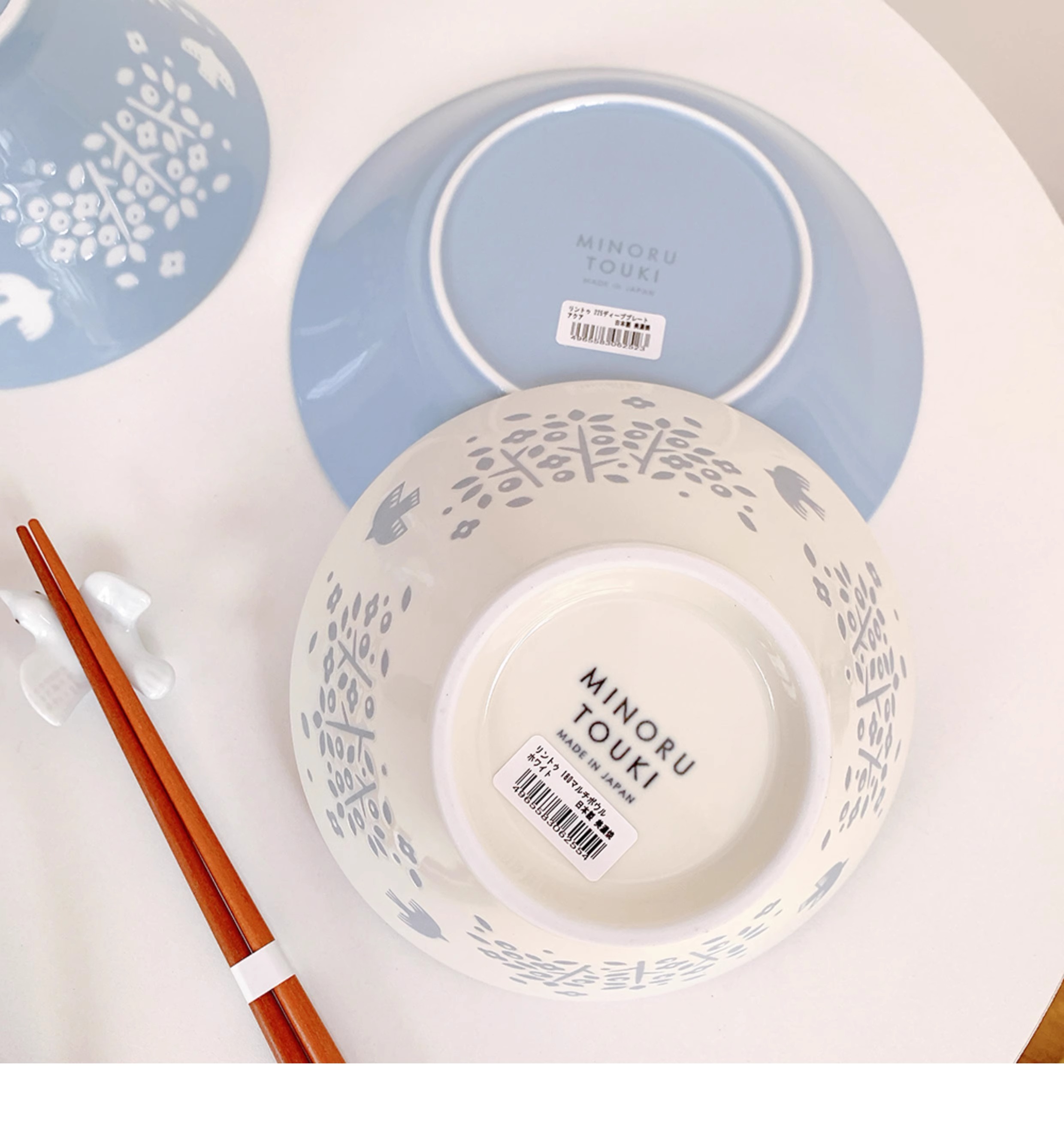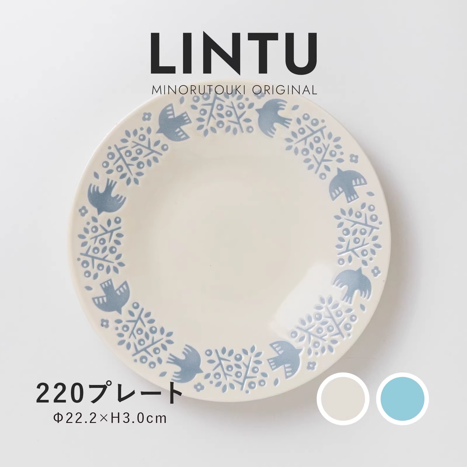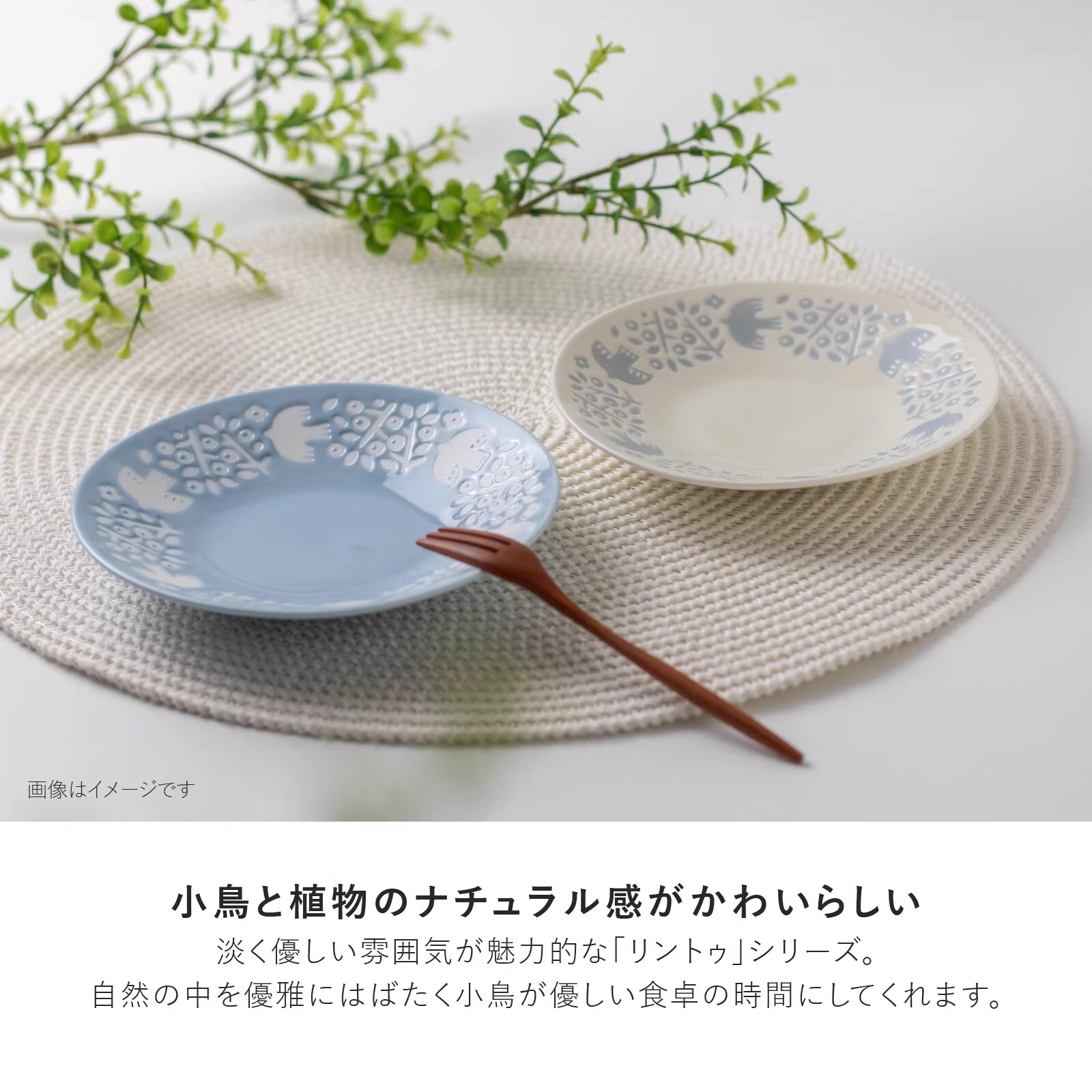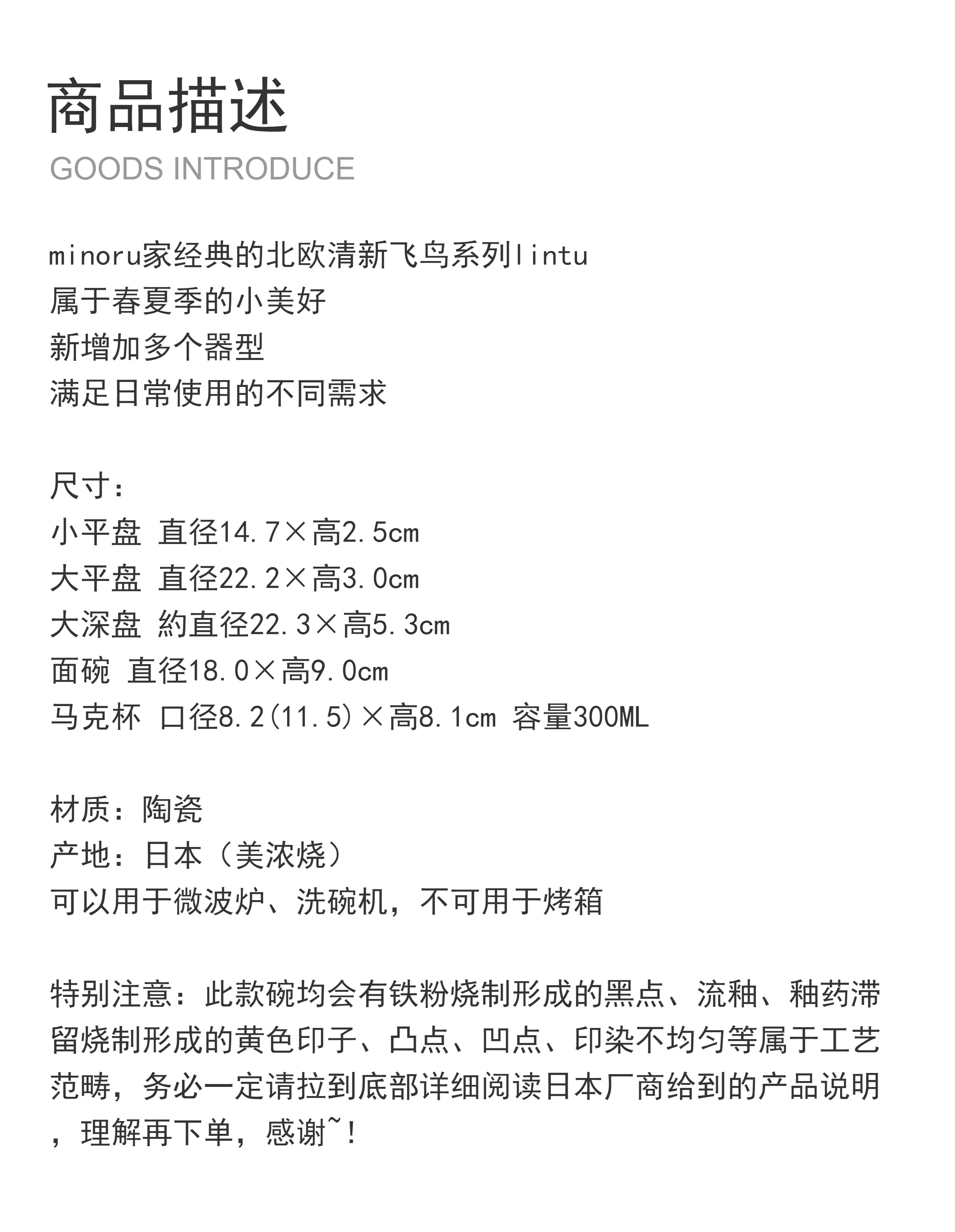 日本进口LINTU美浓烧北欧森系飞鸟果实陶瓷餐盘菜盘子清新甜品碟飞鸟白色蓝色散件