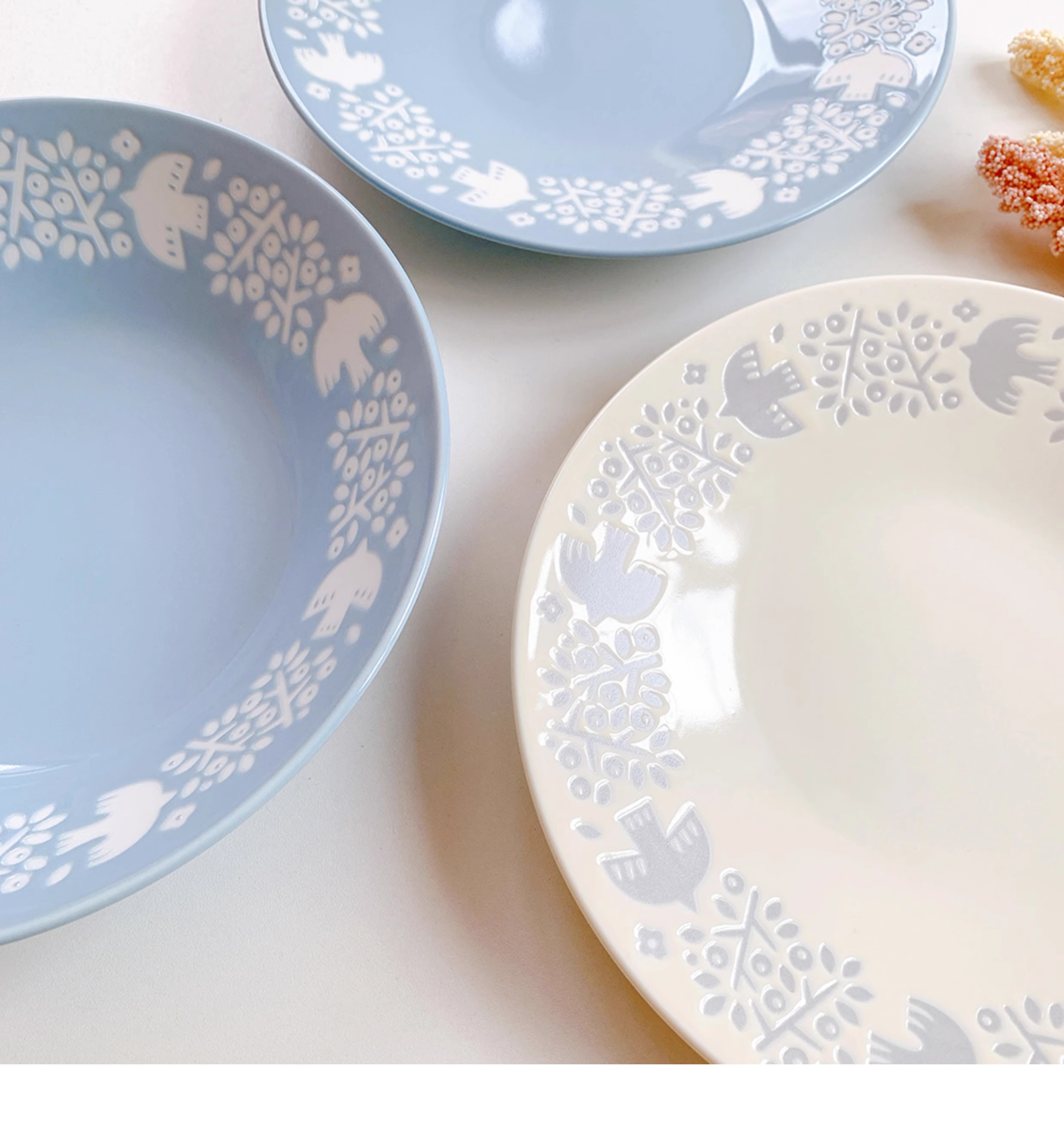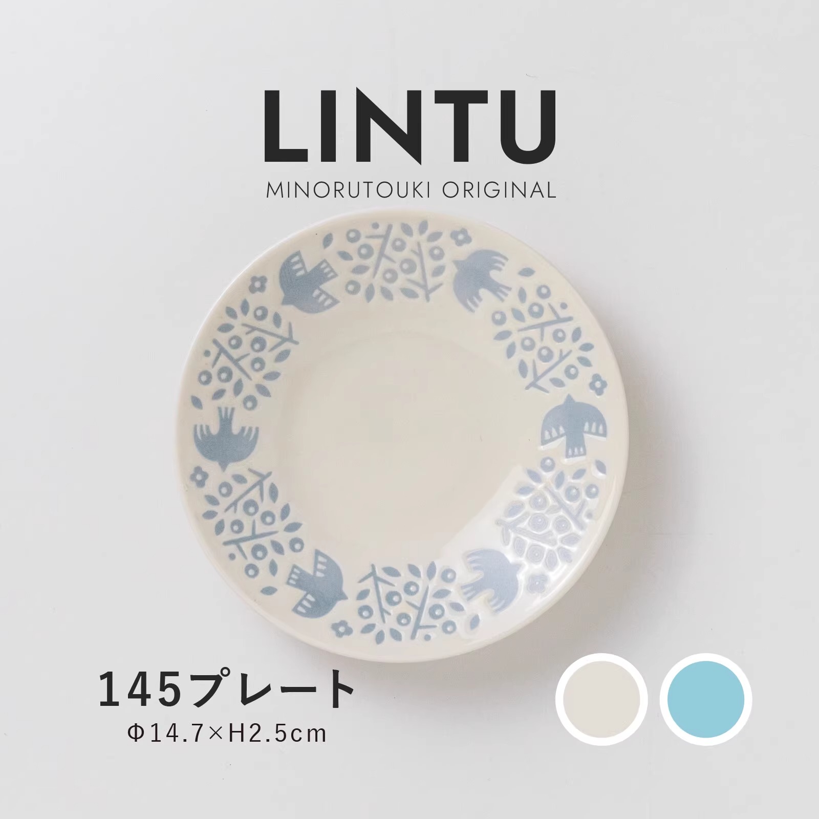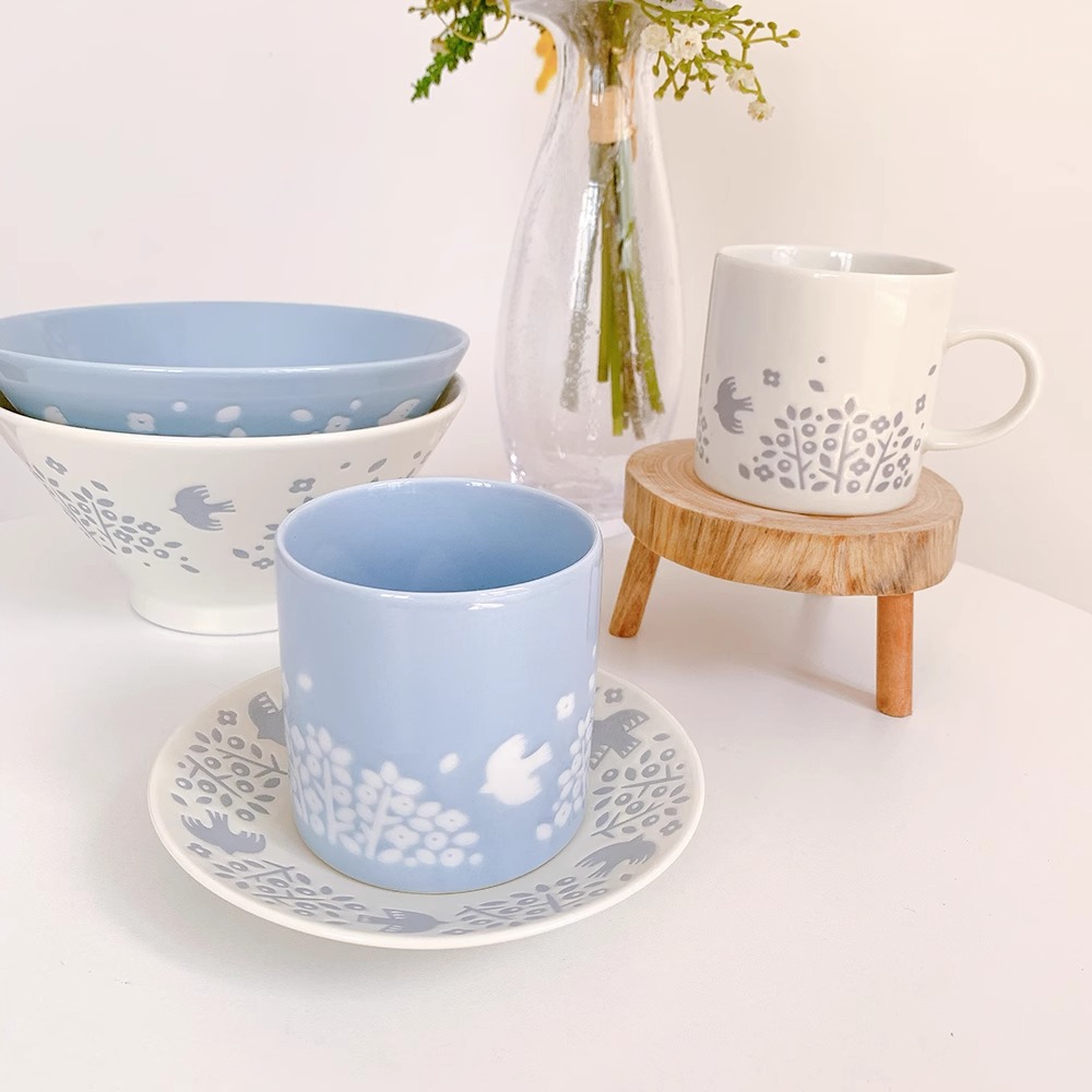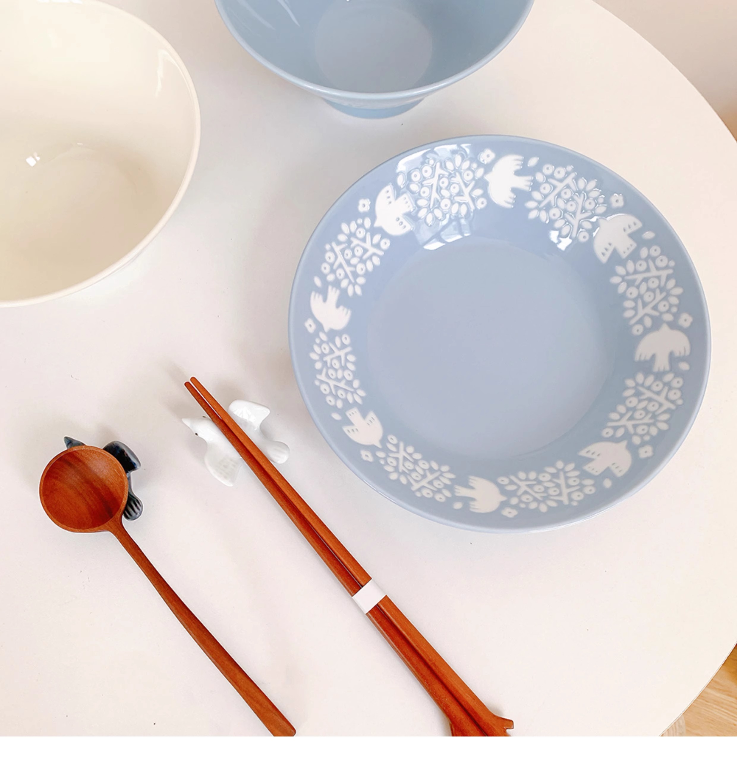 日本进口LINTU美浓烧北欧森系飞鸟果实陶瓷餐盘菜盘子清新甜品碟飞鸟白色蓝色散件