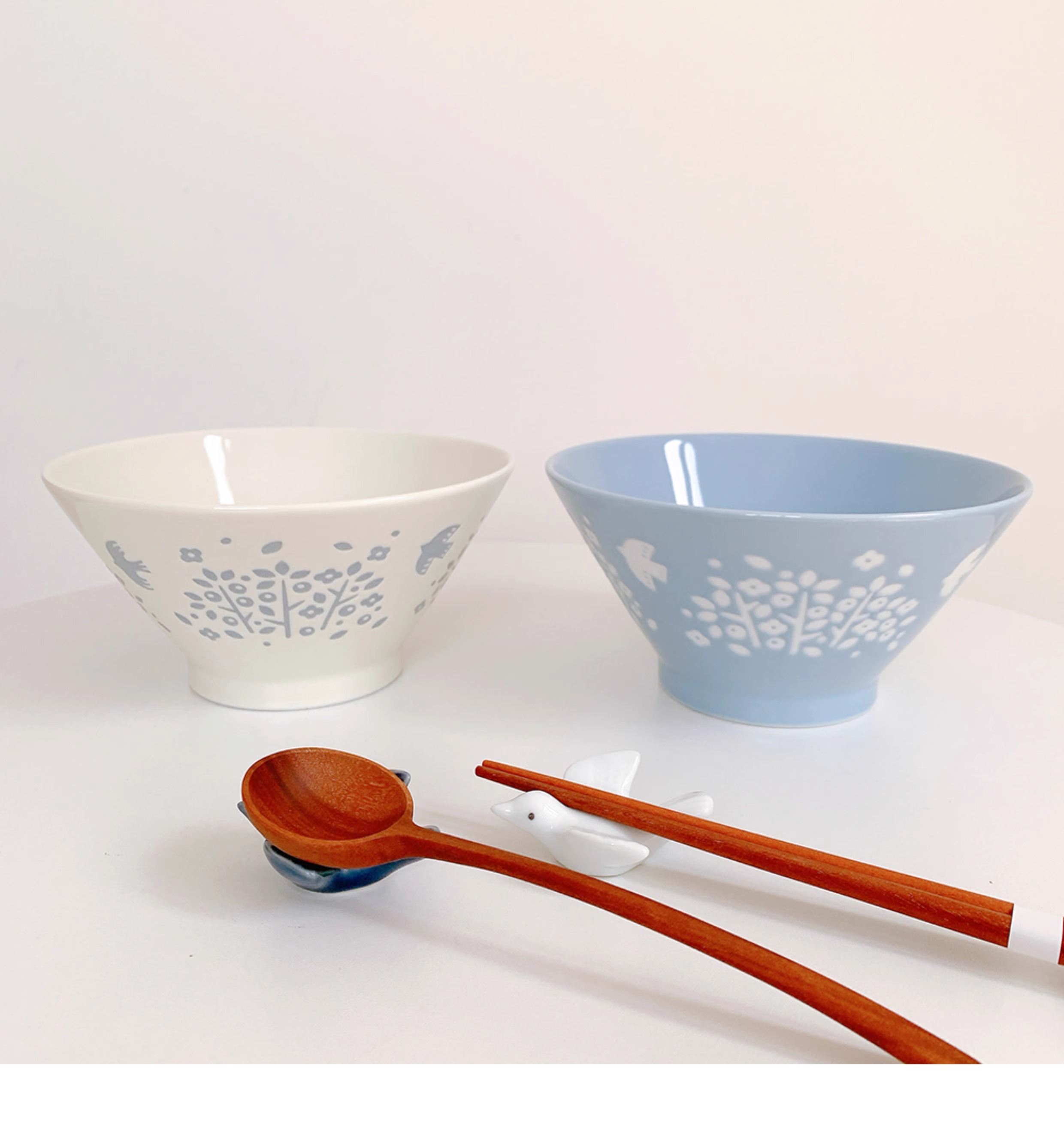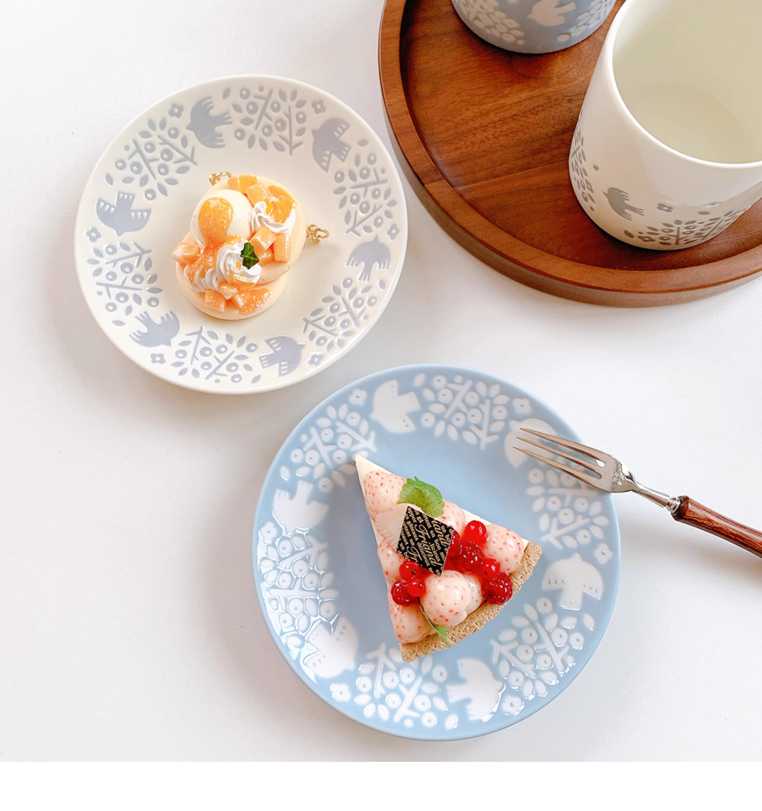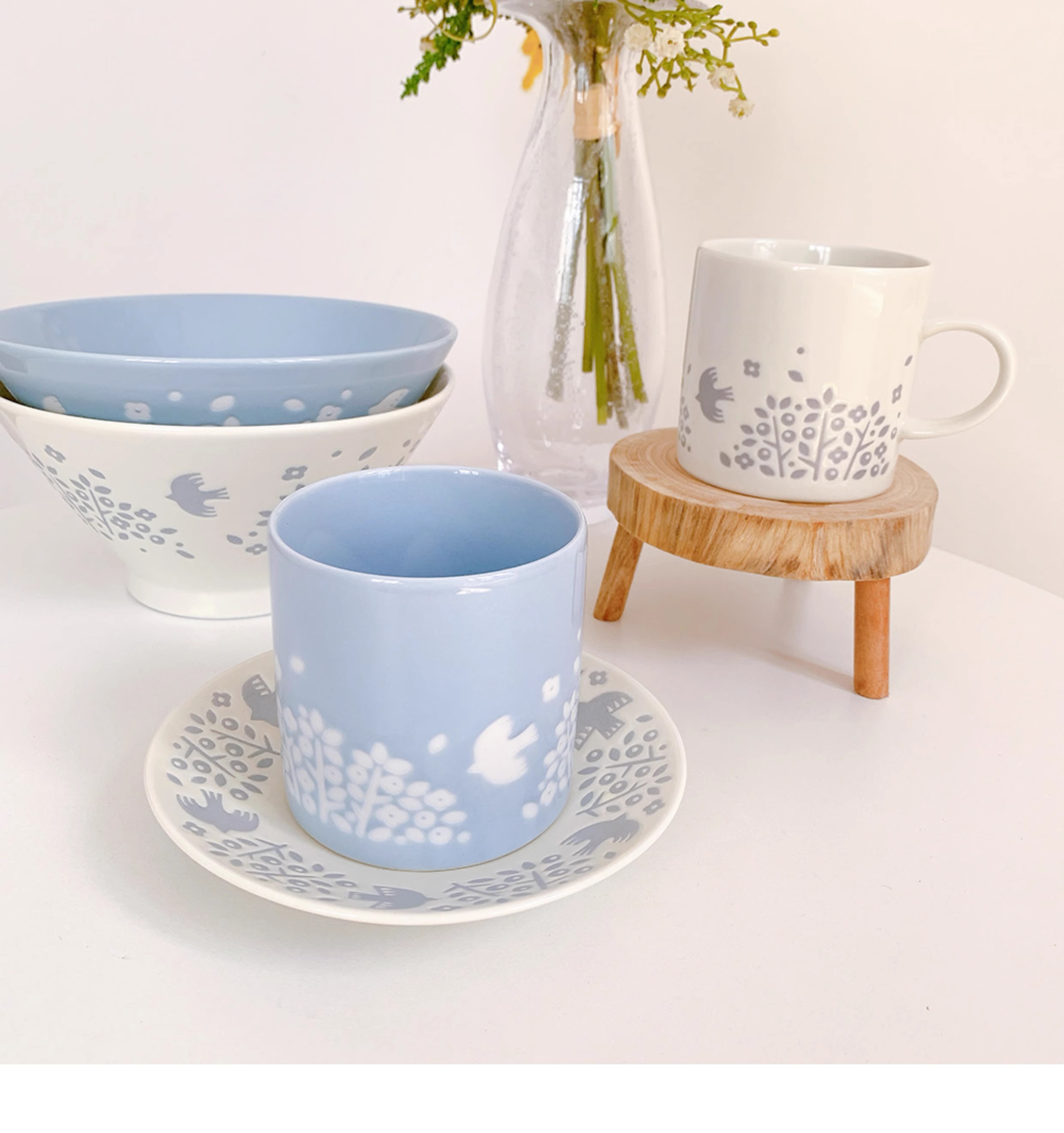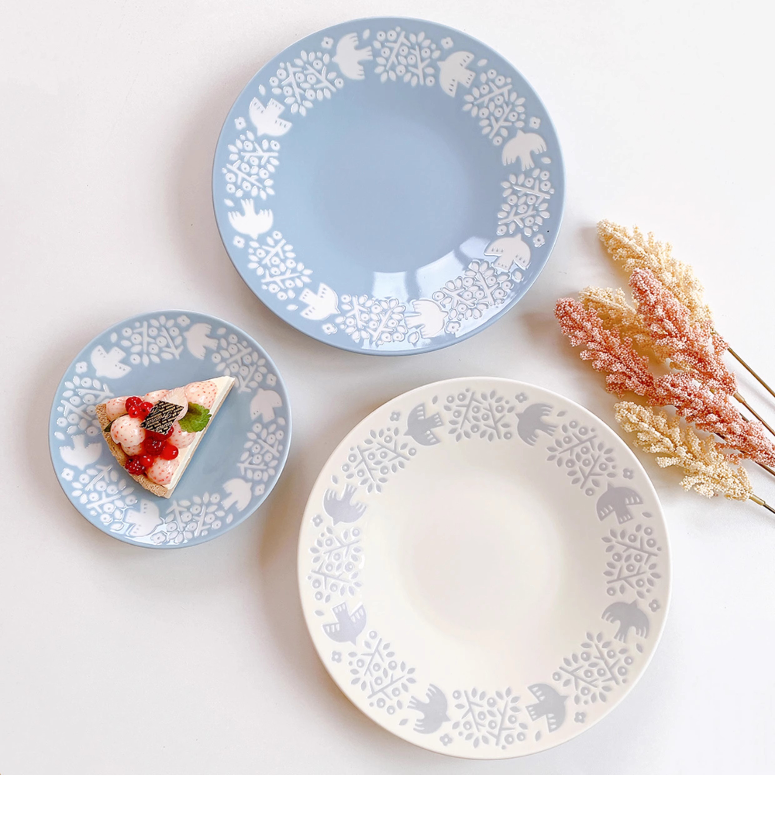 日本进口LINTU美浓烧北欧森系飞鸟果实陶瓷餐盘菜盘子清新甜品碟飞鸟白色蓝色散件