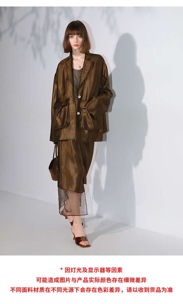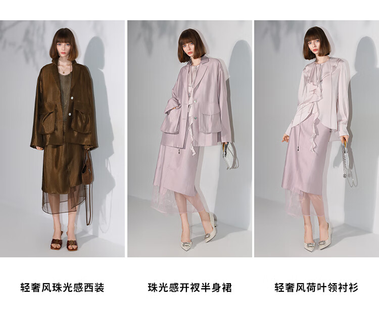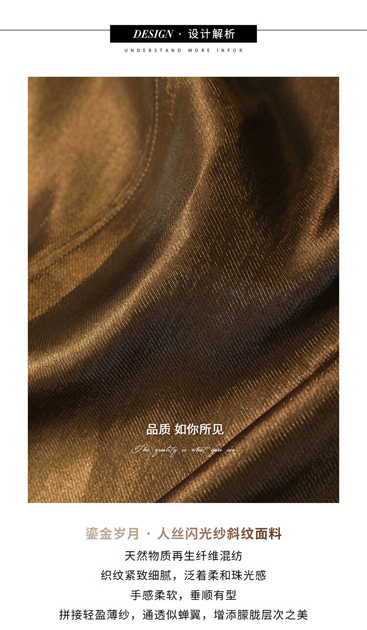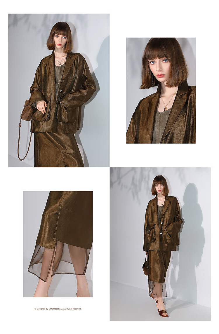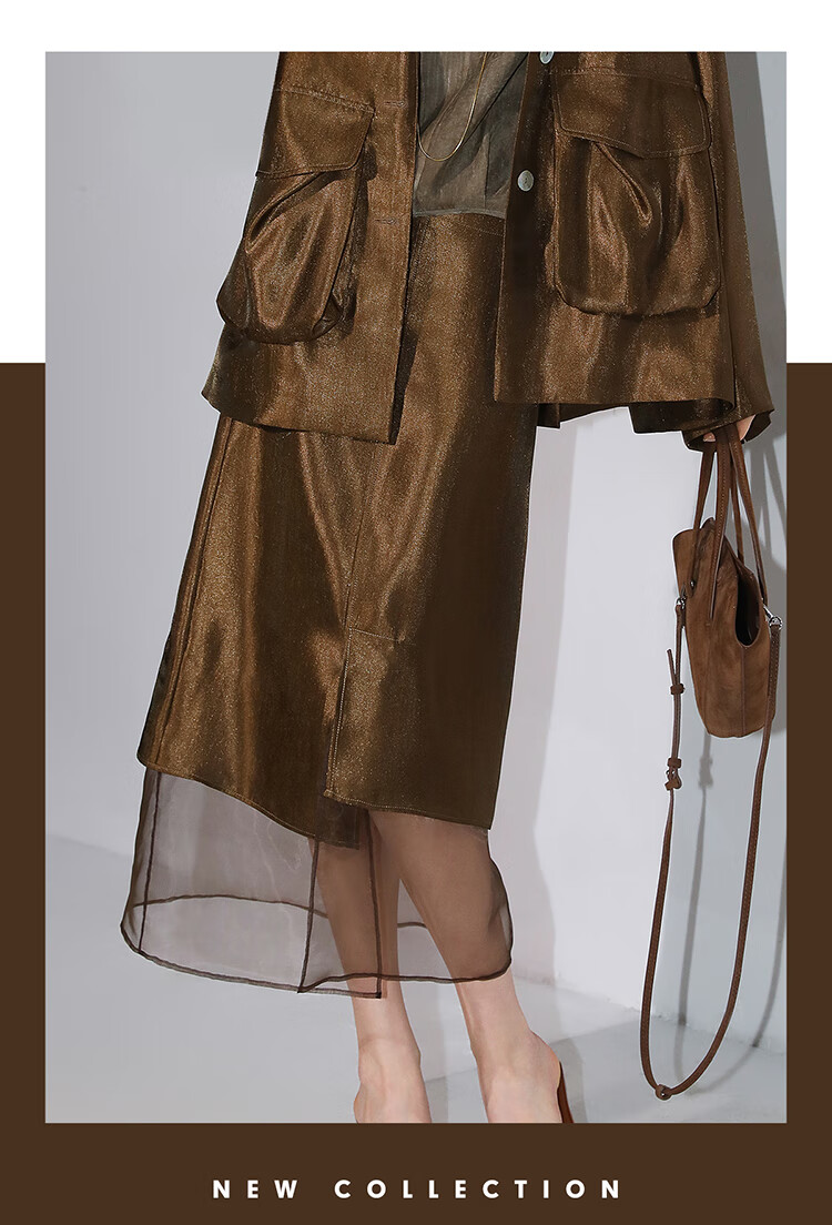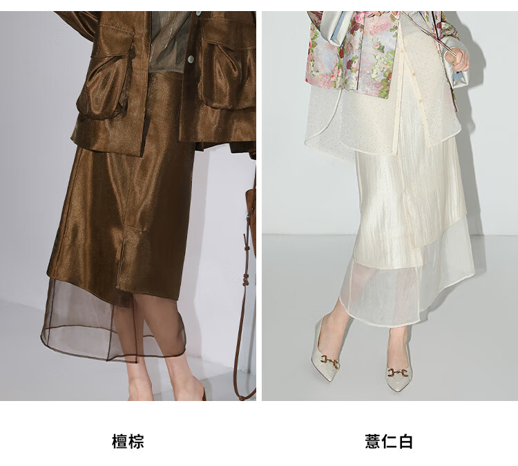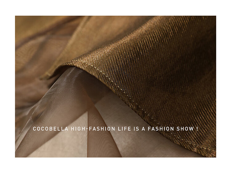 COCOBELLA奢感珠光华丽人丝半身裙网纱拼接不规则开叉裙装HS3040-3
