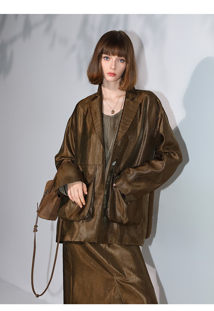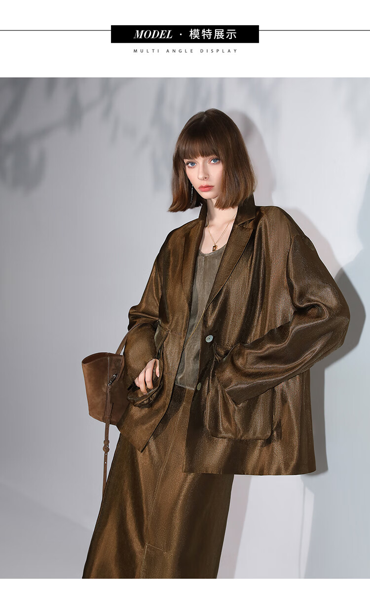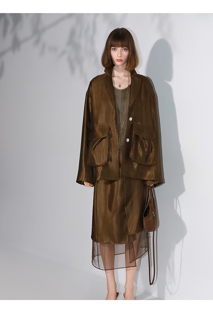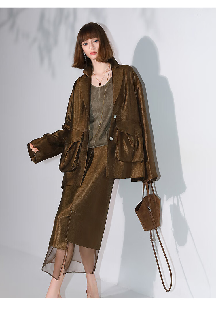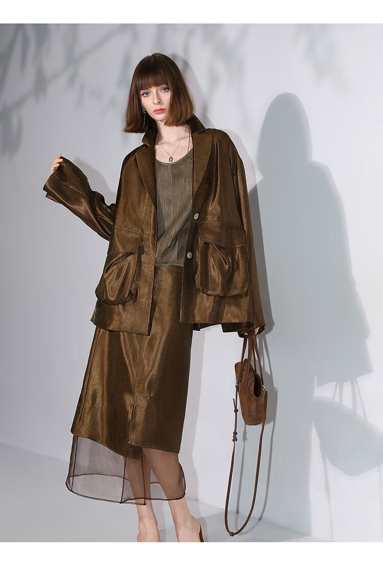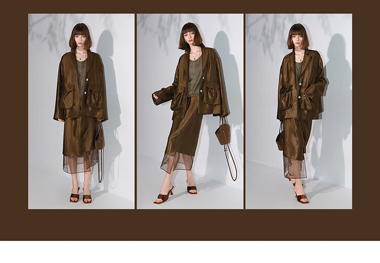 COCOBELLA奢感珠光华丽人丝半身裙网纱拼接不规则开叉裙装HS3040-3