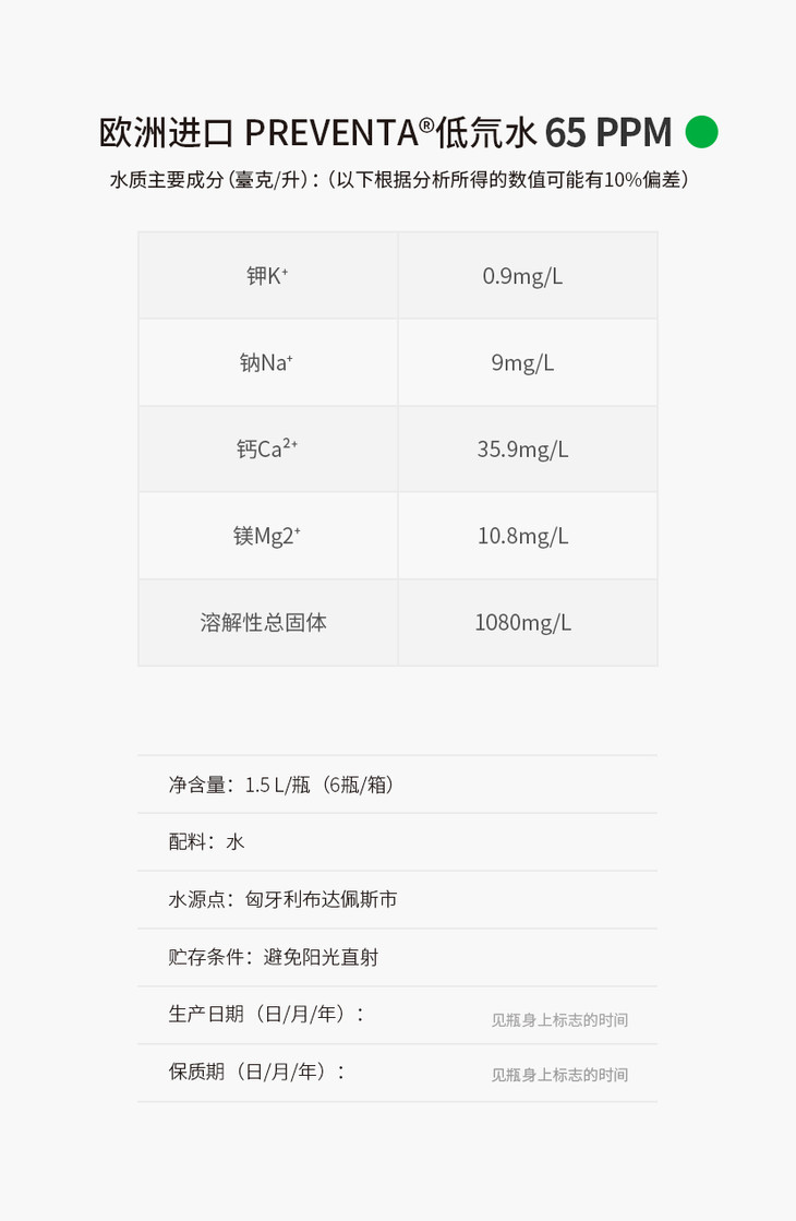 PREVENTA低氘水 65PPM 1.5L*6瓶/箱