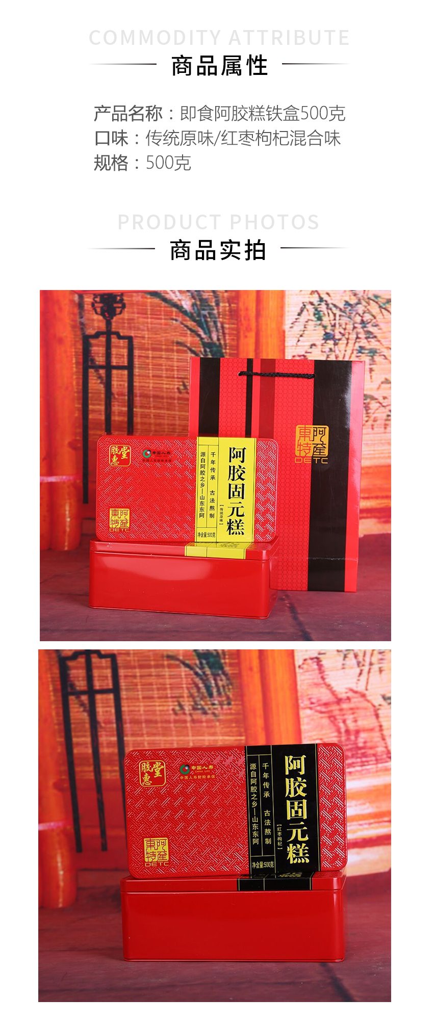 【每日食养】即食阿胶糕铁盒500克 传统原味/红枣枸杞混合味