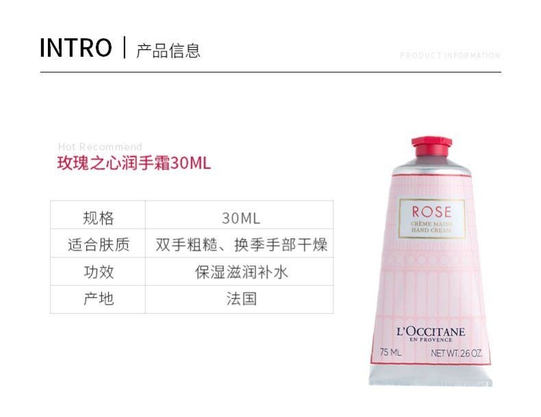 欧舒丹玫瑰皇后护手霜,质地厚薄适中,滋润不粘腻,令双手滋润嫩滑,散发玫瑰清香~