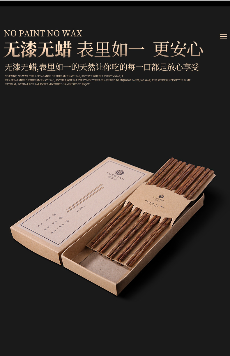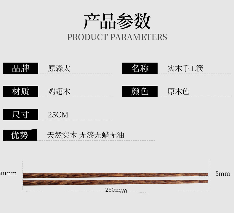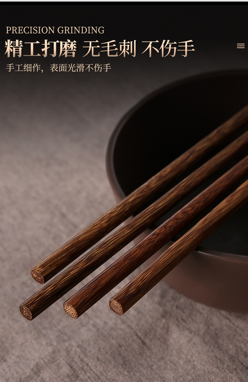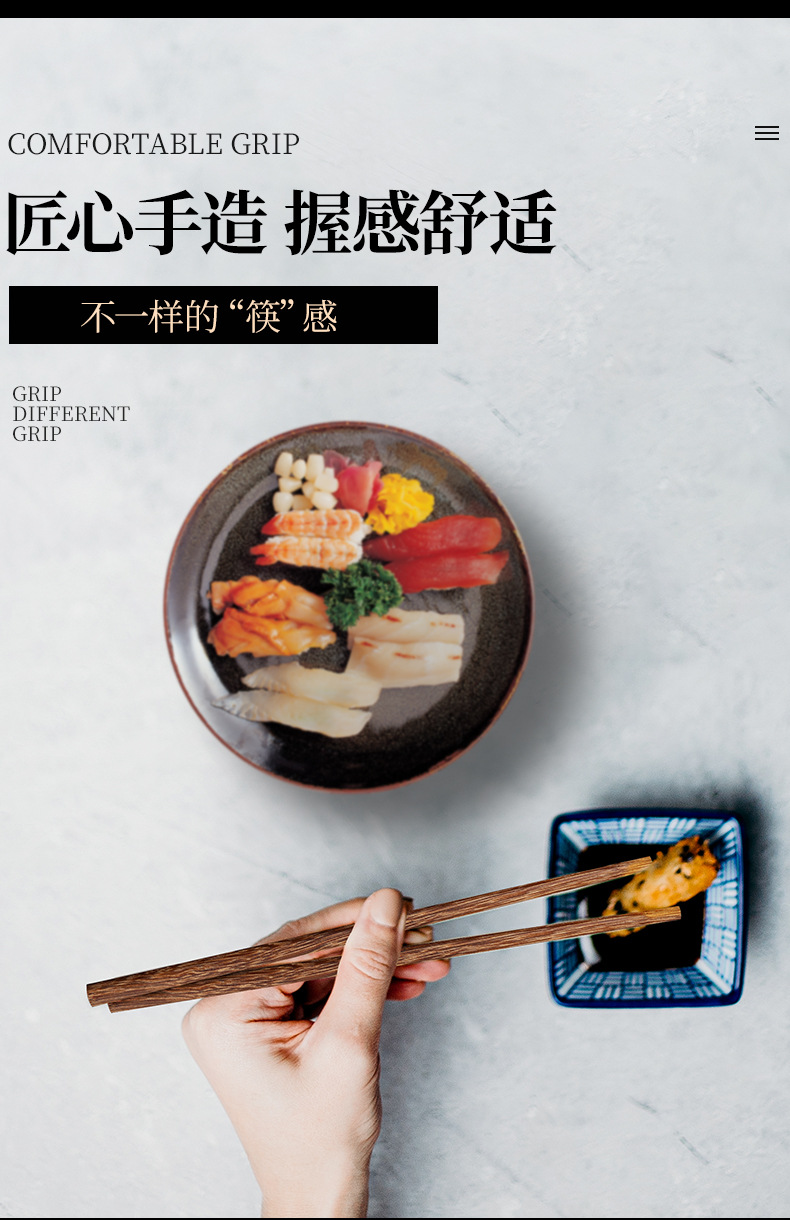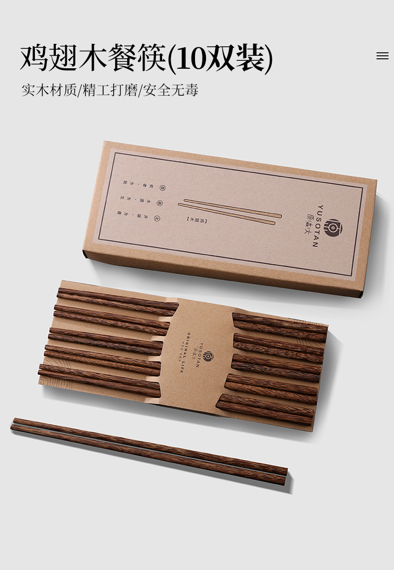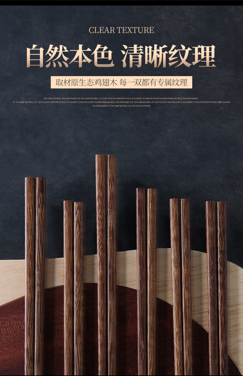 【无漆无蜡筷子】原森太日式鸡翅木筷子 10双装家用实木无漆无蜡儿童筷子