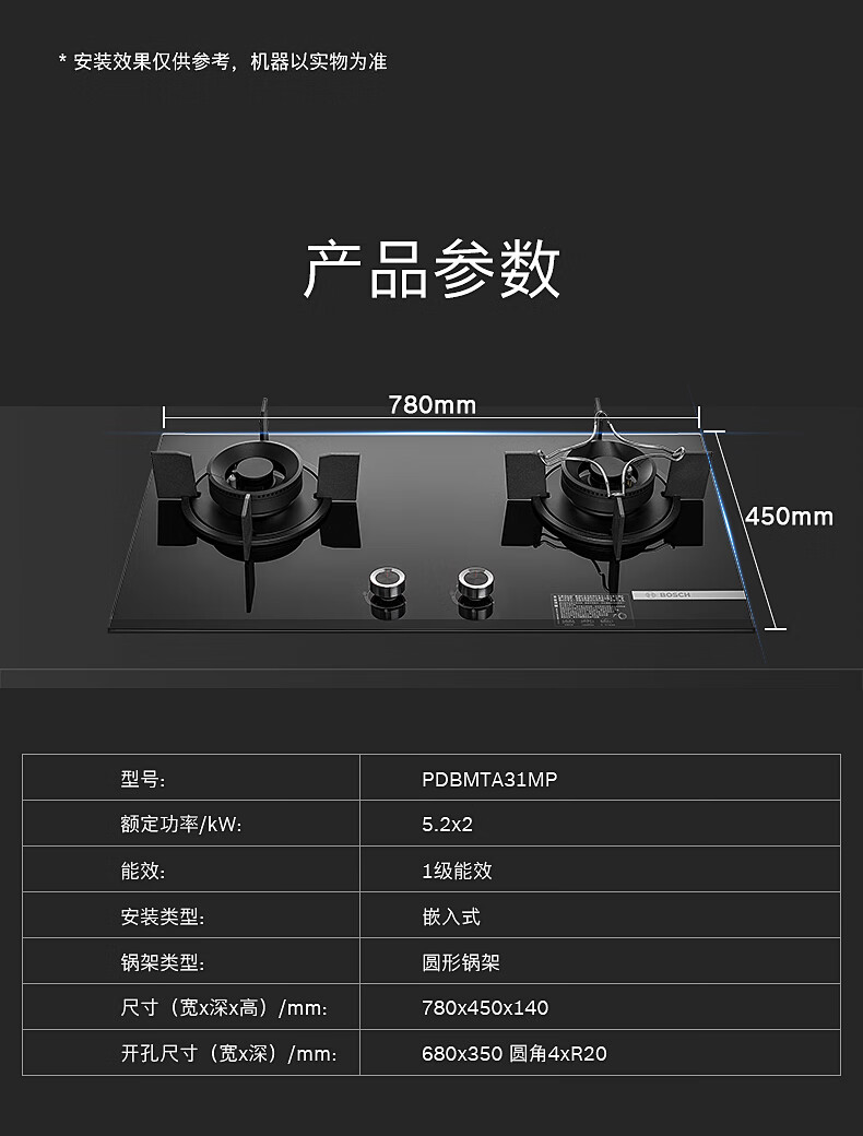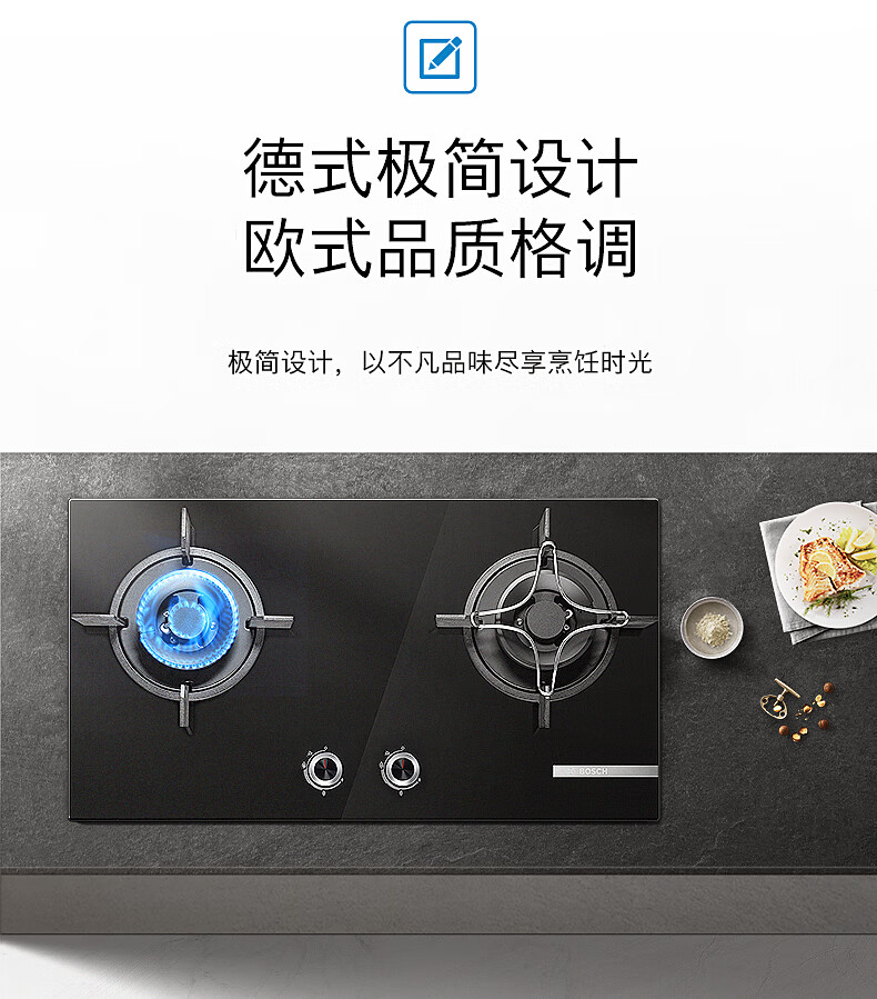 博世(BOSCH)4系5.2kW大火力 家用嵌入式双灶头燃气灶 秒速点火 易清洁灶头 安全熄火保护 玻璃面板 一级能效 天然气 PDBMTA31MP