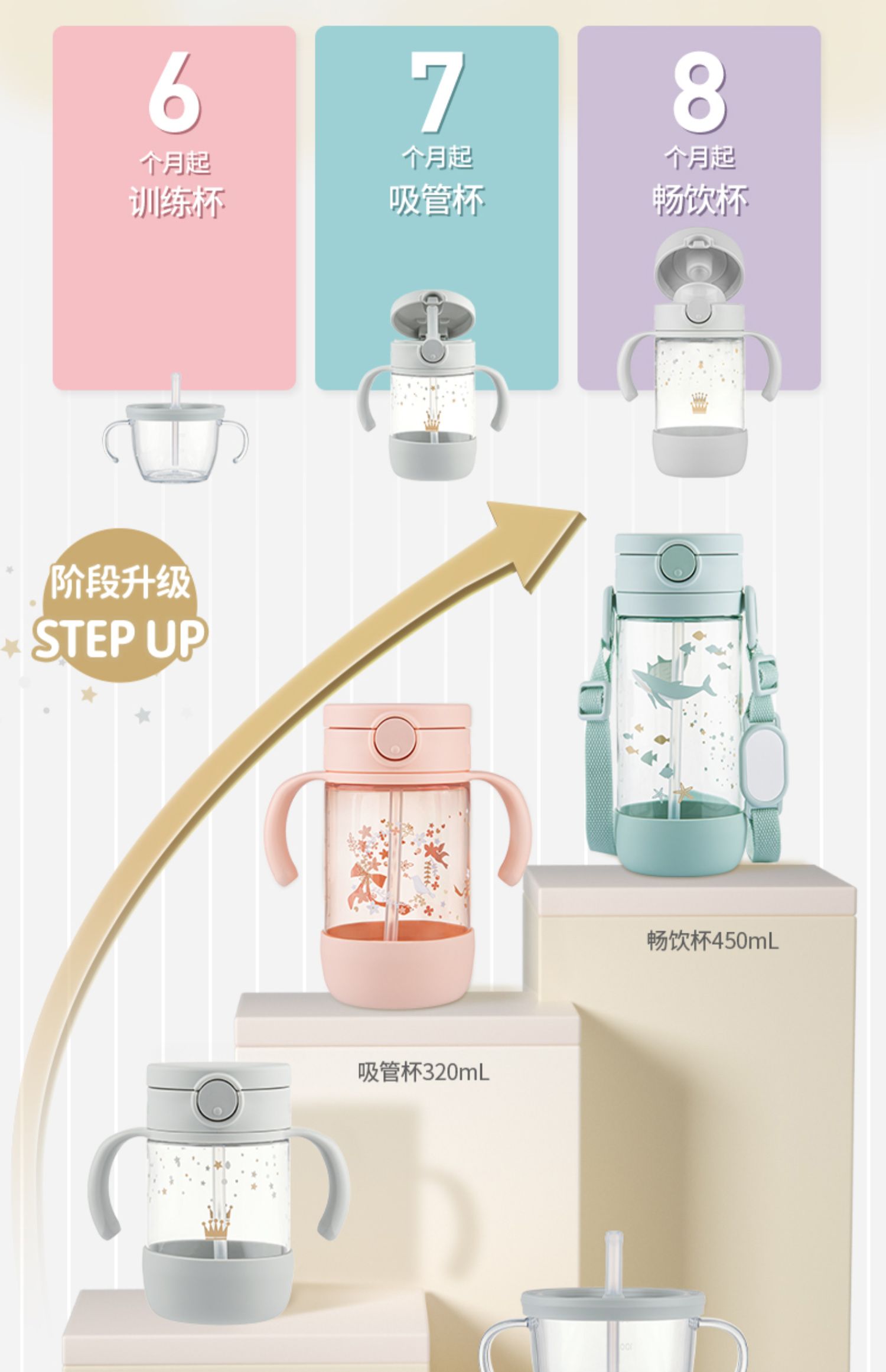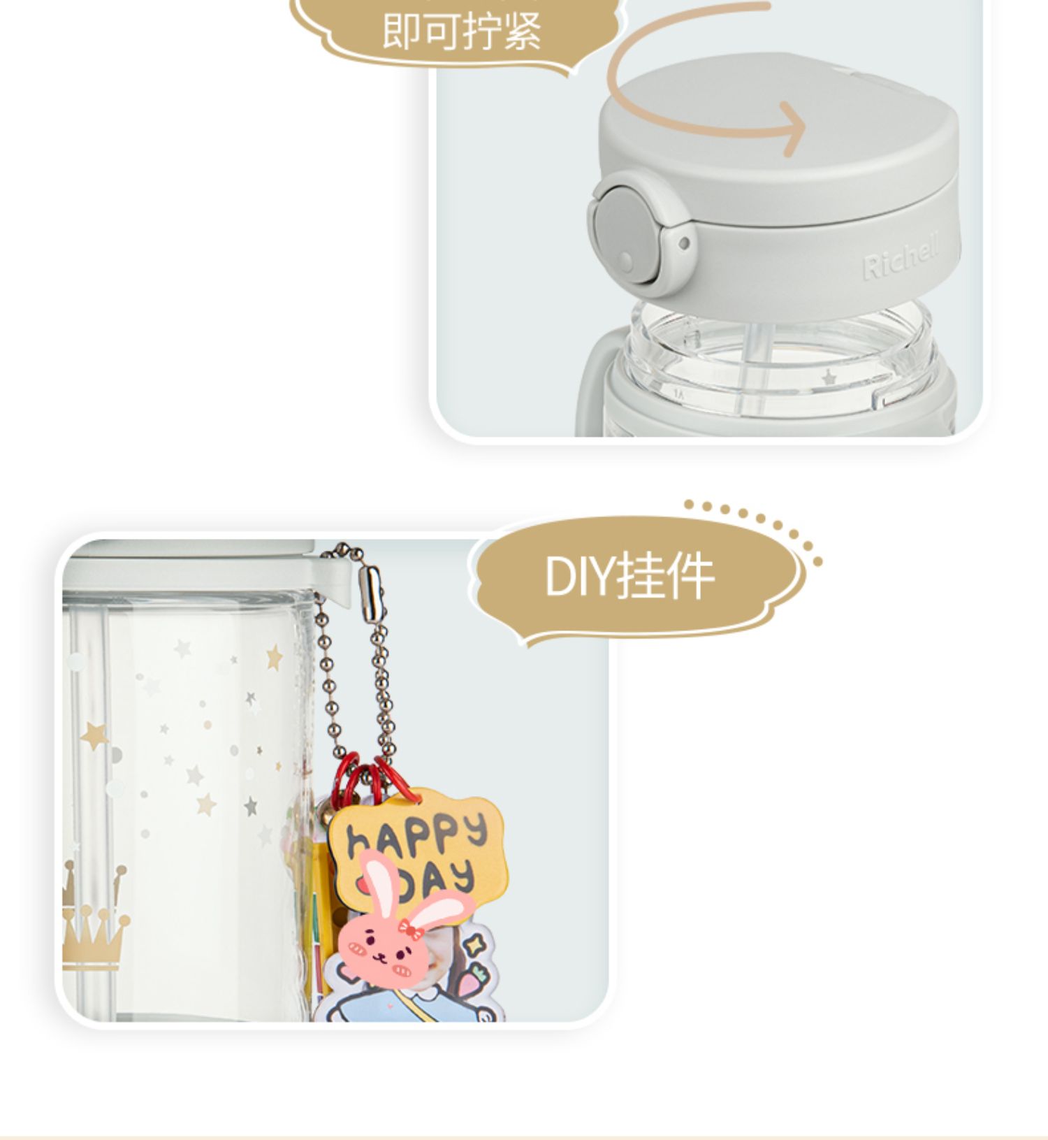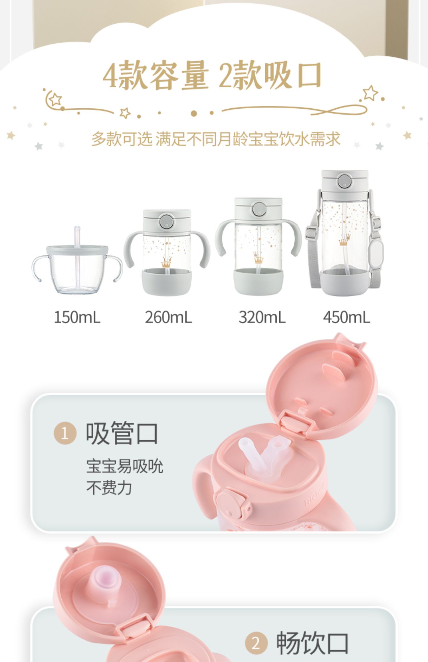 【清仓特惠2折】Richell利其尔儿童吸管杯宝宝学饮杯婴儿喝水杯直饮杯子家用防呛