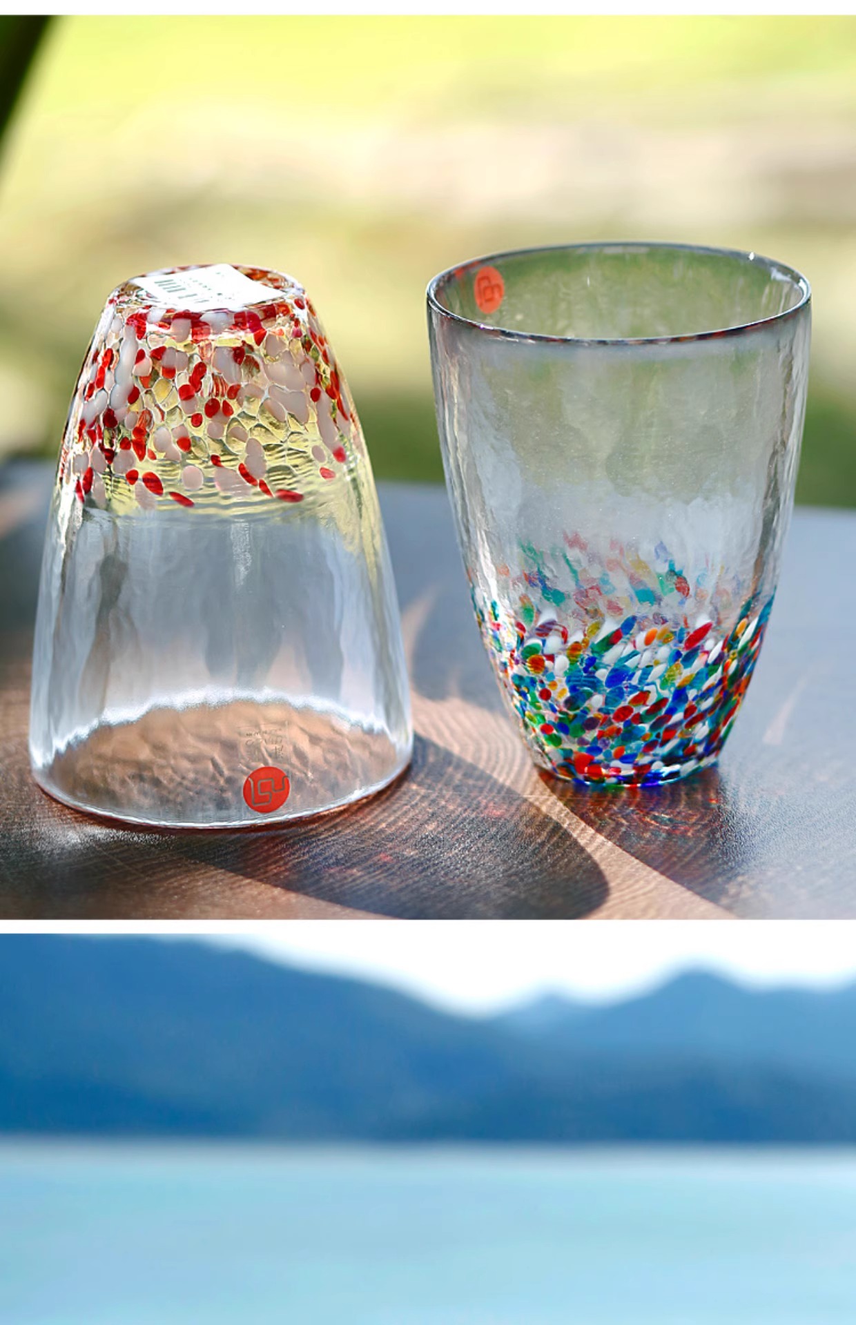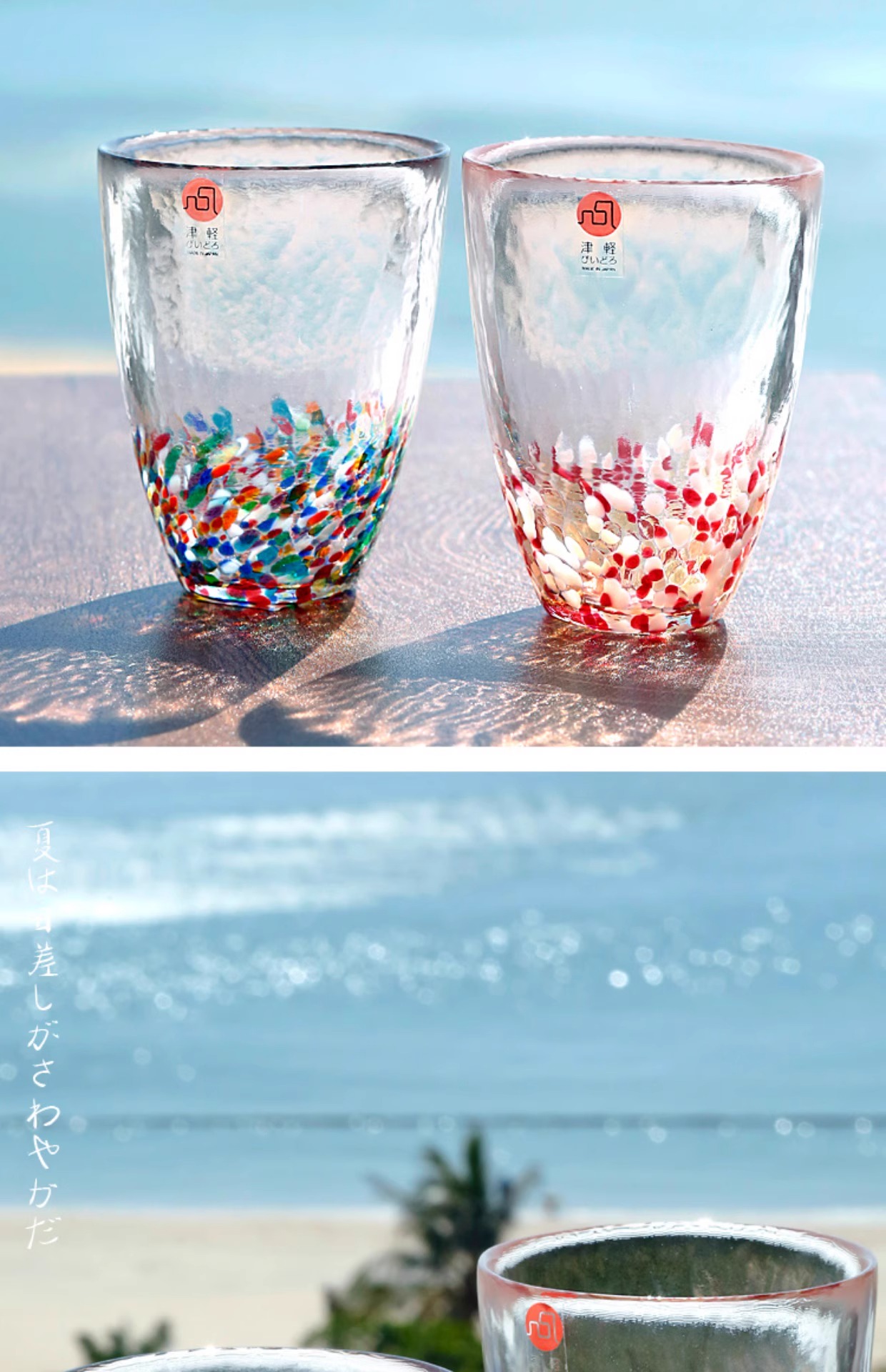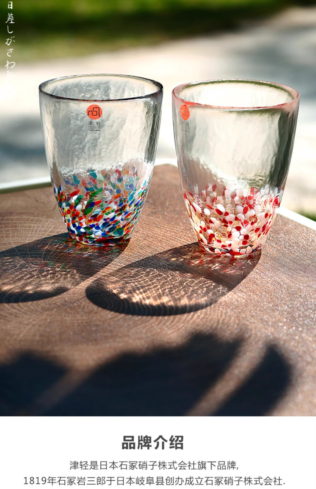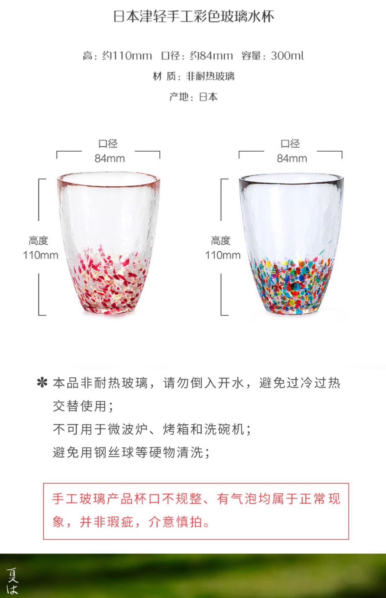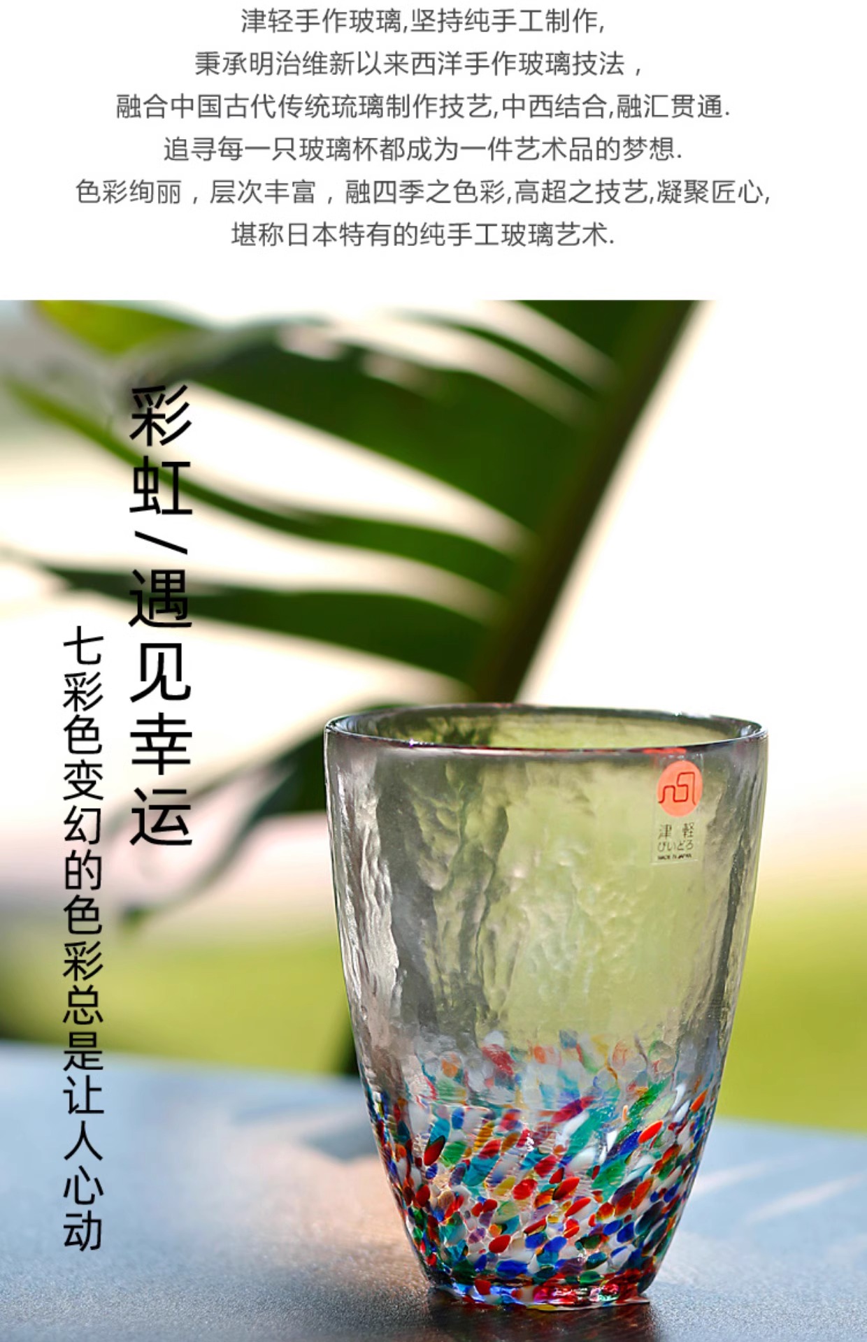 【清仓特惠4折】日本进口石塚硝子津轻手工无铅彩色玻璃杯彩虹单杯水杯蓝彩水杯300ml(纸盒包装)