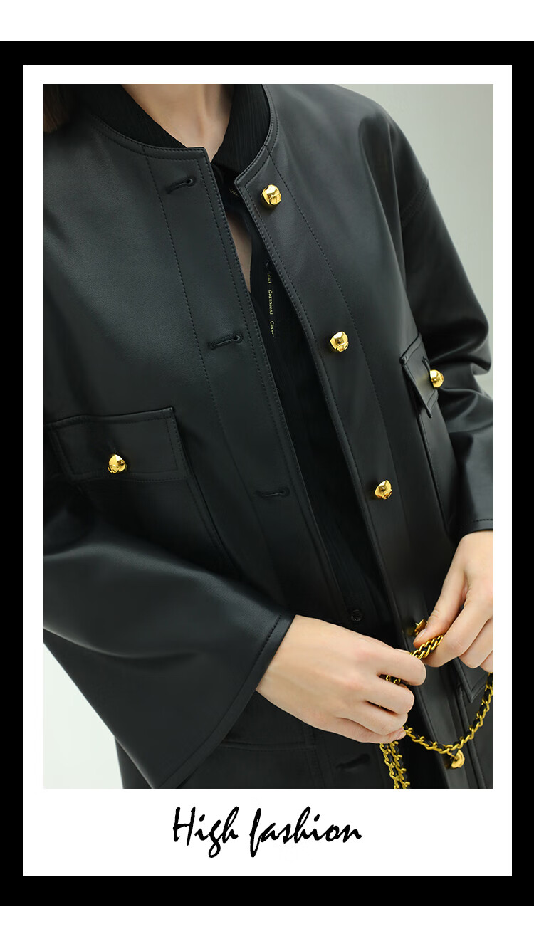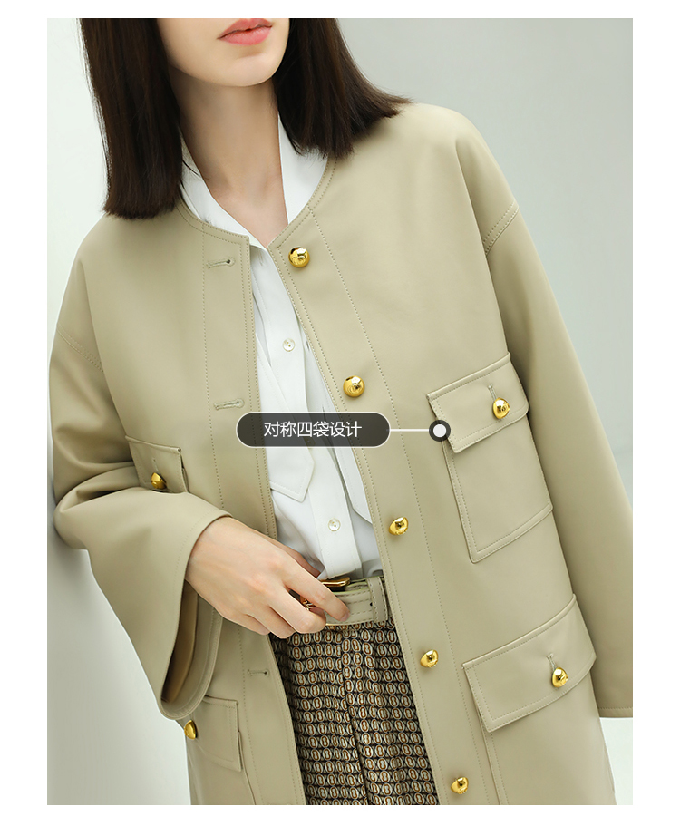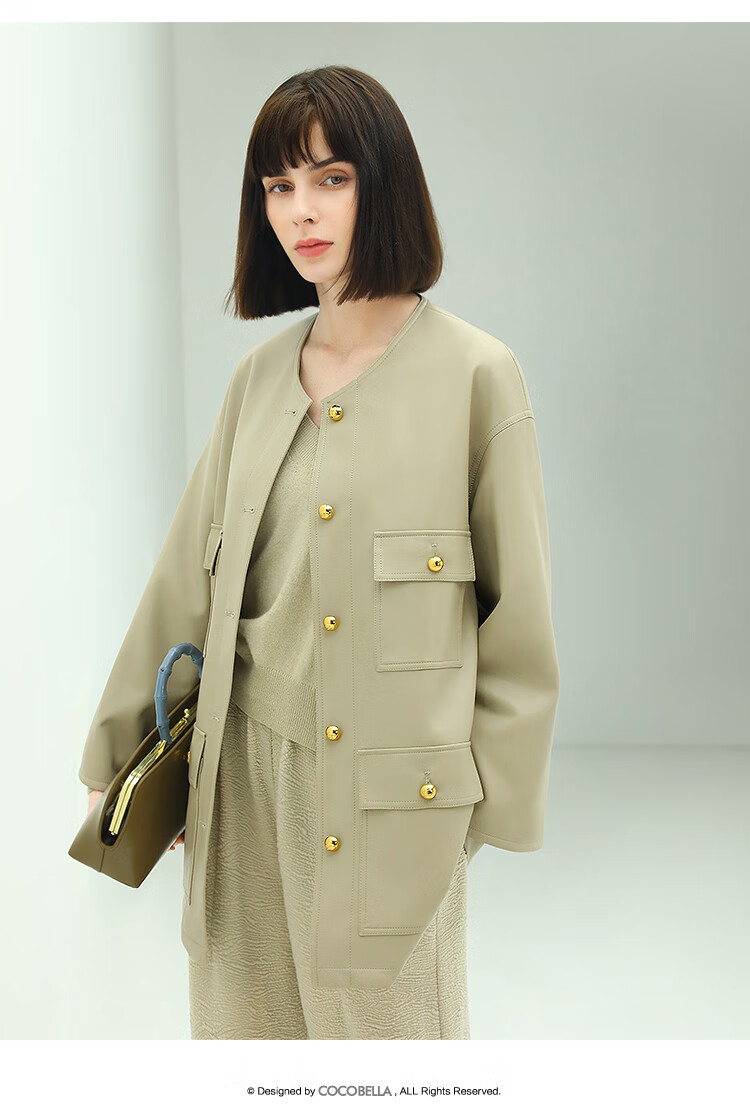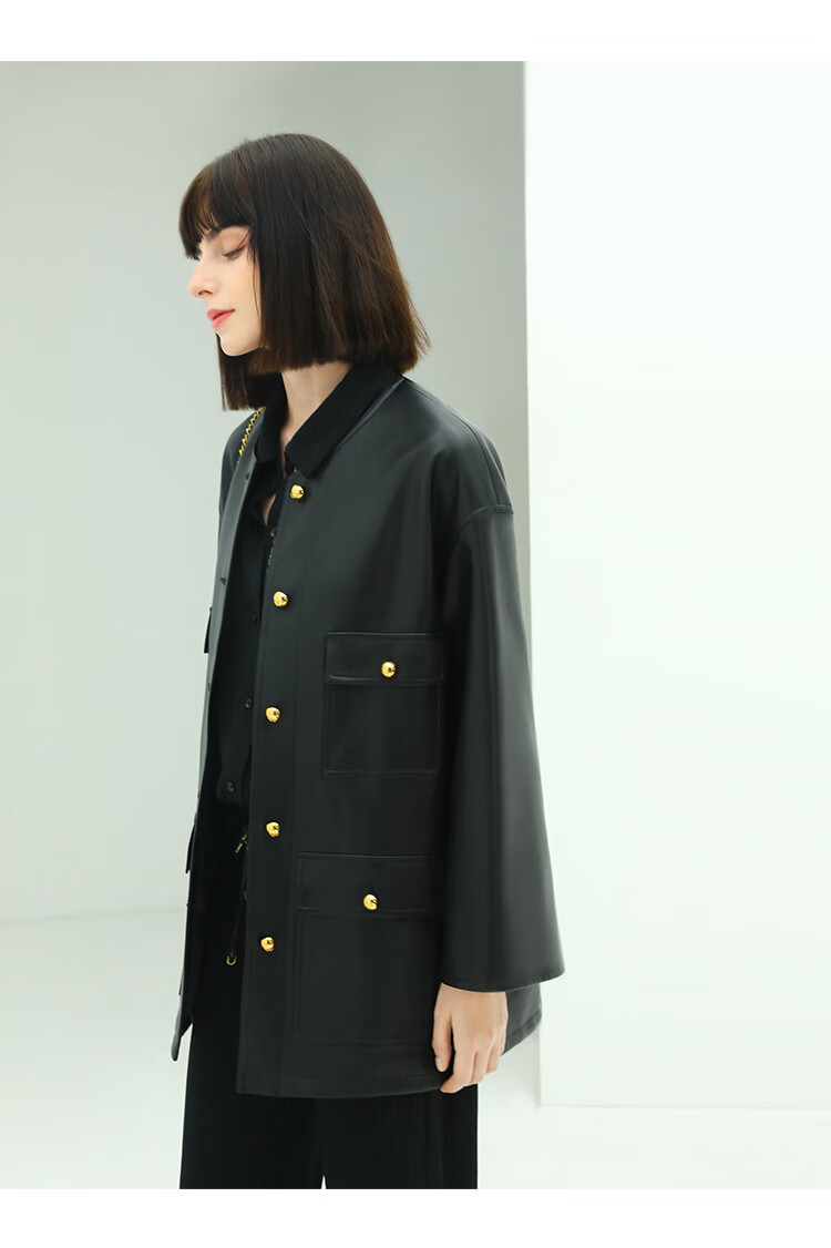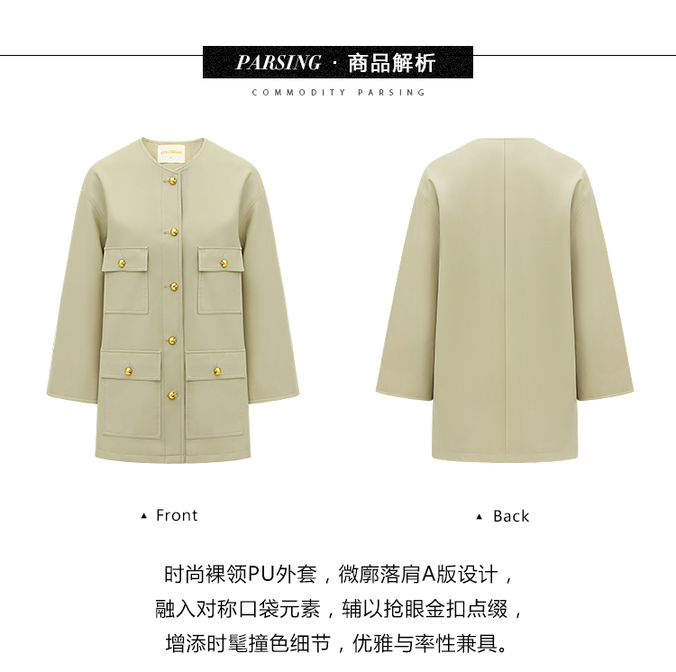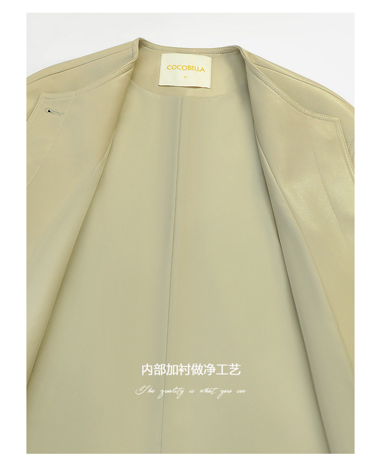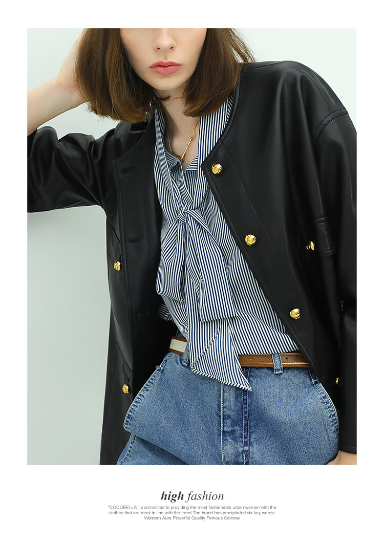 COCOBELLA细腻柔软PU皮衣外套中长款金属扣夹克SC515