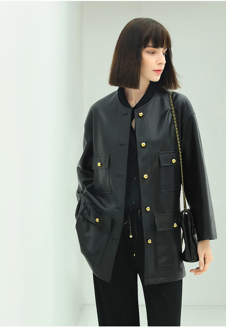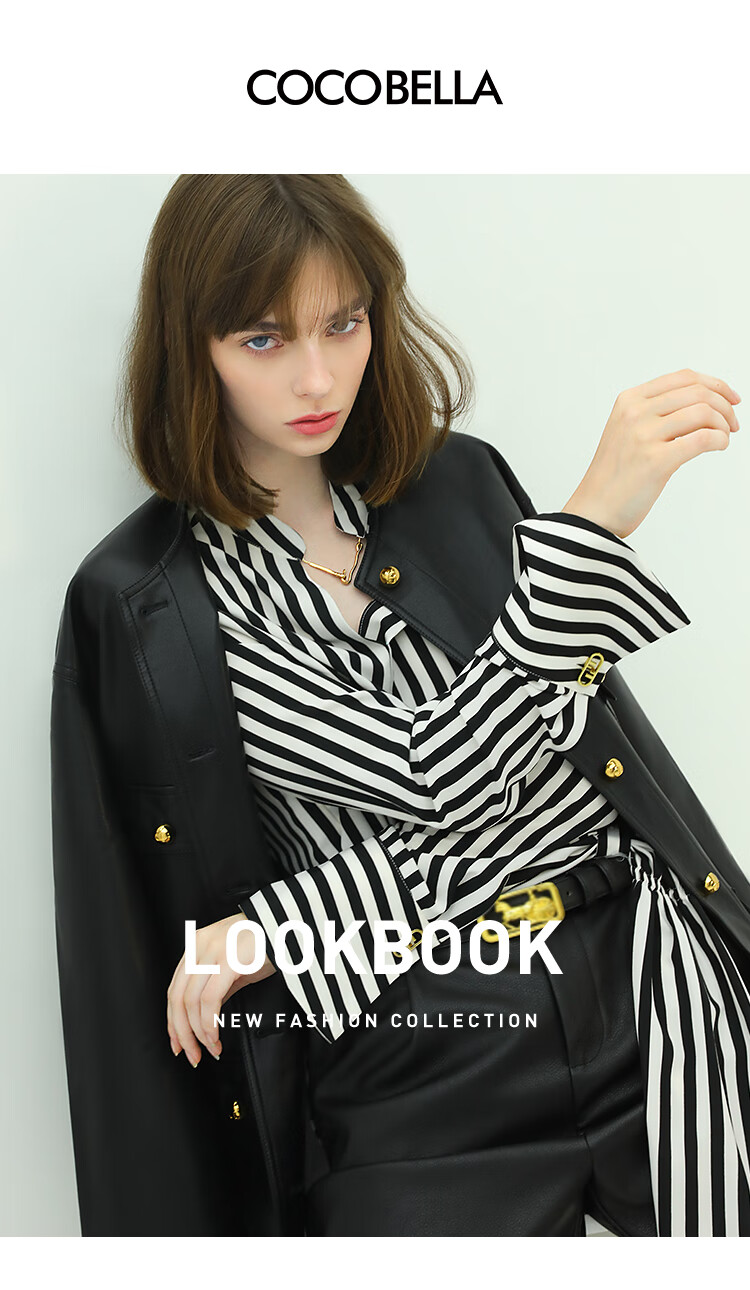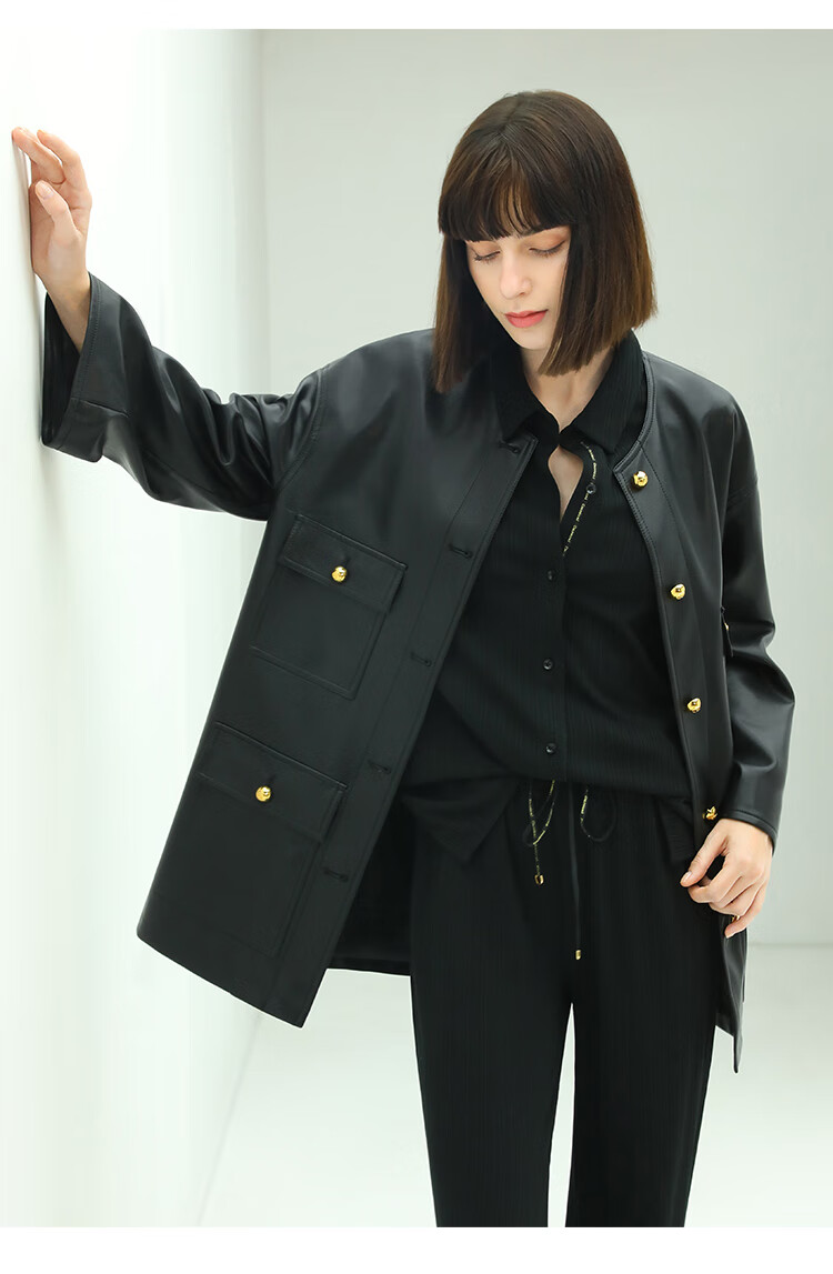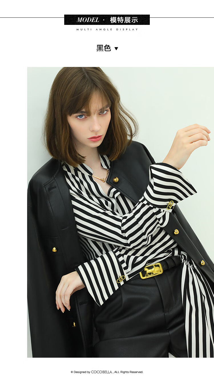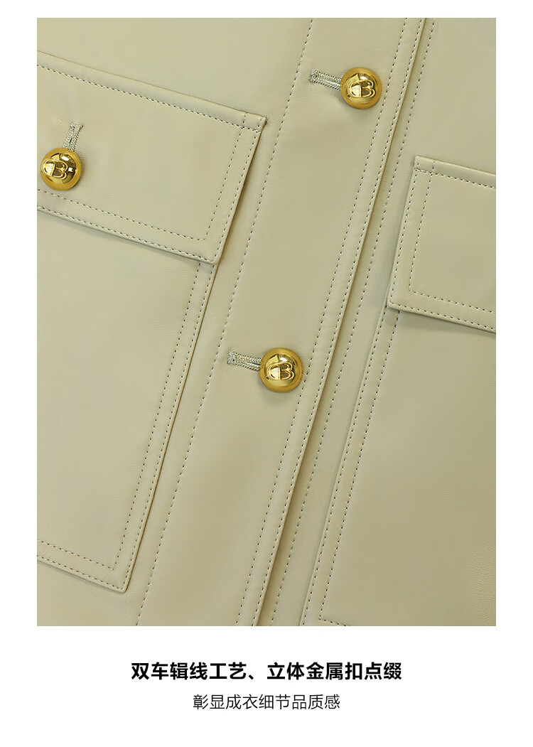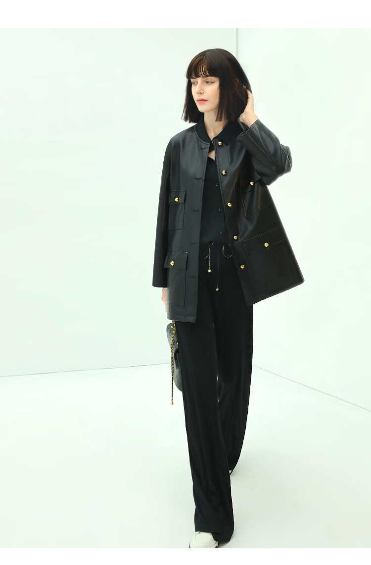 COCOBELLA细腻柔软PU皮衣外套中长款金属扣夹克SC515