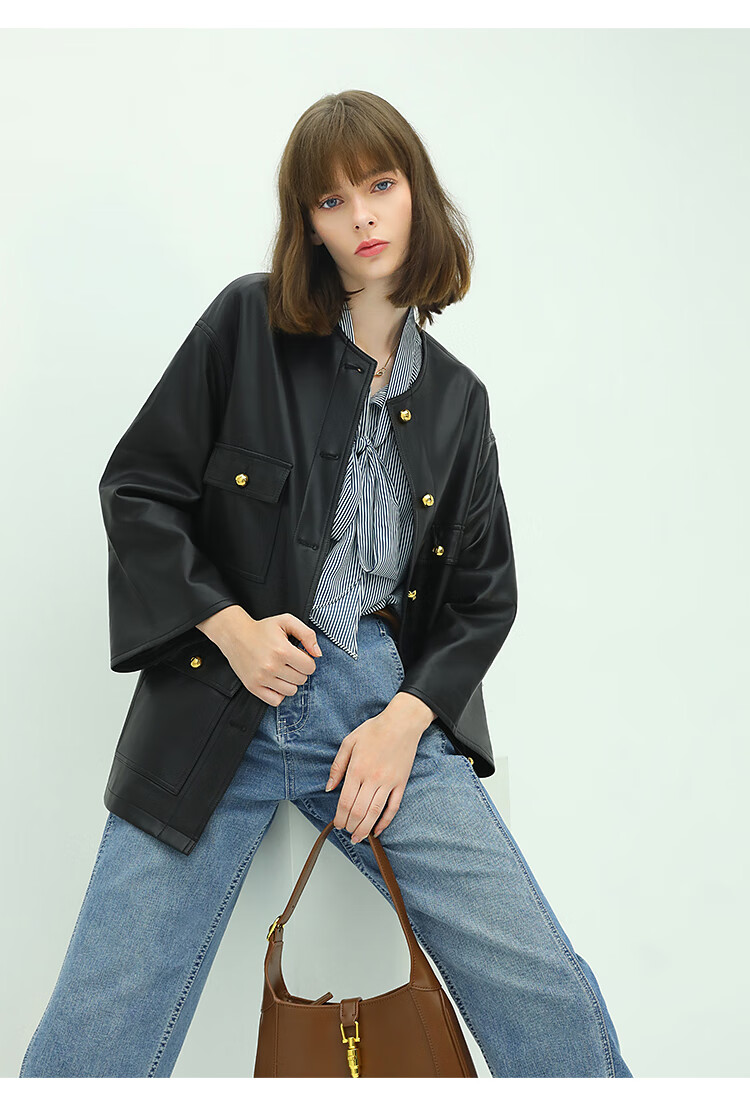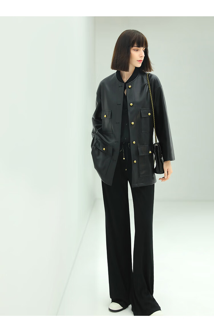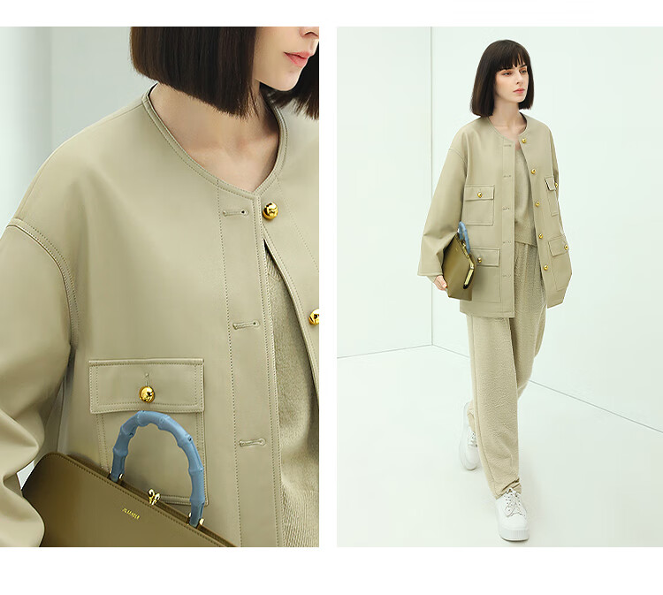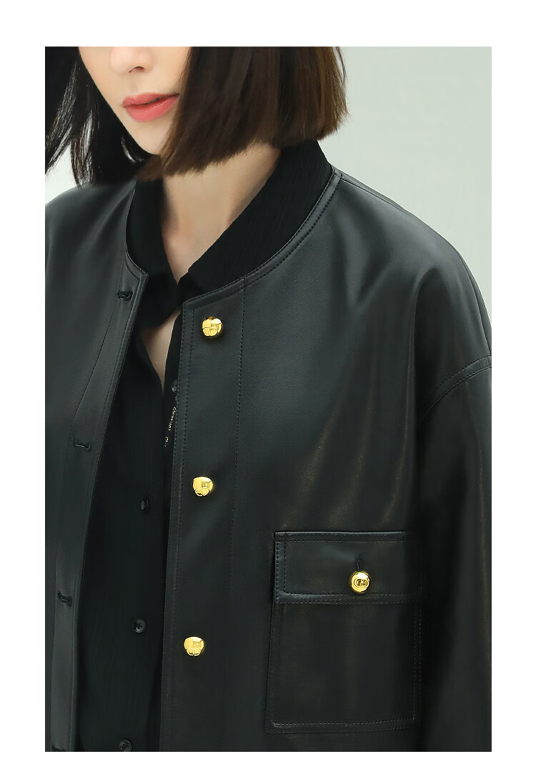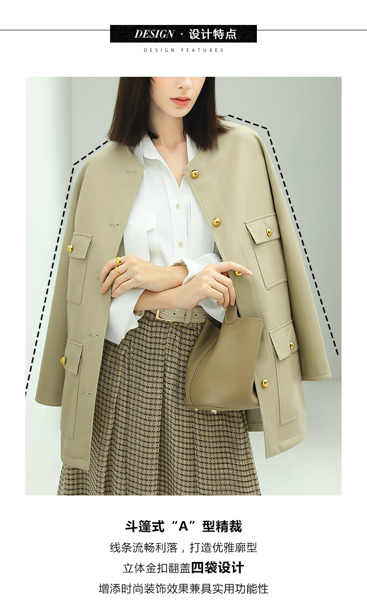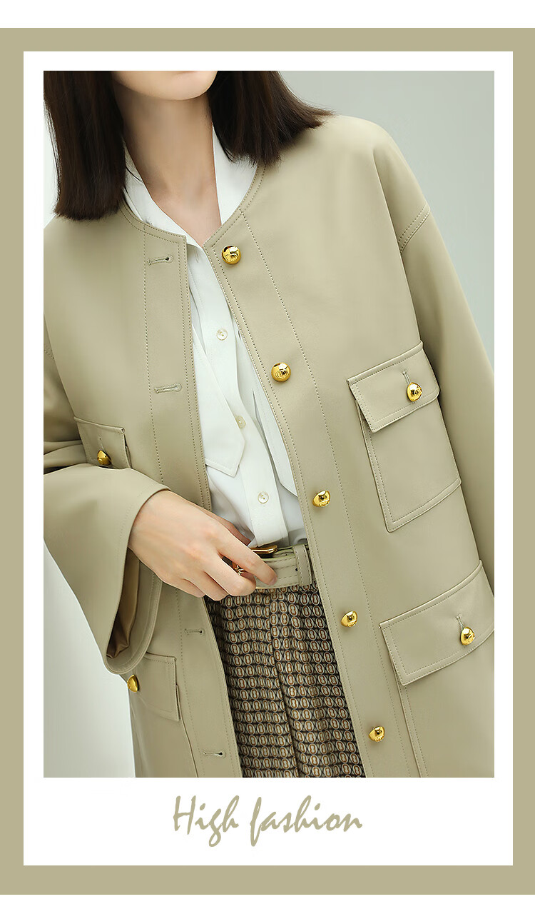 COCOBELLA细腻柔软PU皮衣外套中长款金属扣夹克SC515