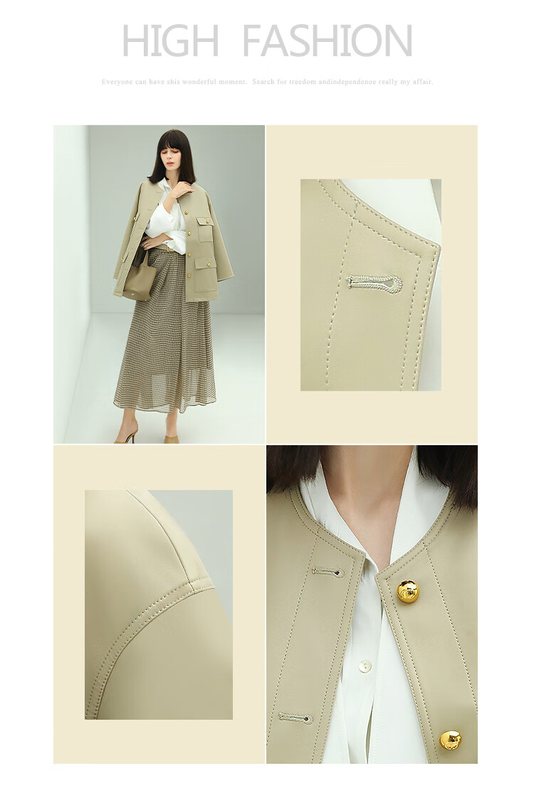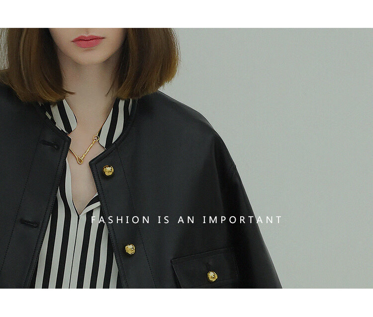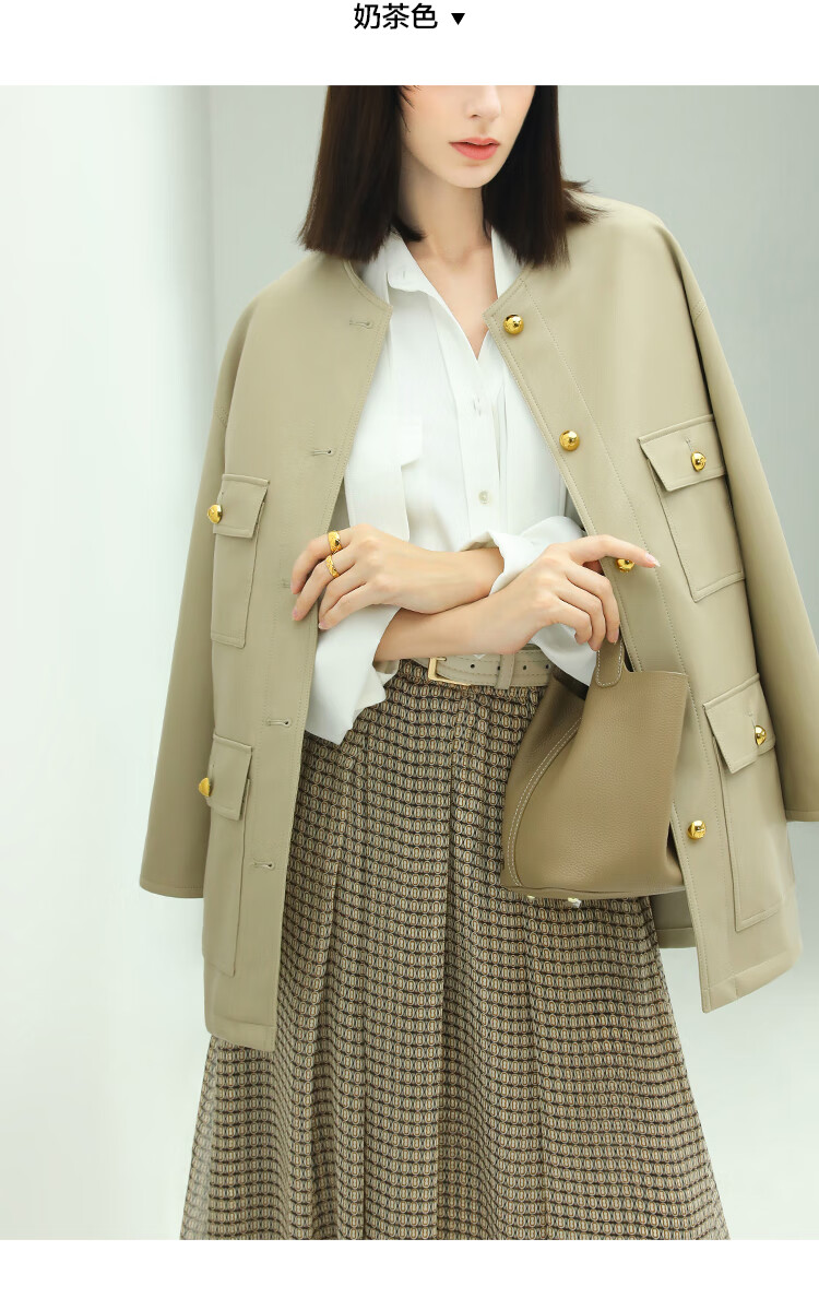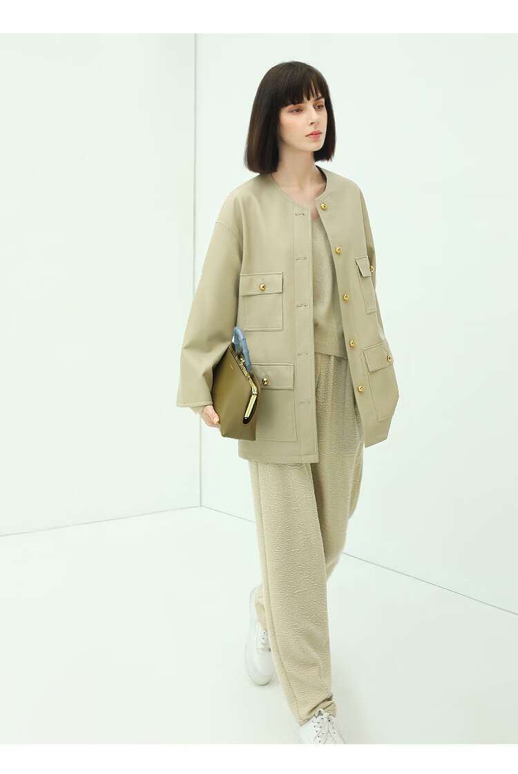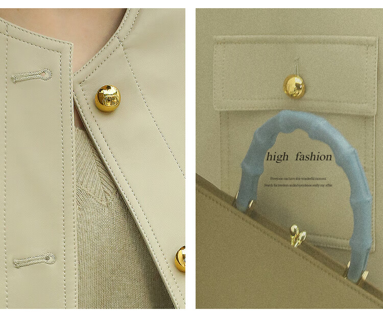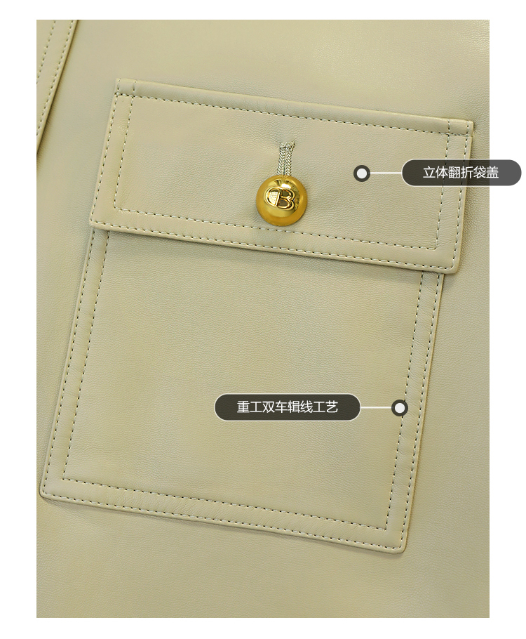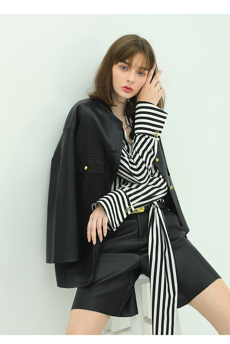 COCOBELLA细腻柔软PU皮衣外套中长款金属扣夹克SC515