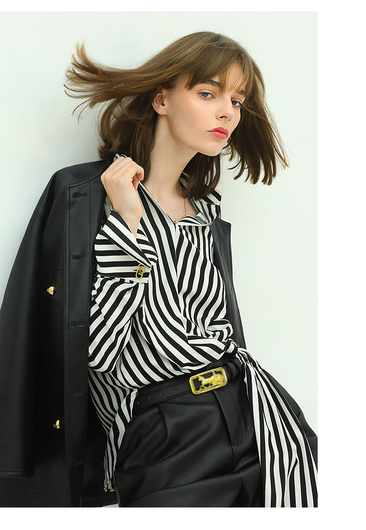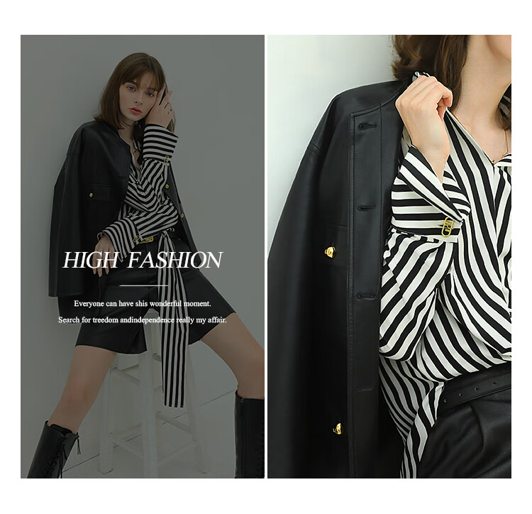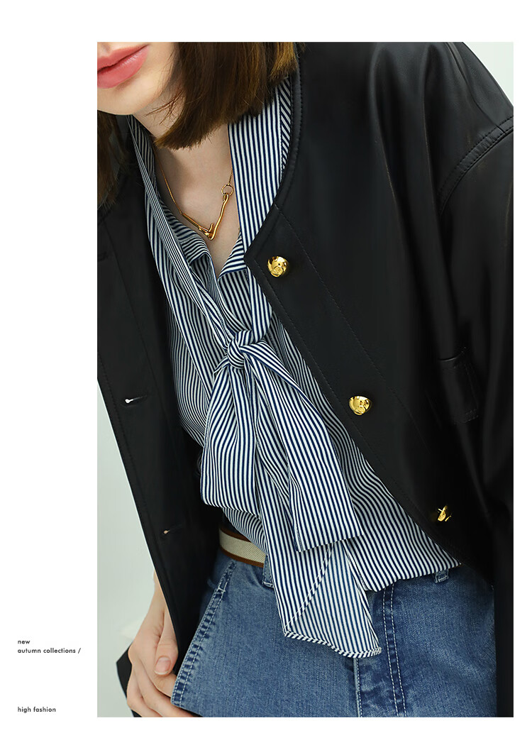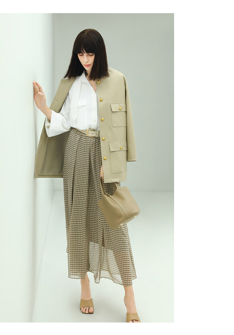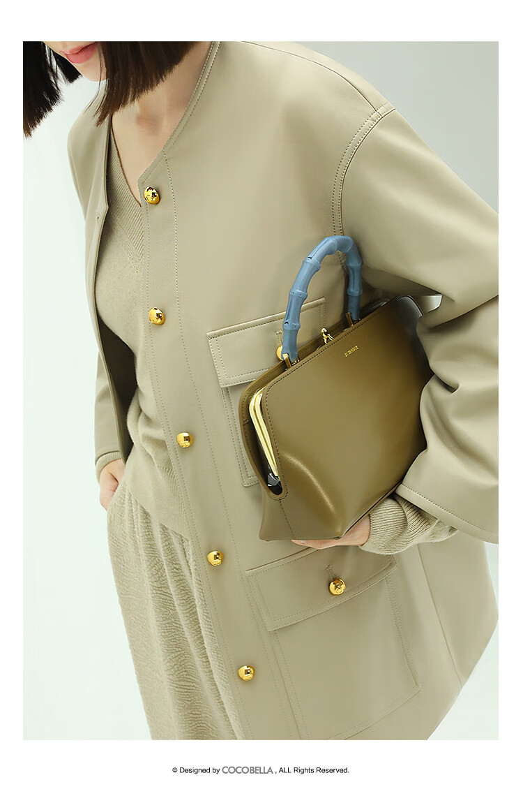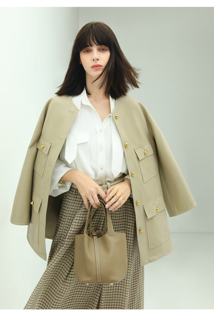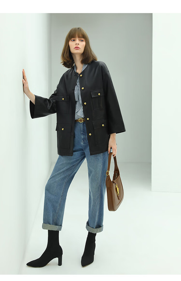 COCOBELLA细腻柔软PU皮衣外套中长款金属扣夹克SC515