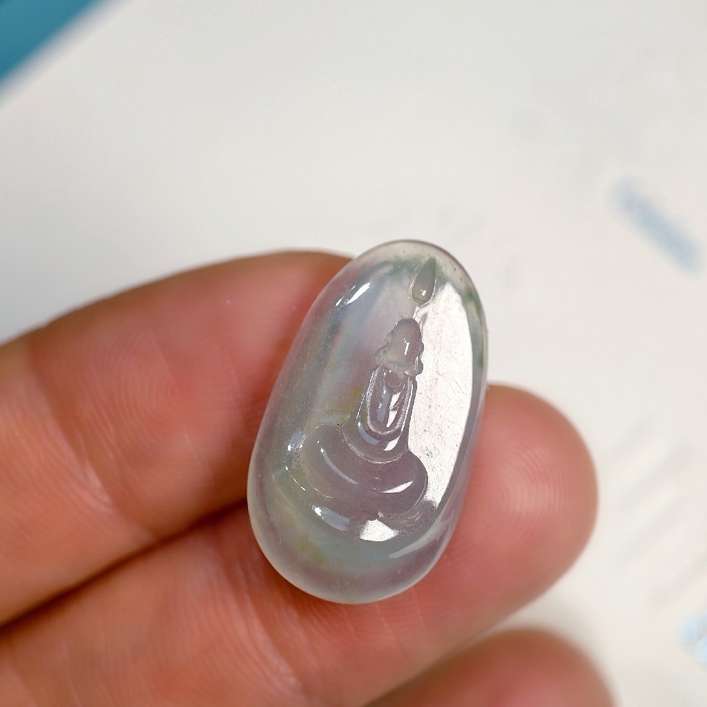 这枚小无相未做打孔,若需佩戴绳串,可按需开孔;更推荐以18K金精工镶嵌,衬得冰翡愈发莹润通透,禅意与贵气相融,佩戴效果极