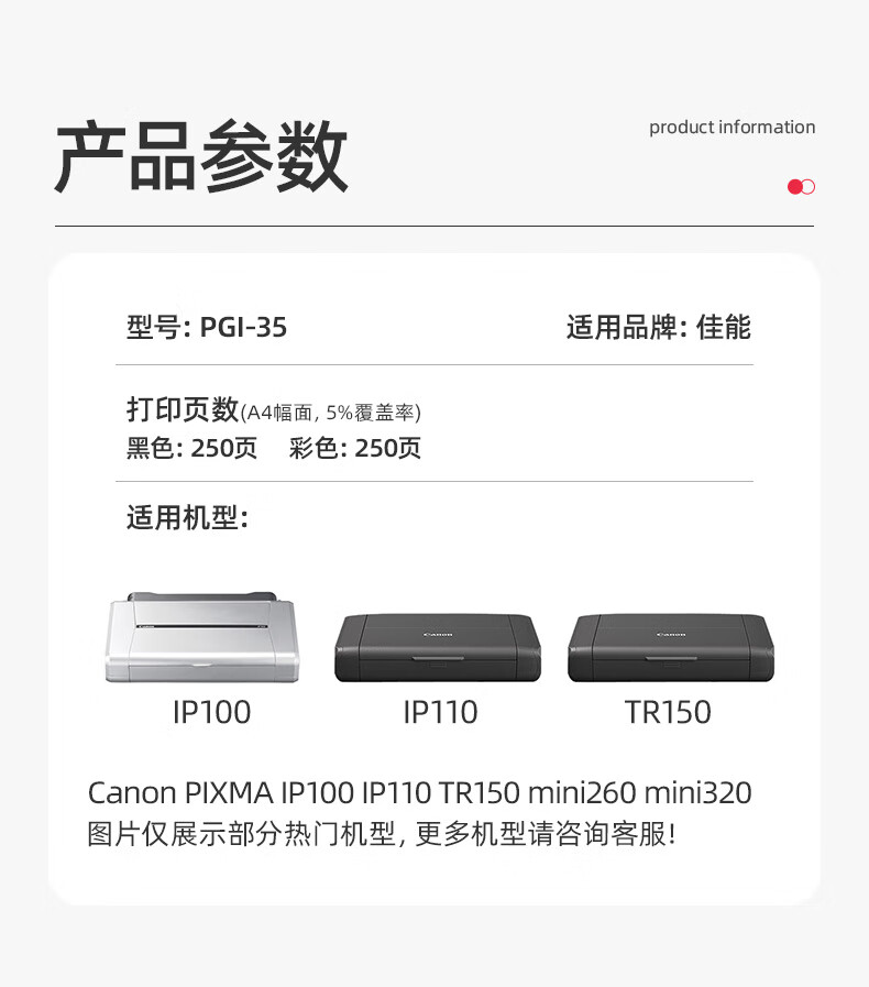 绘威适用佳能IP110 IP100 TR150 mini260 mini320 Canon pixma便携式打印机墨盒PGI-35/CLI-36墨盒黑彩套装